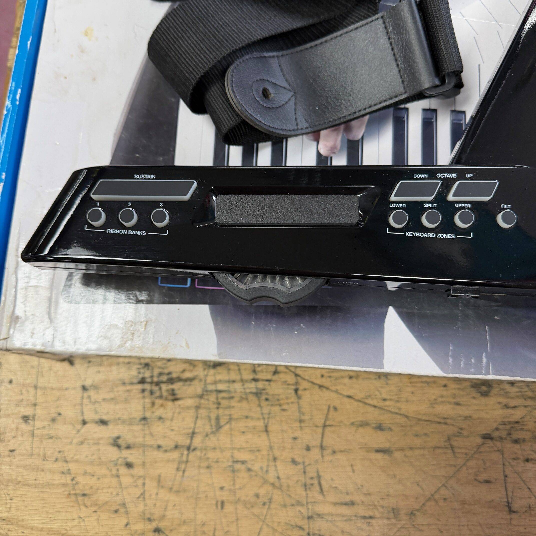 - MIDI-assignable touchstrip, zone, sustain, and octave-control buttons on neck