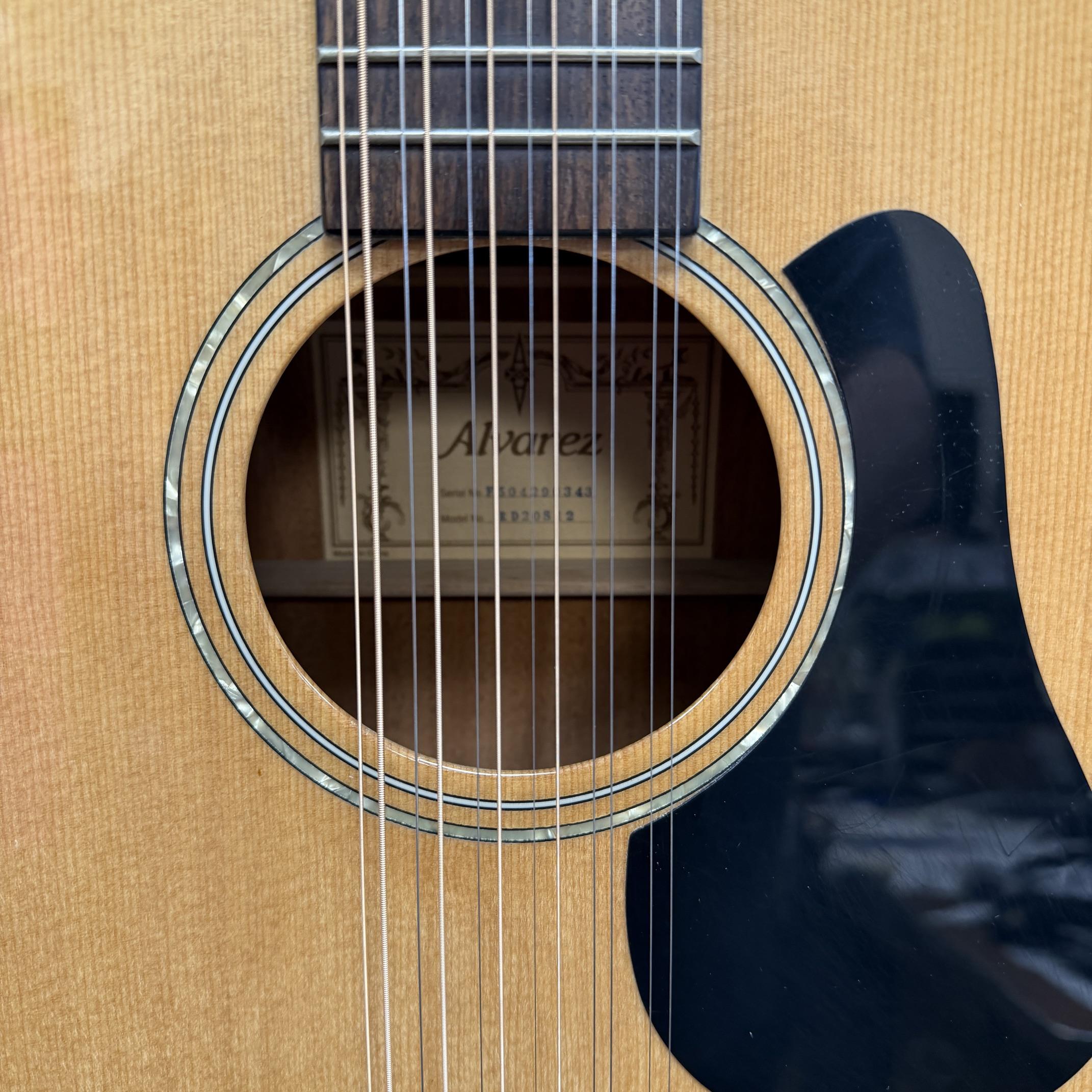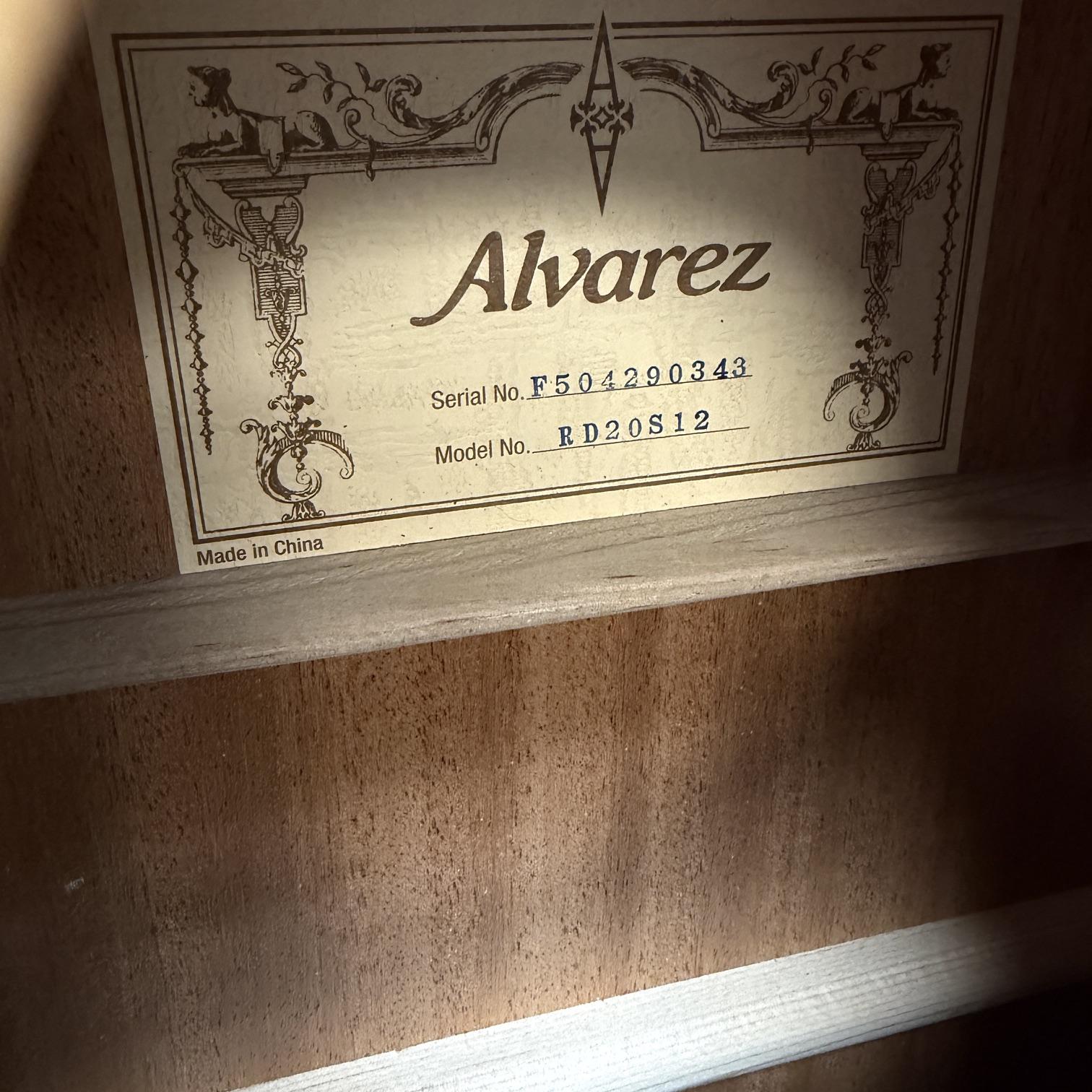 Up for sale is a used Alvarez RD20S12 12-string acoustic guitar. We just cleaned this one up and put new strings on it and it really plays nicely. It shows some minor cosmetic wear but no major dents or dings. The guitar was made in China, serial number F504290343. No case included. Please check out all the pictures to see the rest of the cosmetic condition, or come see it in person at Metro Gnome Music