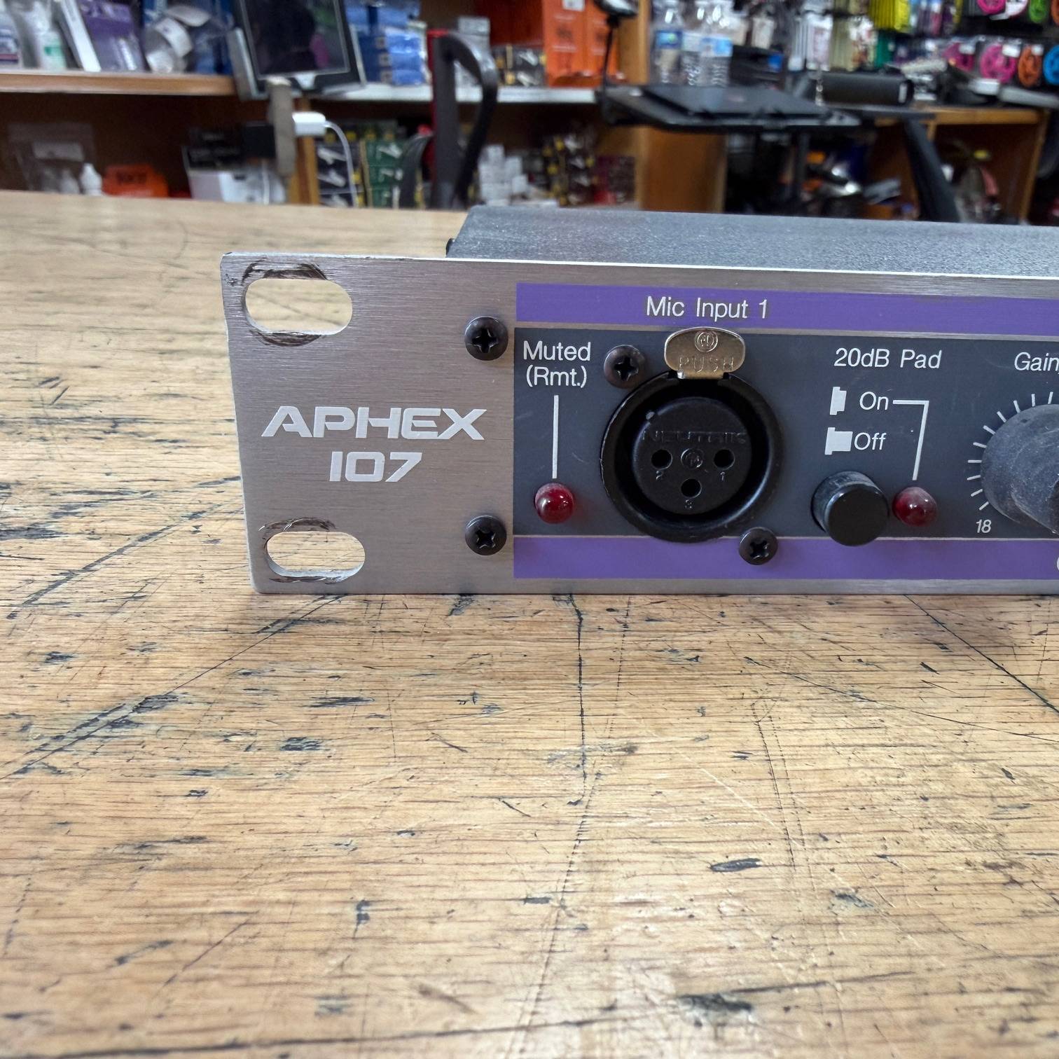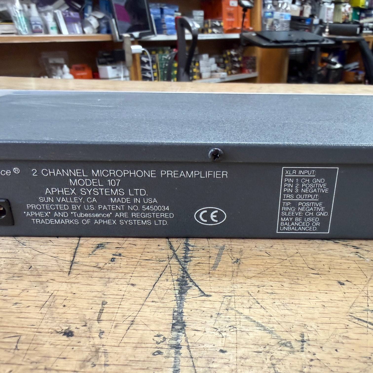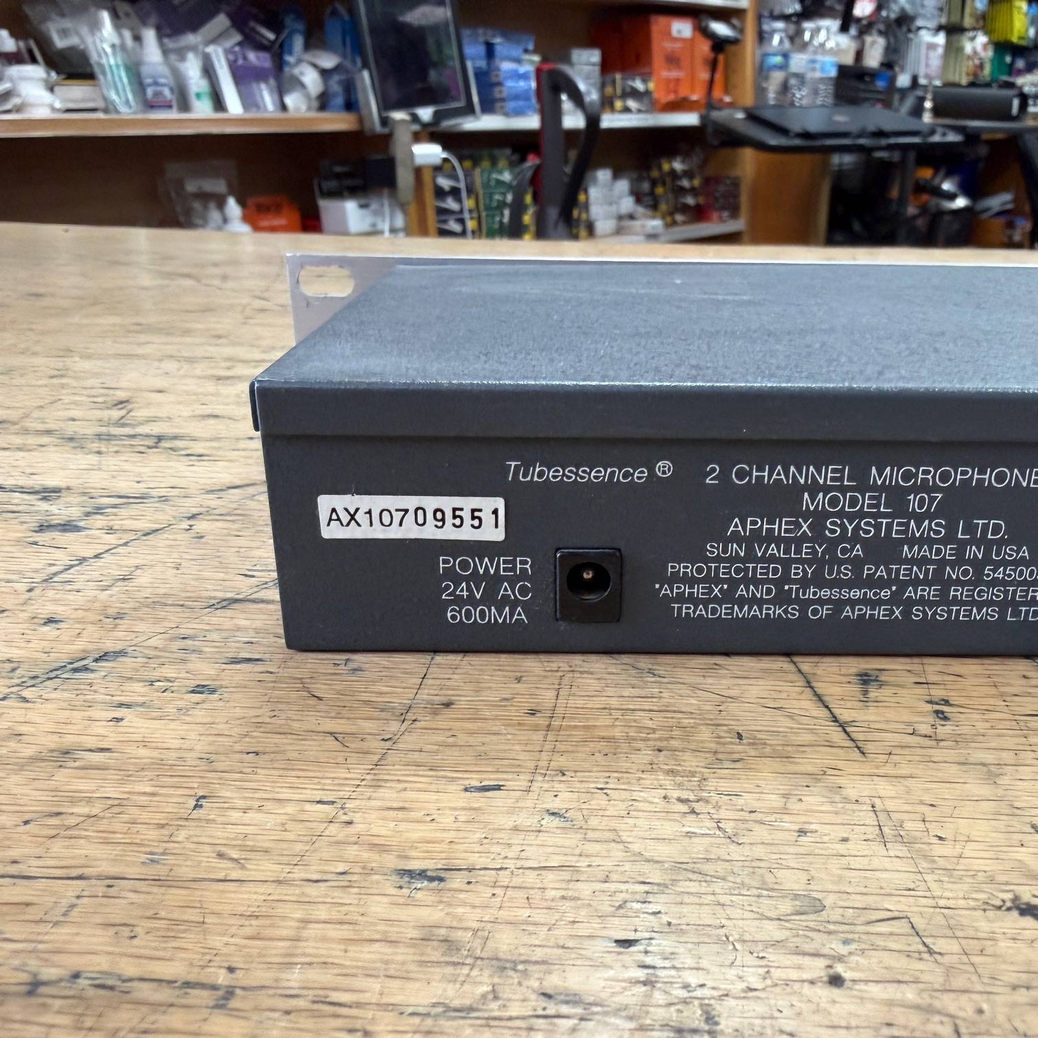 Up for sale is a used Aphex Tubessence Model 107 2-Channel Thermionic Microphone Preamplifier. This one was tested here in our shop and works as it should. It is in very good cosmetic condition. It comes with its original Aphex AC Adaptor. The unit was made in the USA, serial number AX10709551. Check out the pictures, or come see it in person at Metro Gnome Music.