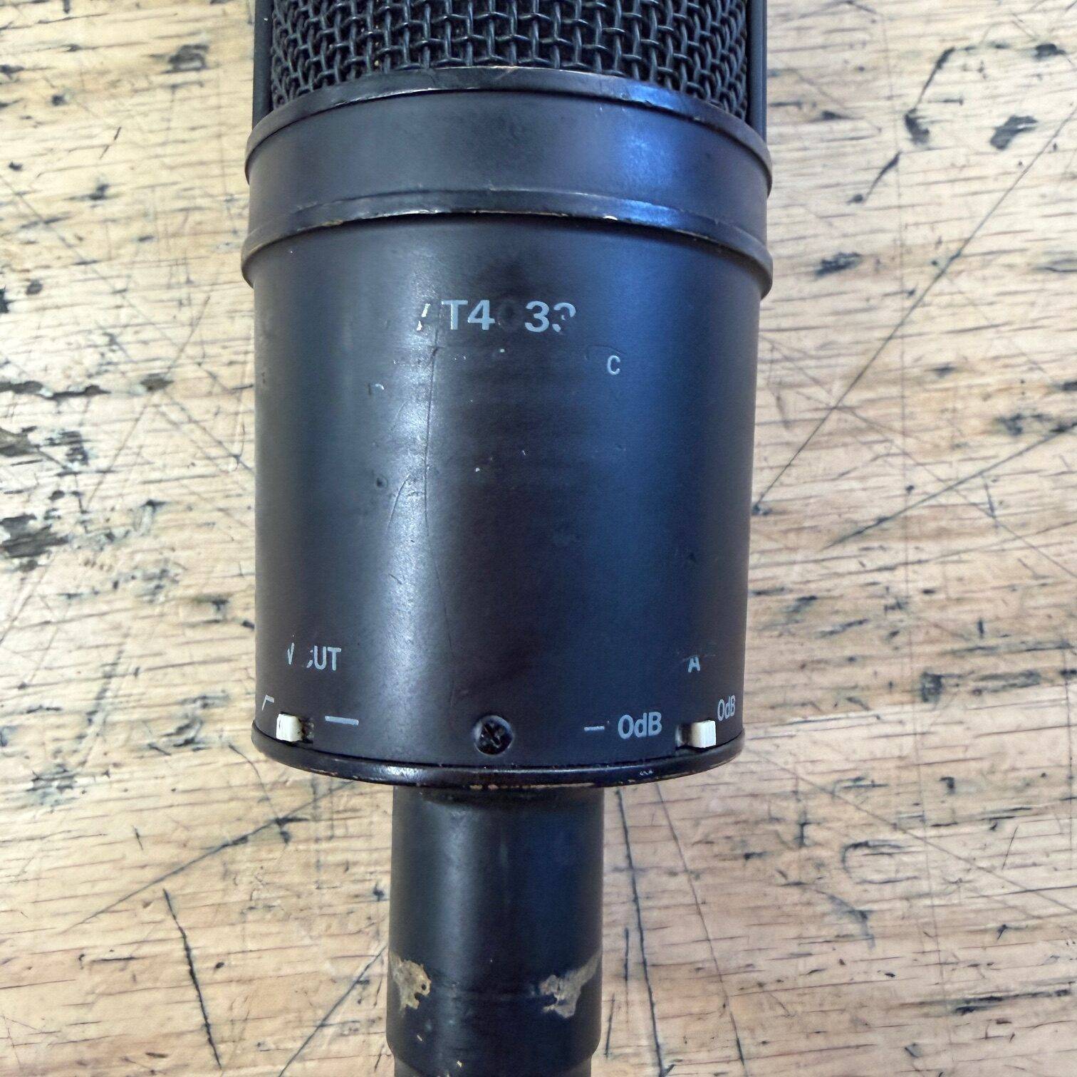 Up for sale is a used Audio-Technica AT4033 Large Diaphragm cardioid condenser microphone. This one was just tested here in the shop and it works as it should. It is in fair cosmetic condition, but it’s a solid working mic. It comes with a vinyl case. No mic clip or shock mount included. Check out the pictures.