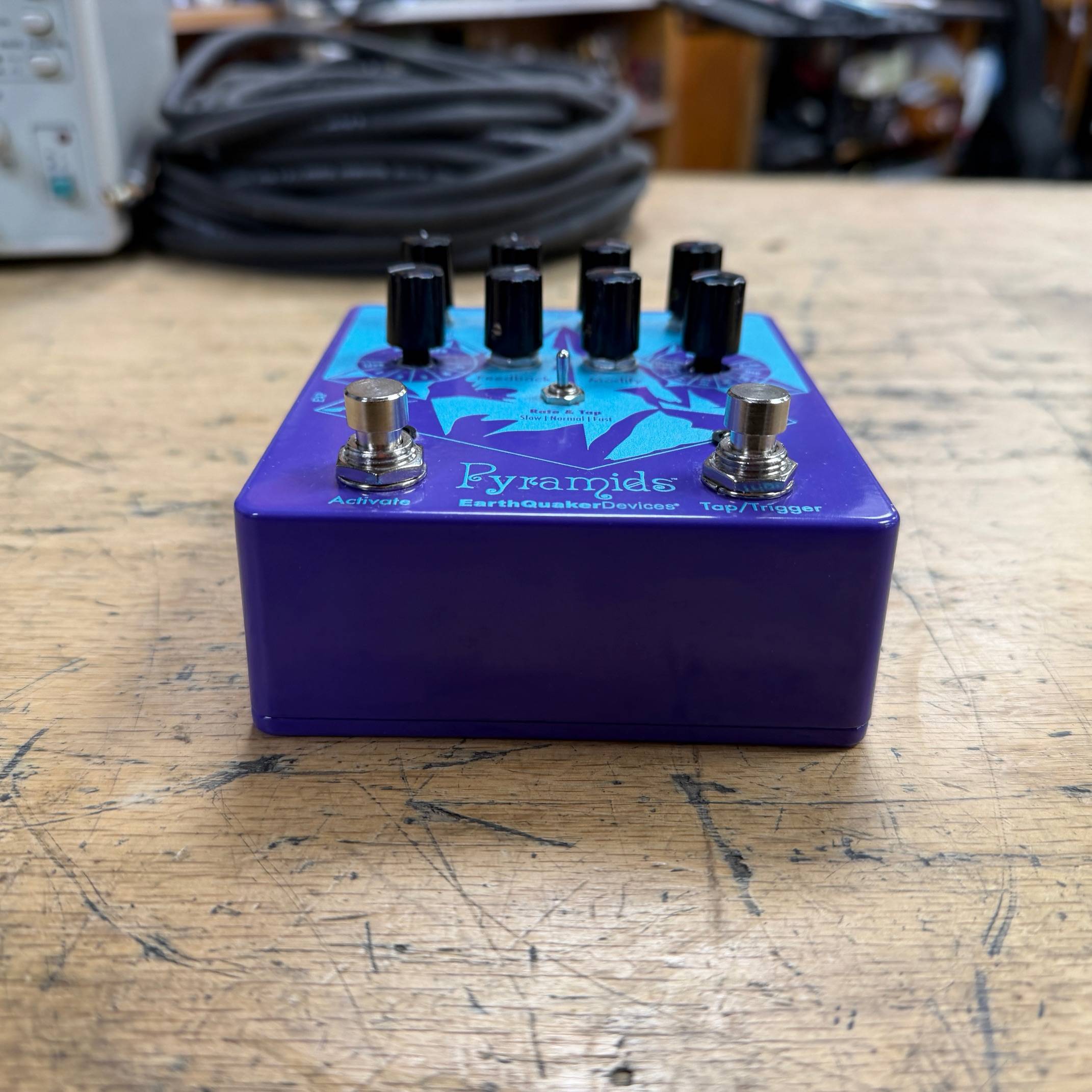 Up for sale is a used Earthquaker Devices Pyramids stereo flanger guitar pedal. This pedal was just tested here in our shop and works as it should. It is in very good cosmetic condition. The pedal was made here in the USA, serial number 2436. It includes its original box, manual and Earthquaker Devices AC adapter. Check out the pictures, or come see it in person at Metro Gnome Music.