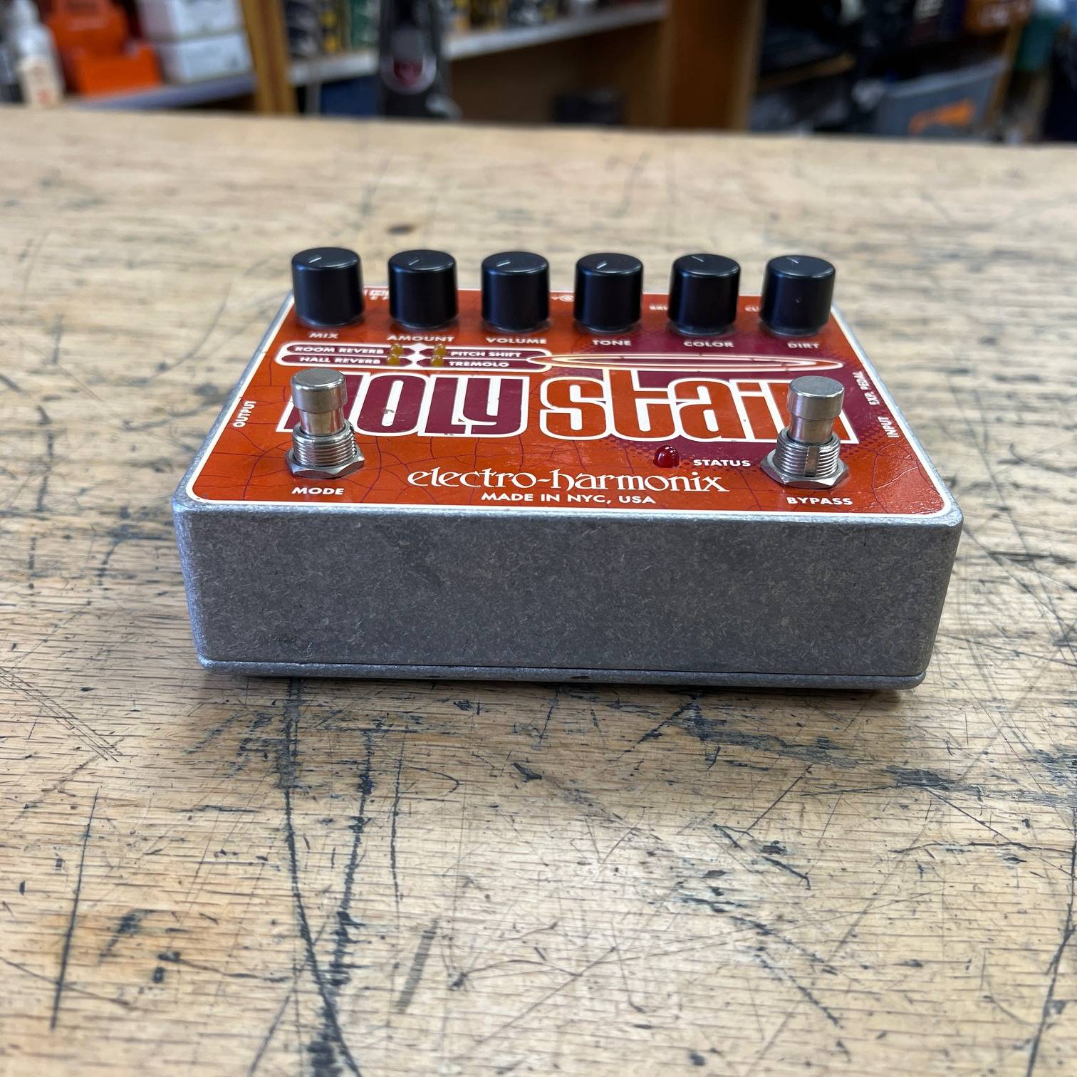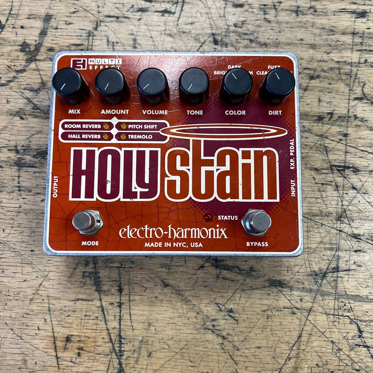 Up for sale is a used Electro Harmonix Holy Stain Distortion / Reverb / Pitch / Tremolo Multi-Effect Guitar Pedal. The pedal was just tested here in our shop and it works as it should. It does show some cosmetic wear, but nothing that affects functionality. The pedal was made in the USA. Check out the pictures for the condition.