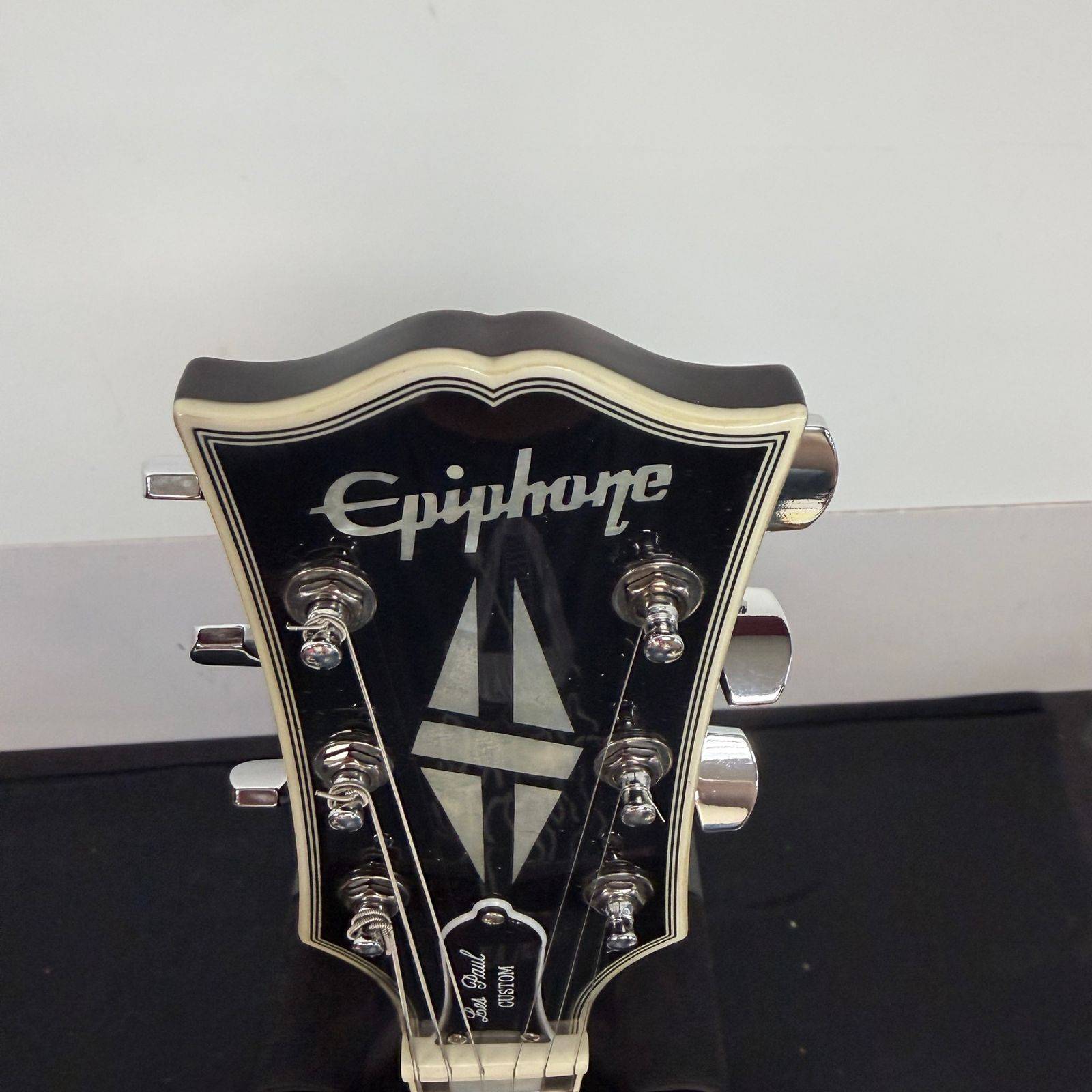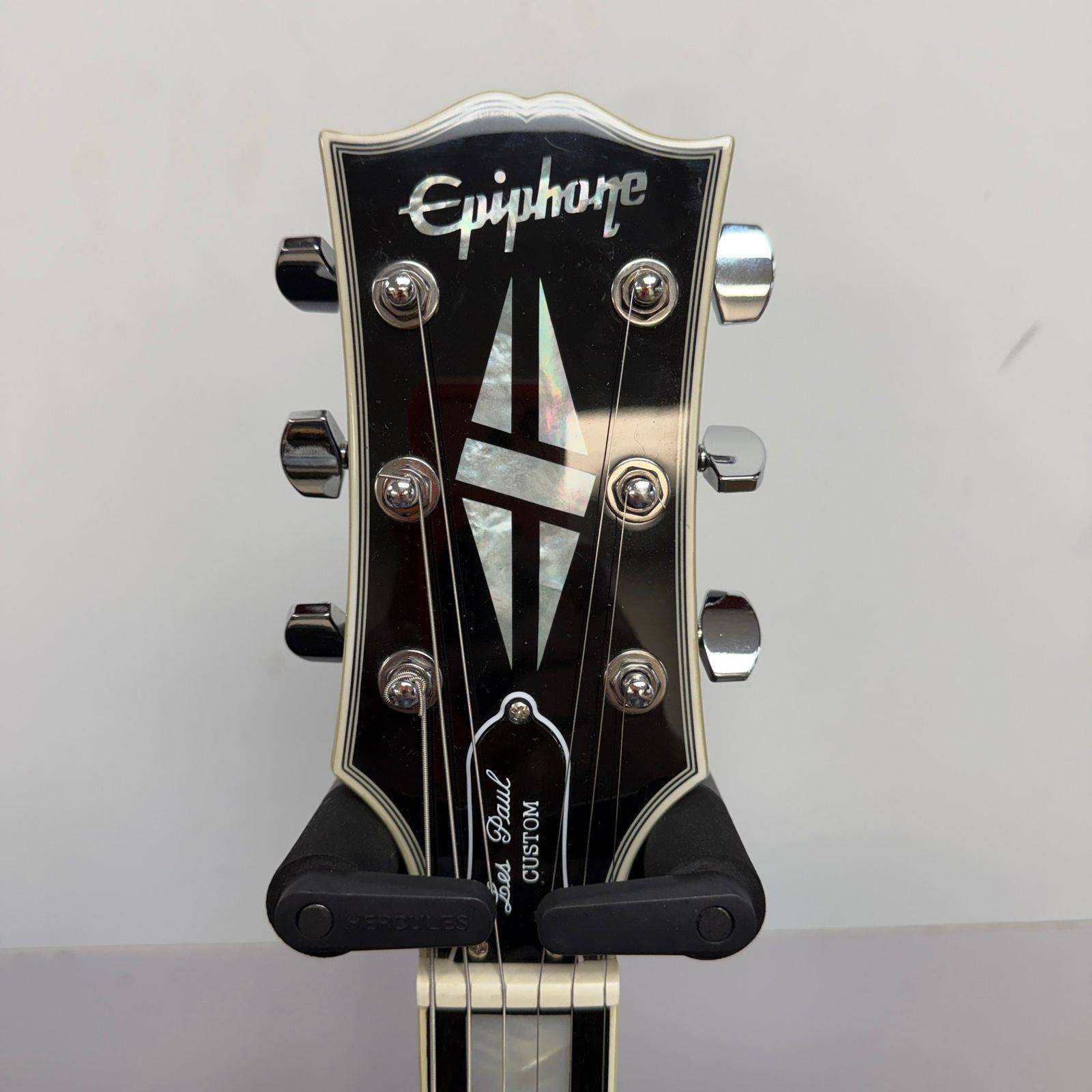 Up for sale is an Epiphone Les Paul Custom Adam Jones signature electric guitar. This one was just gone over in our shop and everything is in good working order. It has some wear on the lower bout of the top, but is in, otherwise, very good cosmetic condition. Its original hardshell case is included. The guitar was made in China, in 2024, serial number 24061524381. Check out the pictures!