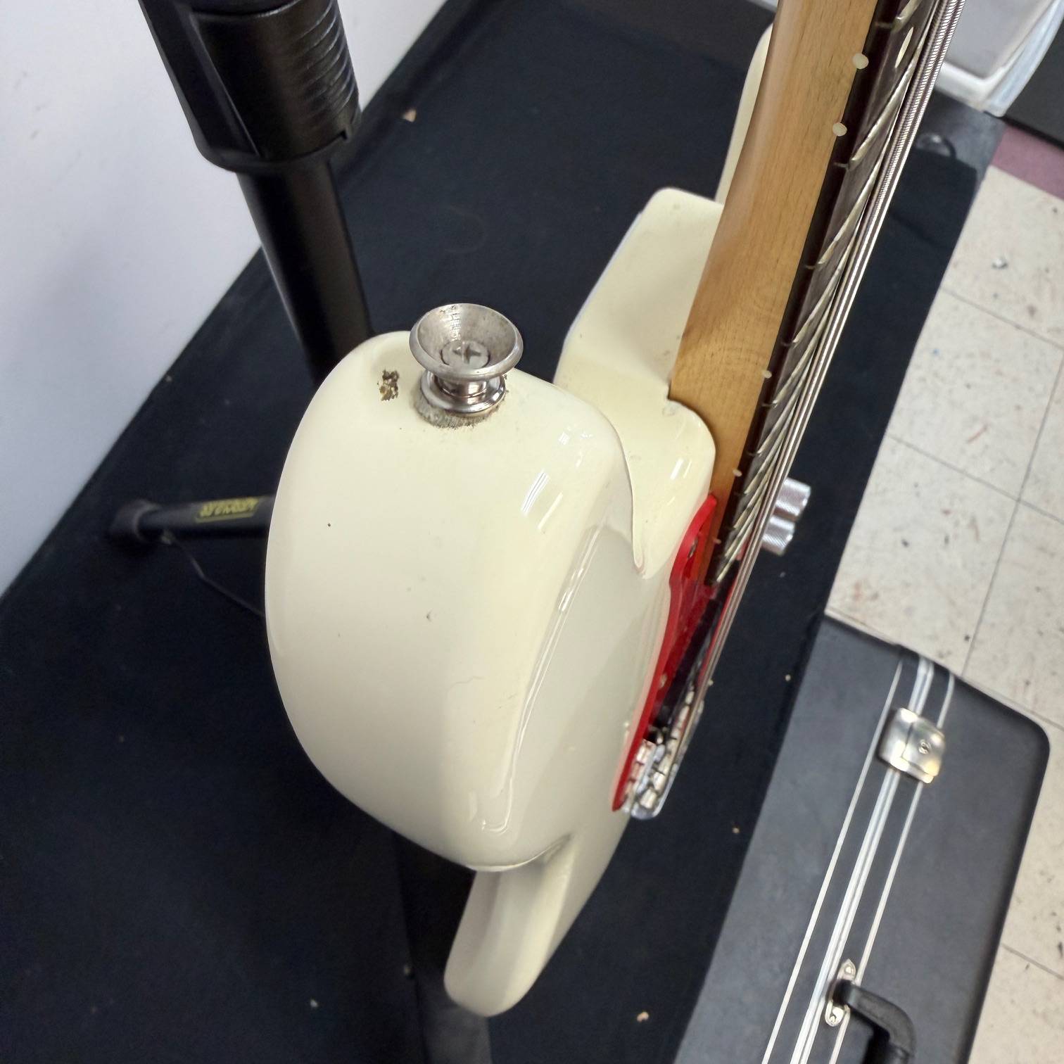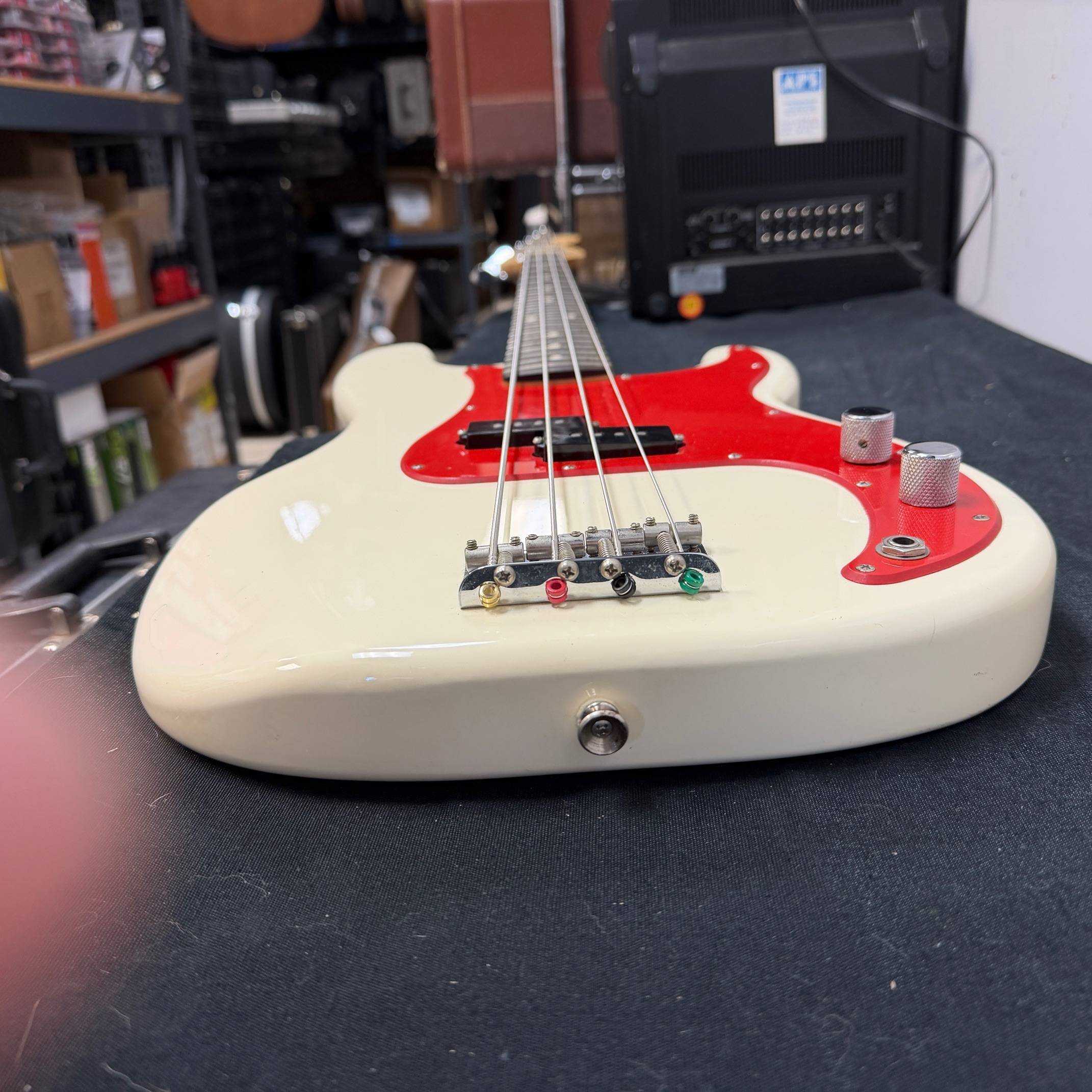 Up for sale is a Fender Precision standard 4-string electric bass guitar. This one was just restrung and set up here in our shop and it plays great. It has a couple of minor dings in the Arctic White finish. It was made in 2003, in Mexico, serial number MZ3047194. It comes in a Fender contoured bass case.