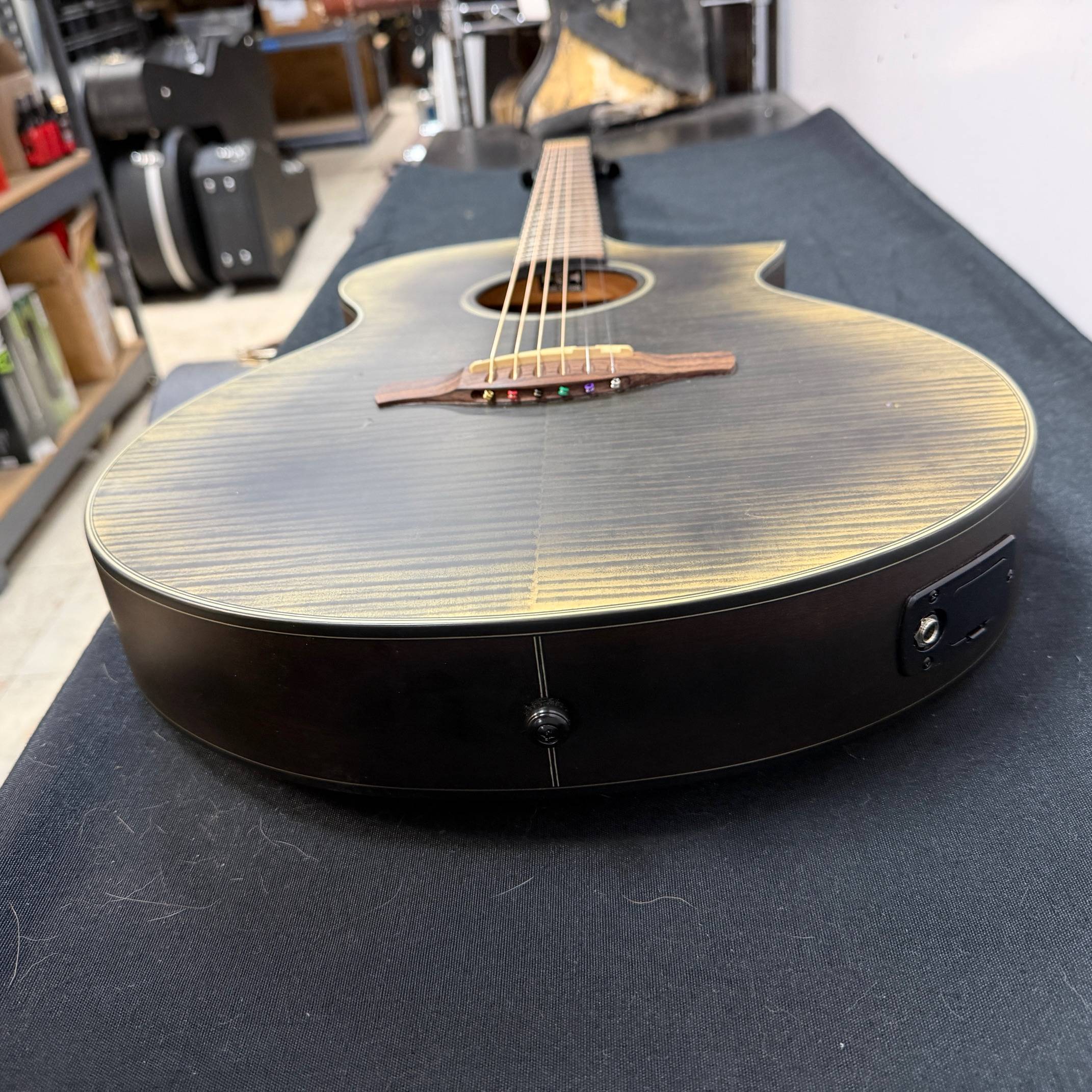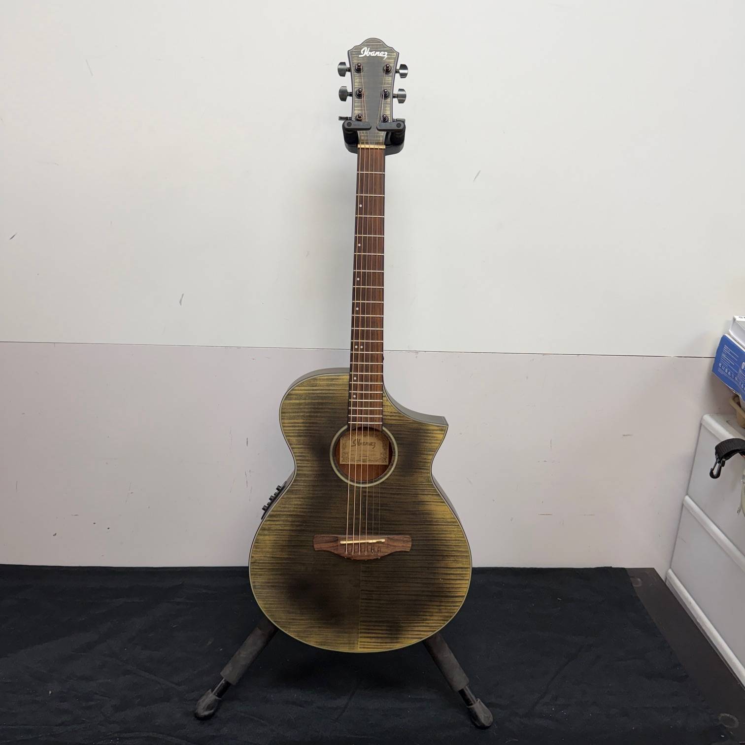 Up for sale is a used Ibanez AEWC32FM thinline acoustic electric guitar. This one was just strung up and cleaned up here in our shop. It shows some minor scratches and dings, but no structural damage. The guitar was made in Indonesia, serial number 5P01PW170100925. No case included. Check out the pictures for the condition. Available at Metro Gnome Music & Cycle To-Go.