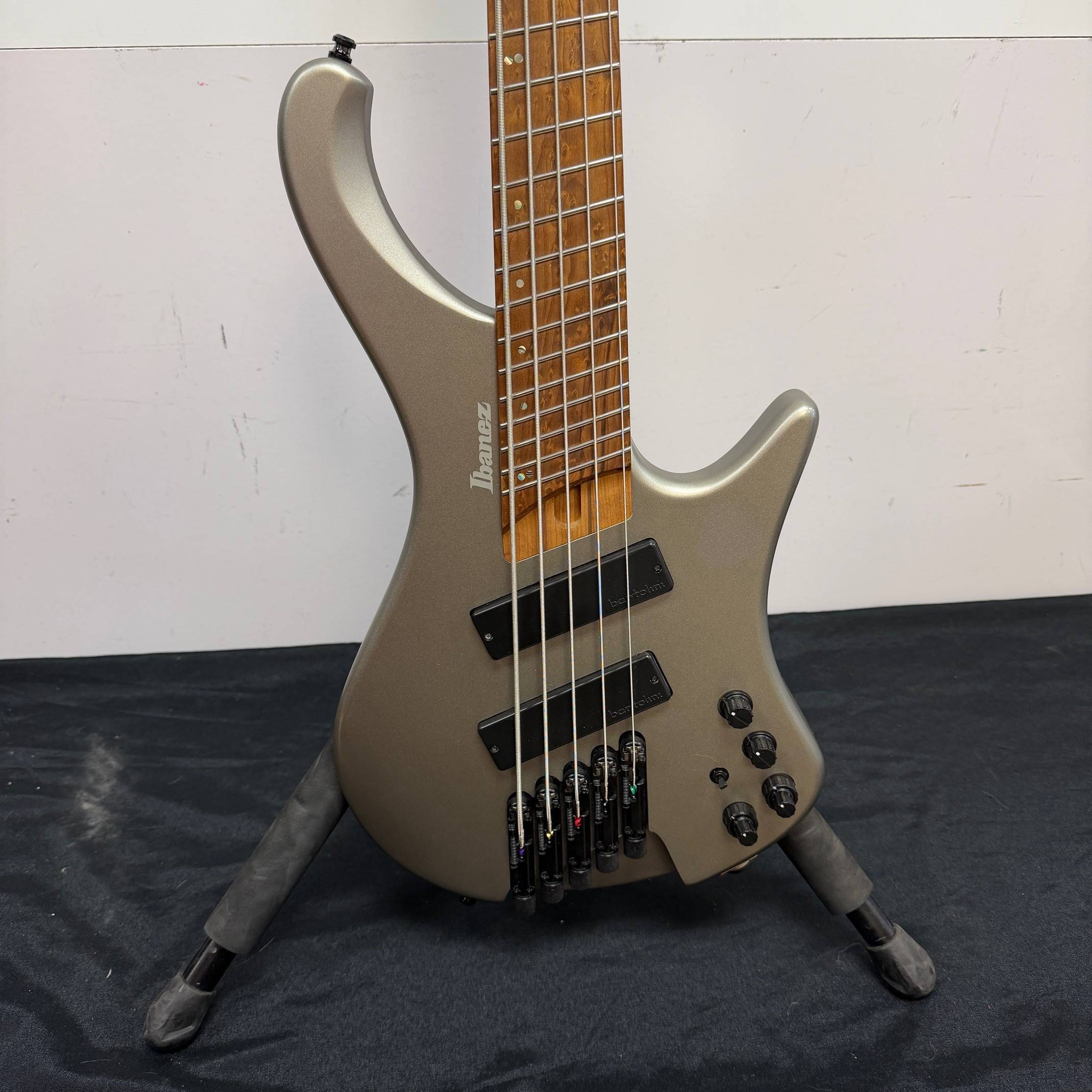 Up for sale is a used Ibanez EHB1005SMS 5-String Multi Short Scale Ergonomic Headless Bass Guitar. This one was cleaned up and tested here in our shop and it’s ready to play. It is in very good cosmetic condition, with no major dents or scratches. The bass was made in 2021, serial number I210310559. No case included. Check out the pictures.