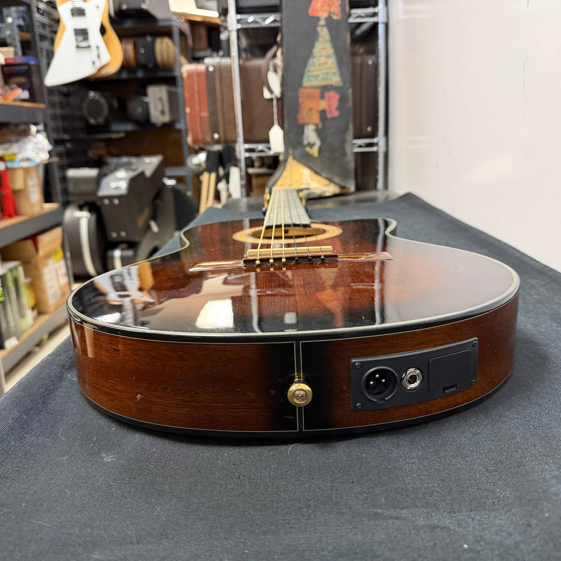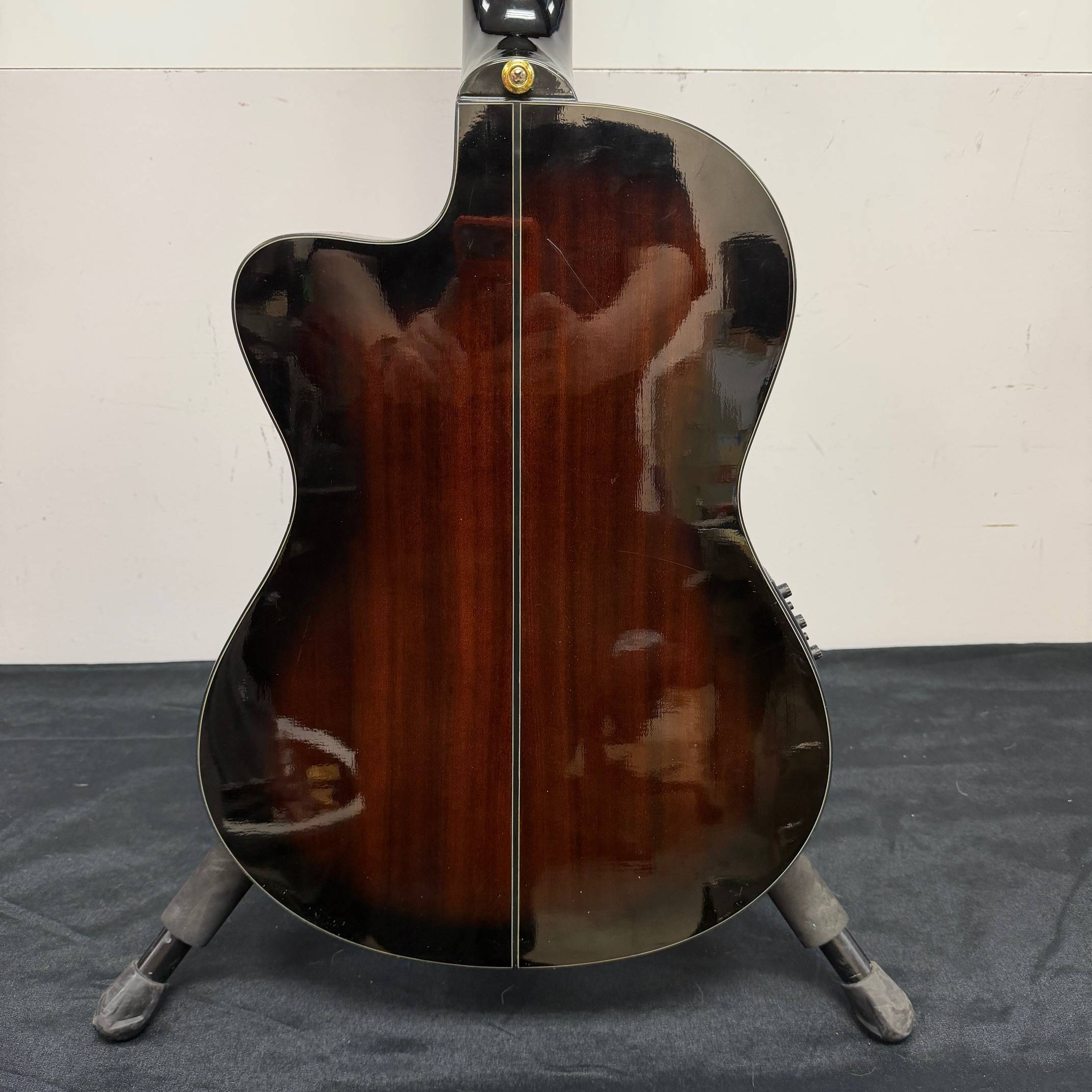 Acoustic-electric Guitar with Spruce Top, Mahogany Back and Sides, Fishman Pickup, Ibanez AEQ210T Preamp, and Nylon Strings – Dark Violin Sunburst