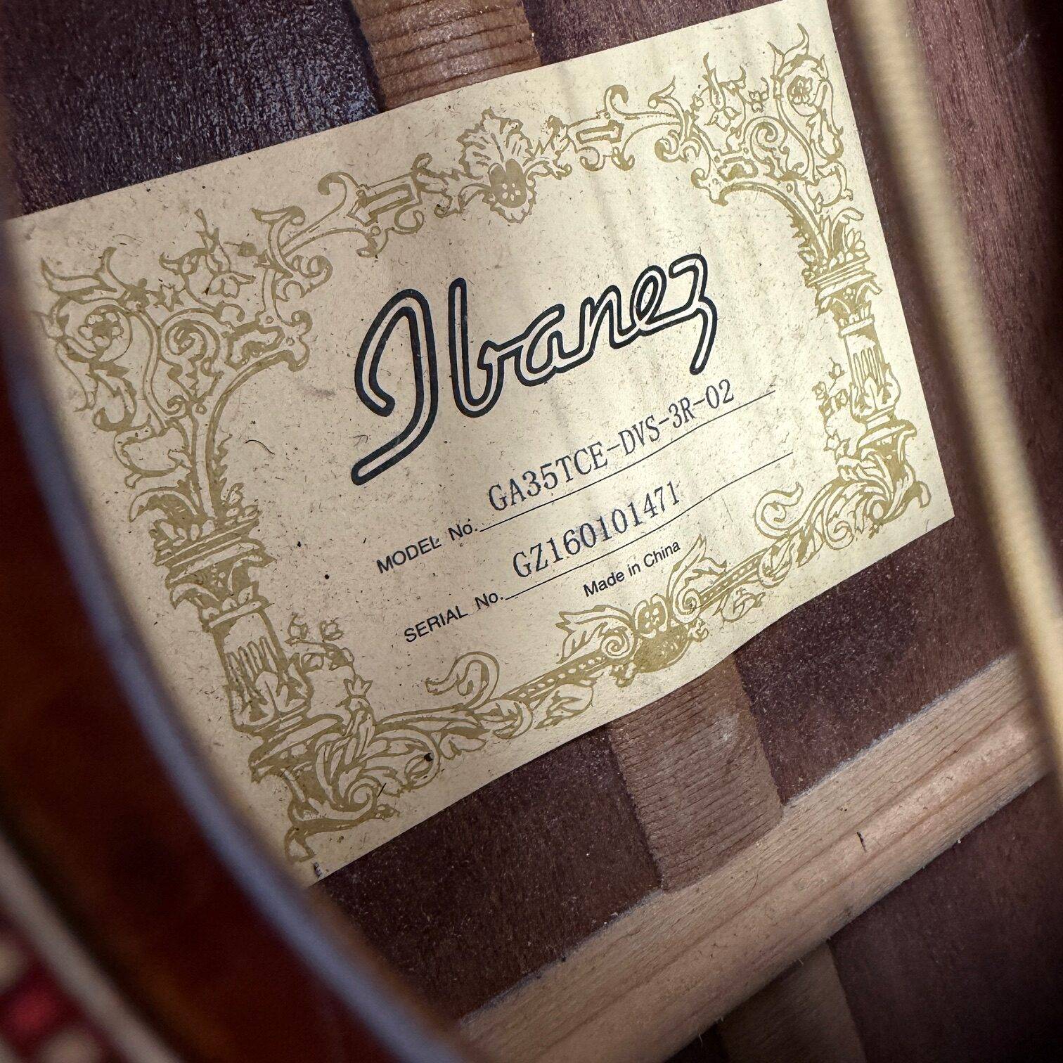 Up for sale is a used Ibanez GA35TCE acoustic electric classical thinline guitar. This one was just restrung and cleaned up here in our shop and plays great. It shows some cosmetic wear, but nothing structural. The guitar was made in China, serial number GZ160101471. No case included.