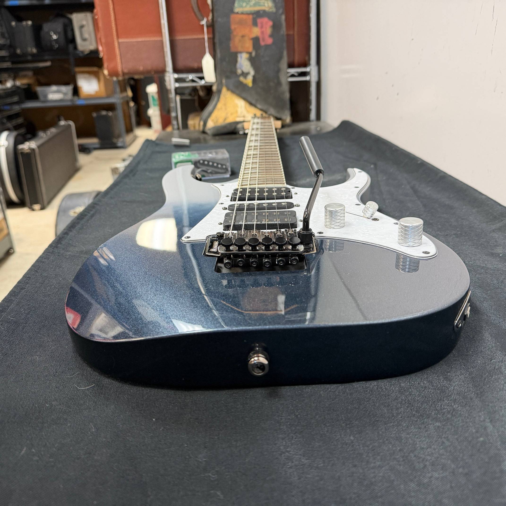 Up for sale is a used Ibanez RG450DX electric guitar. We just went through this one and put new strings on it. It plays and sounds great. The previous owner swapped the bridge pickup for a Seymour Duncan Parallel Axis Blue Saraceno, Trembucker, but we still have the original bridge pickup included. The Floyd Rose bridge is set up nicely, and includes its original tremolo bar that has some rubber on the end to make it more comfortable. The guitar is in very good condition, with no major dings or scratches. The guitar was made in Indonesia, in 2023, serial number I230114350. It comes in a hardshell case. Check out the pictures!