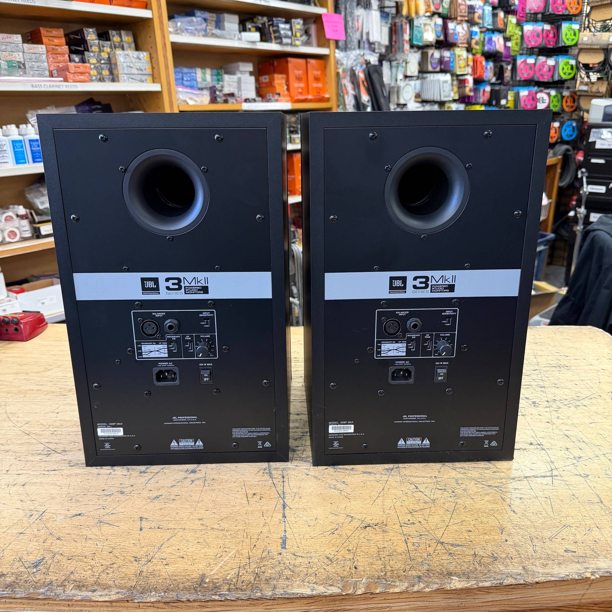 Up for sale is a used pair of JBL 308P MkII powered studio monitors. These were just tested here in our shop and work/sound great. They are in good cosmetic condition, but do show some handling wear. Please check out the pictures, or come see it in person at Metro Gnome Music.