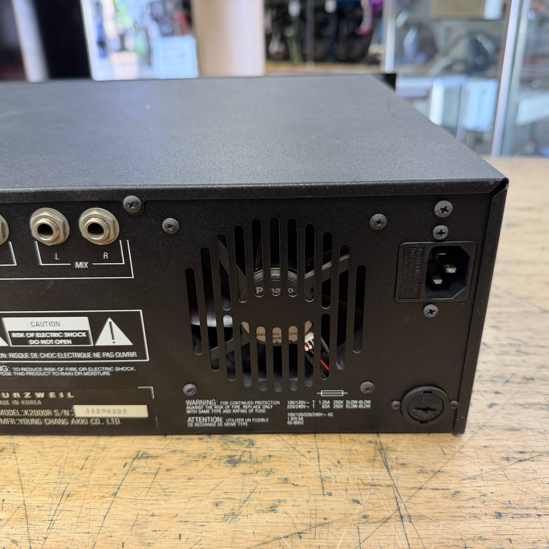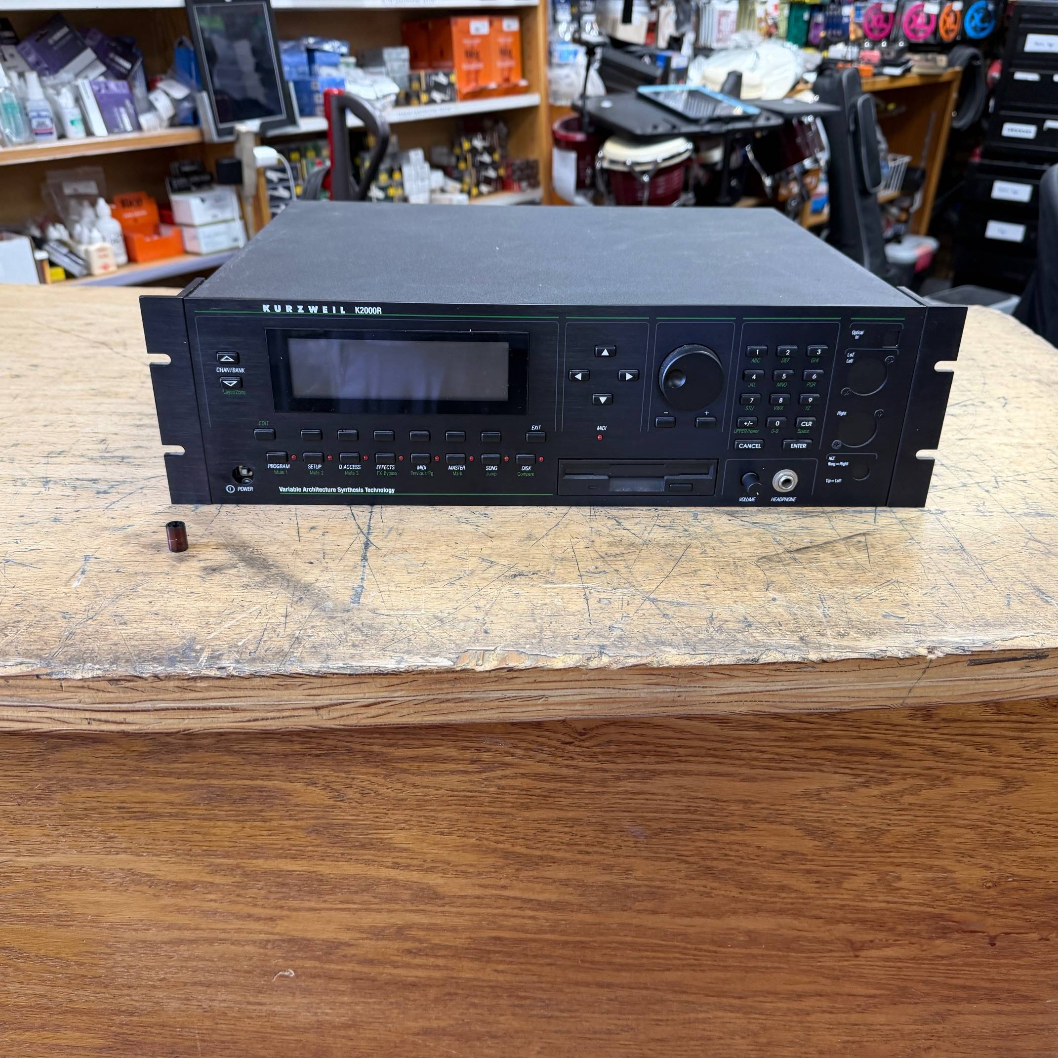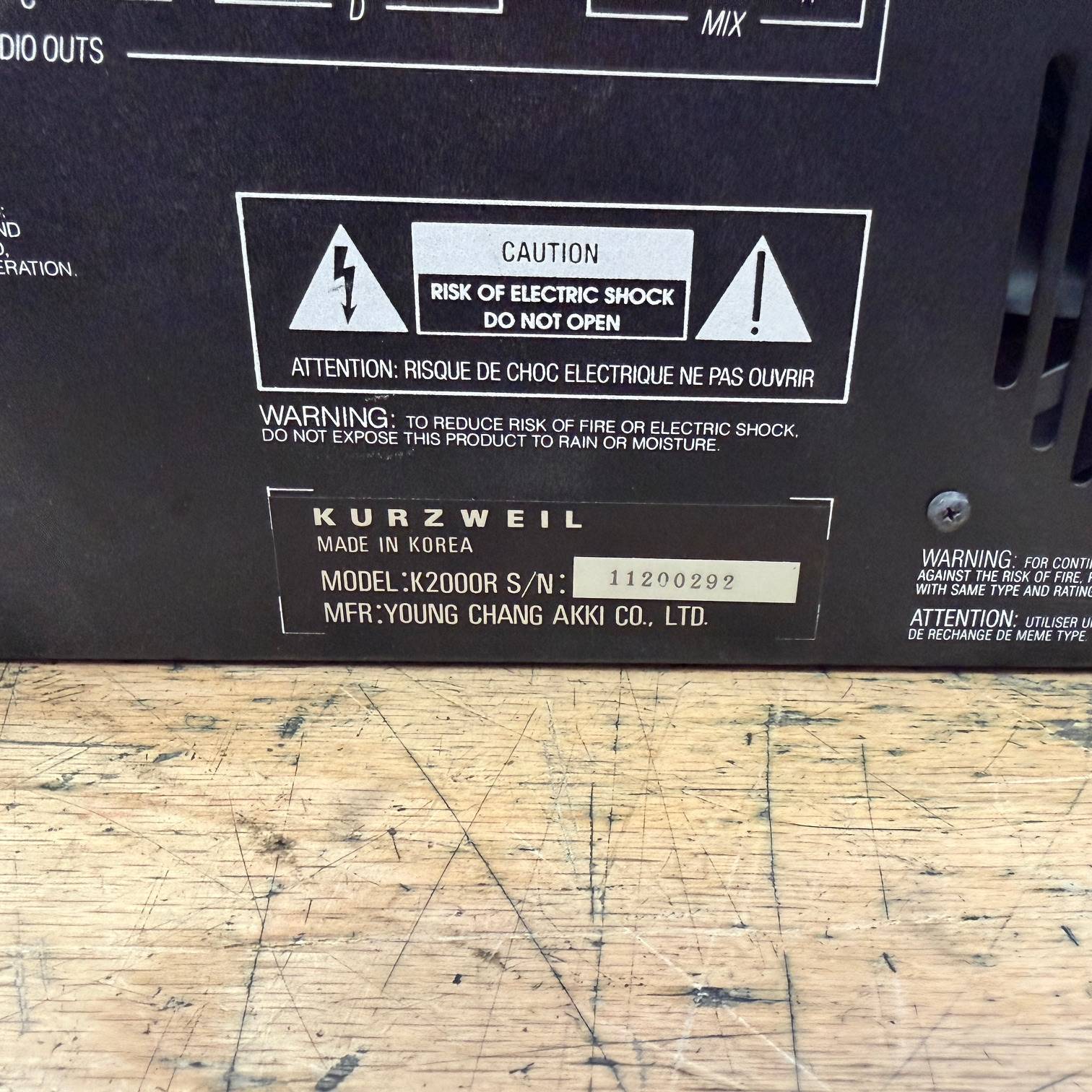 Up for sale is a used Kurzweil K2000R rackmount synthesizer module. This one was just tested here in our shop and has some issues: the power button is loose, headphones volume knob won’t turn, and internal battery voltage is low. It turns on & makes sound, MIDI works. We are selling this one AS IS, for parts or repair. The module was made in Korea, serial number 11200292. Check out the pictures or come down and check it out in person at Metro Gnome Music.