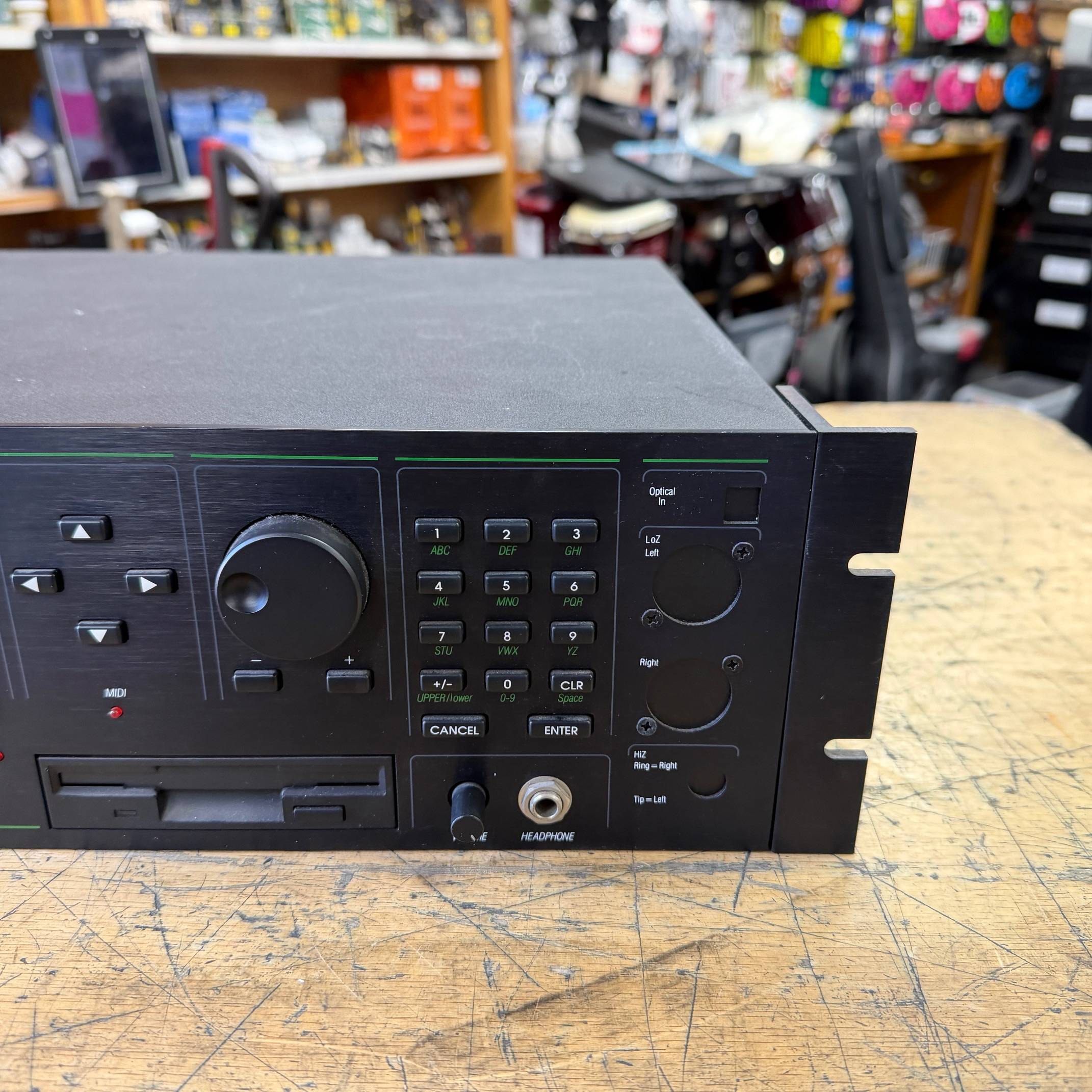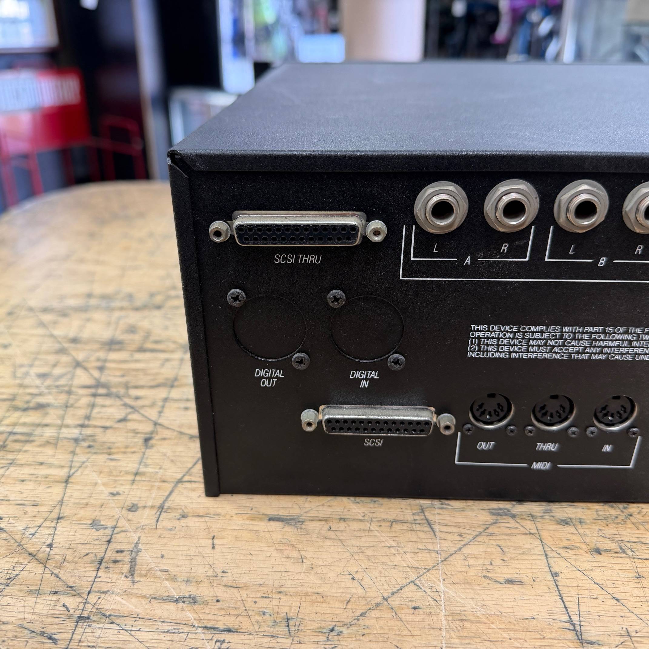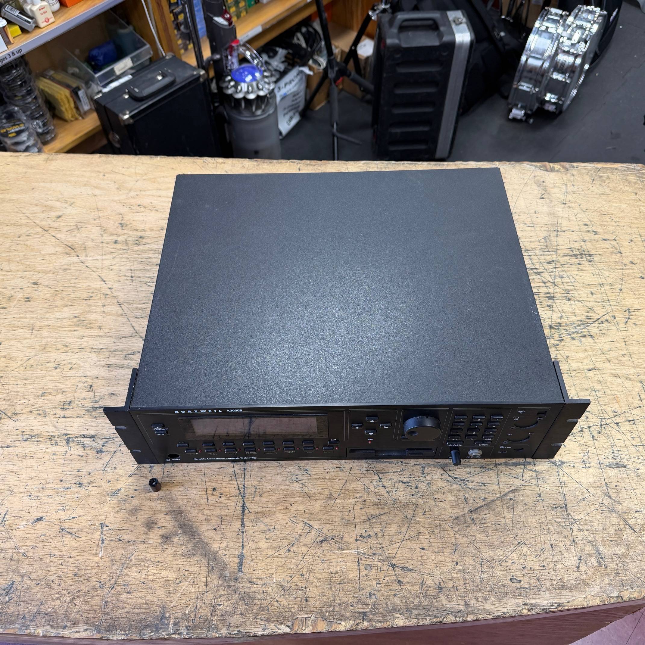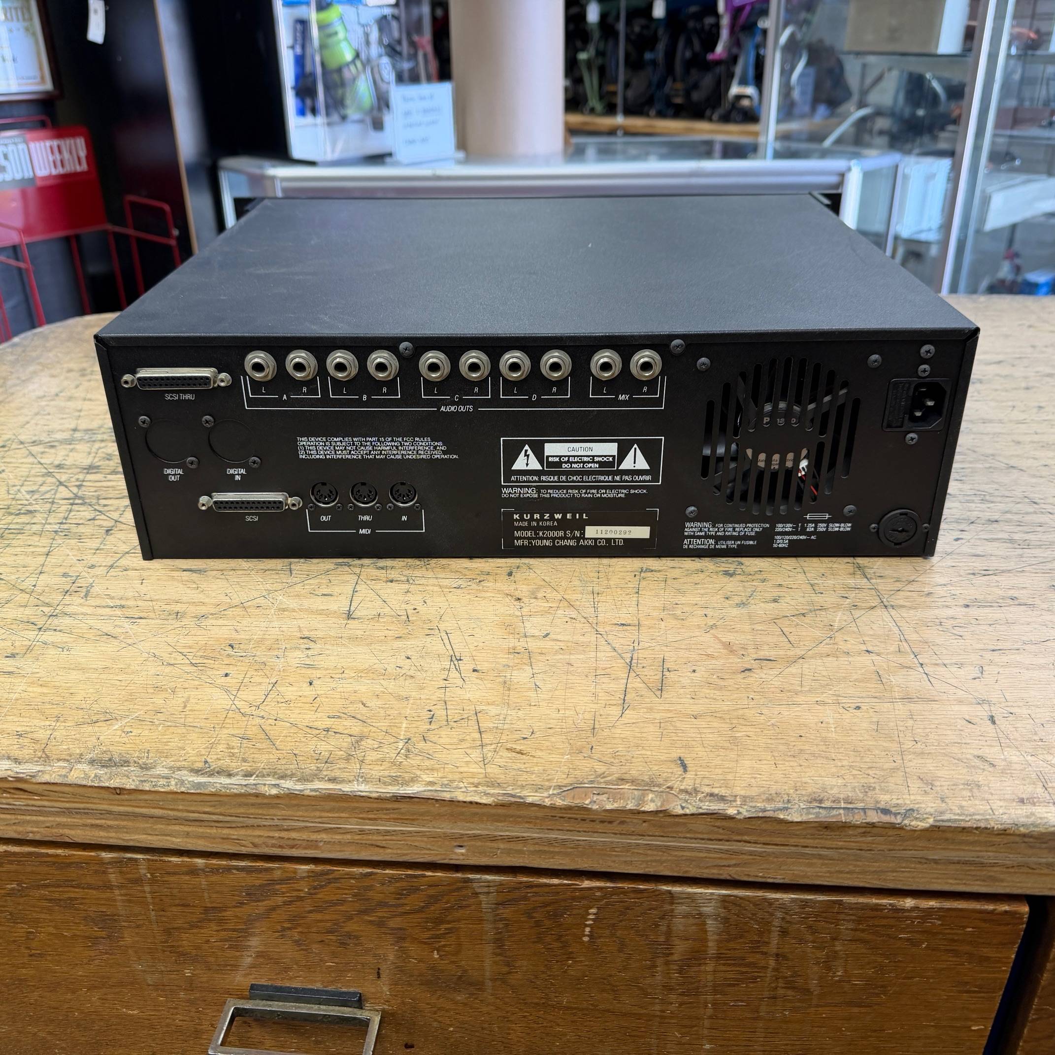 Up for sale is a used Kurzweil K2000R rackmount synthesizer module. This one was just tested here in our shop and has some issues: the power button is loose, headphones volume knob won’t turn, and internal battery voltage is low. It turns on & makes sound, MIDI works. We are selling this one AS IS, for parts or repair. The module was made in Korea, serial number 11200292. Check out the pictures or come down and check it out in person at Metro Gnome Music.