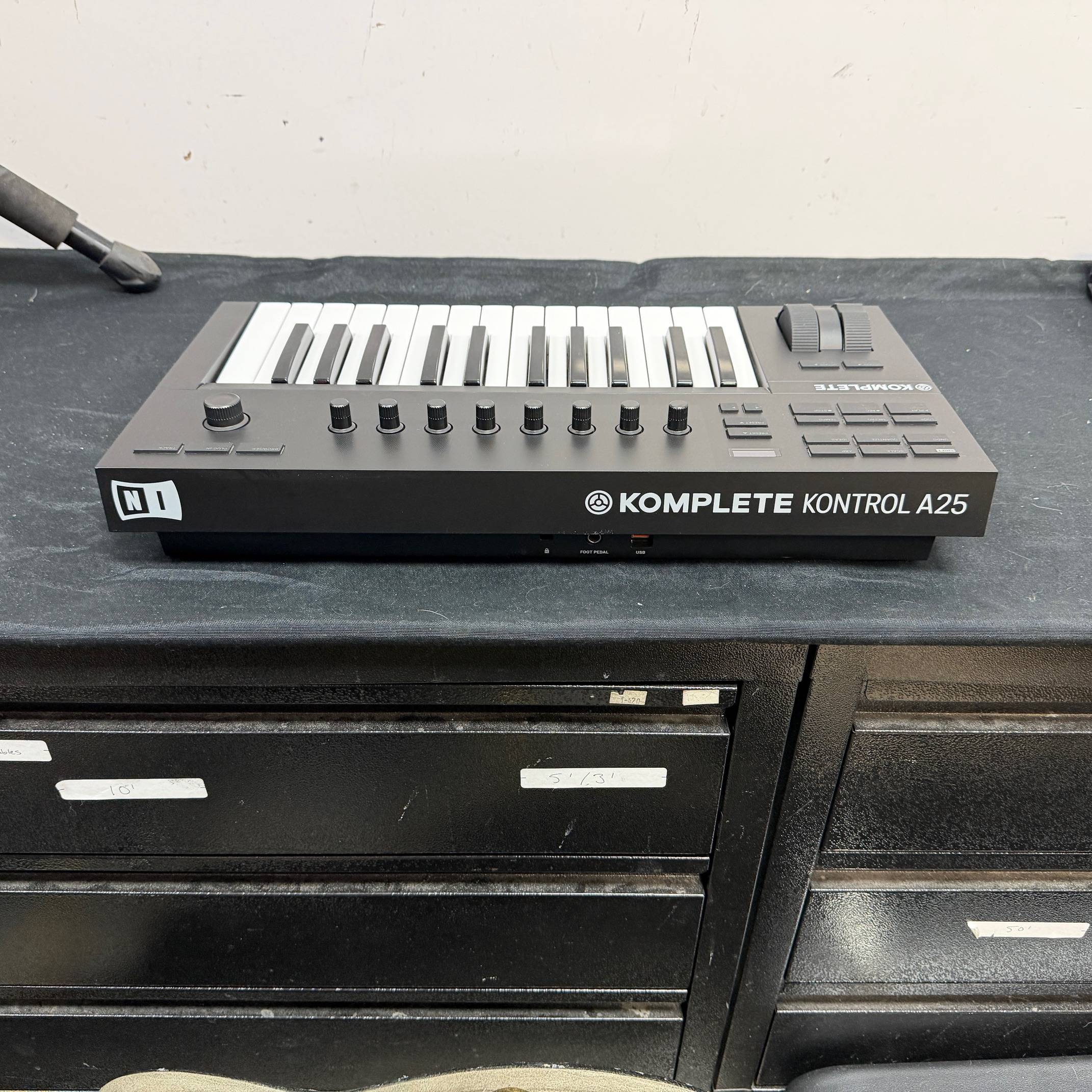 Up for sale is a used Native Instruments Komplete Kontrol A25 MIDI keyboard controller. This one was tested here in our shop and is ready to use. It shows some minor handling wear. No cables included. Check out the pictures for the condition, or come see it in person at Metro Gnome Music.