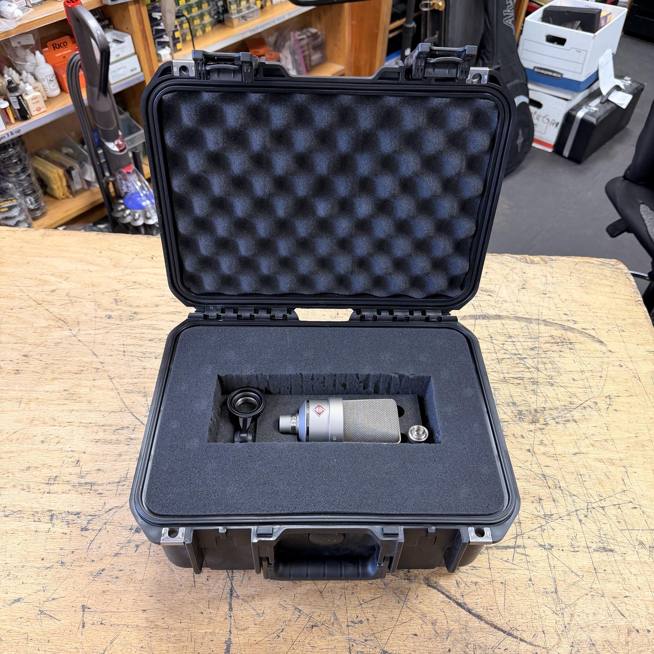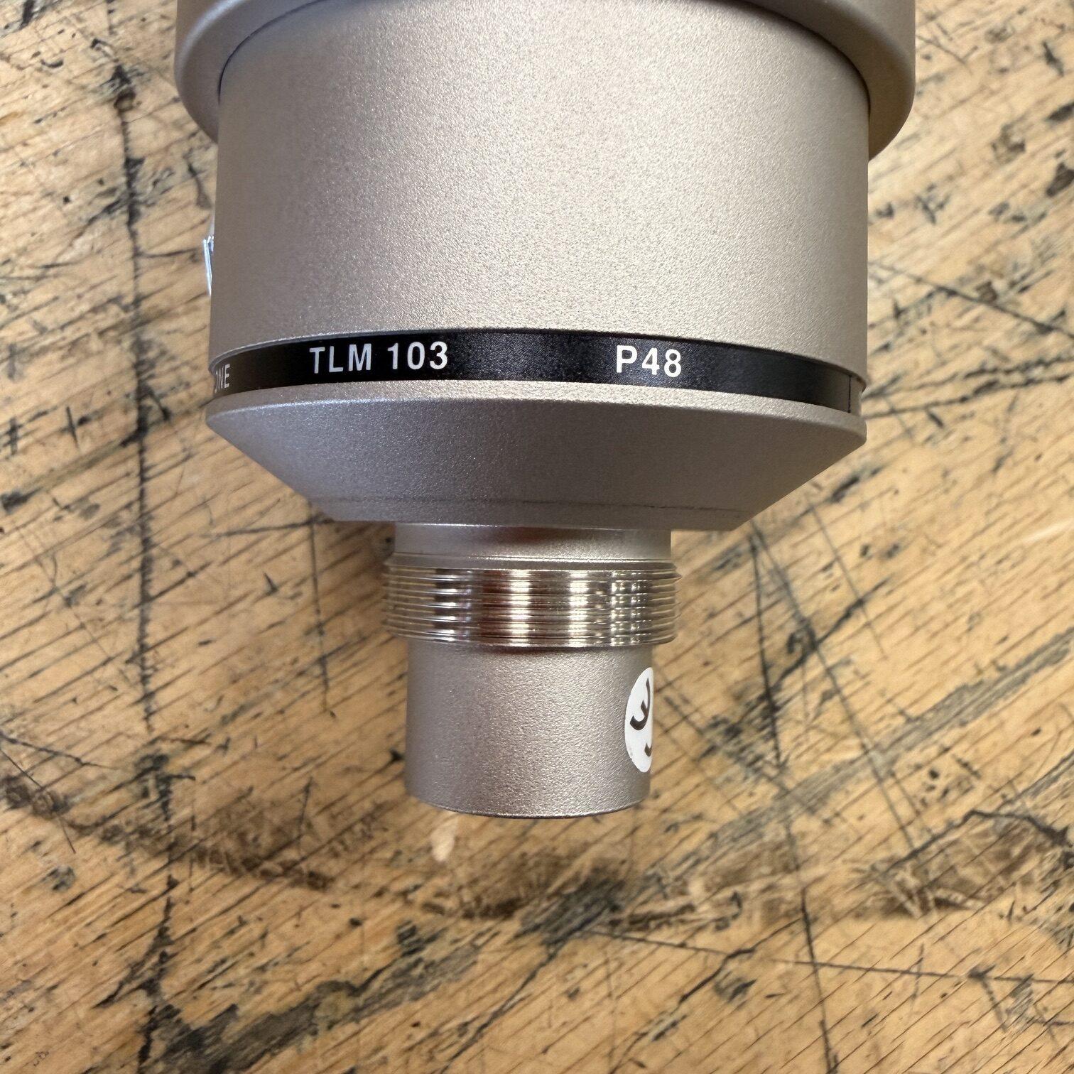 Up for sale is a used Neumann TLM 103 P48 Large-diaphragm Cardioid Condenser Microphone. This microphone was just tested here in our shop using 48V phantom power (required for the microphone to work), and it works great. It is in very good cosmetic condition. It comes with its Swivel Mount and microphone stand adapter. It comes in an SKB i Series Waterproof hard plastic case, loaded with dense foam; it is definitely an upgrade over the wood case in terms of safe storage. The microphone was made in Germany, serial number 76319. Check out the pictures.