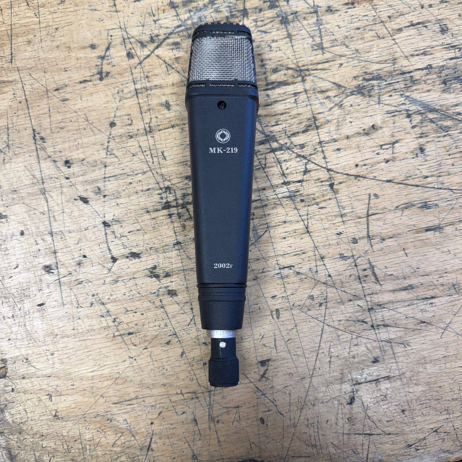 Up for sale is a used Oktava MK-219 cardioid condenser microphone. This one was just tested here in the shop and it works as it should. It is in good cosmetic condition, but does show some wear. It comes with its original case. It comes with a mic clip, but a shock mount is not included. It comes with its original bag. It was made in Russia, serial number N01141. Check out the pictures.