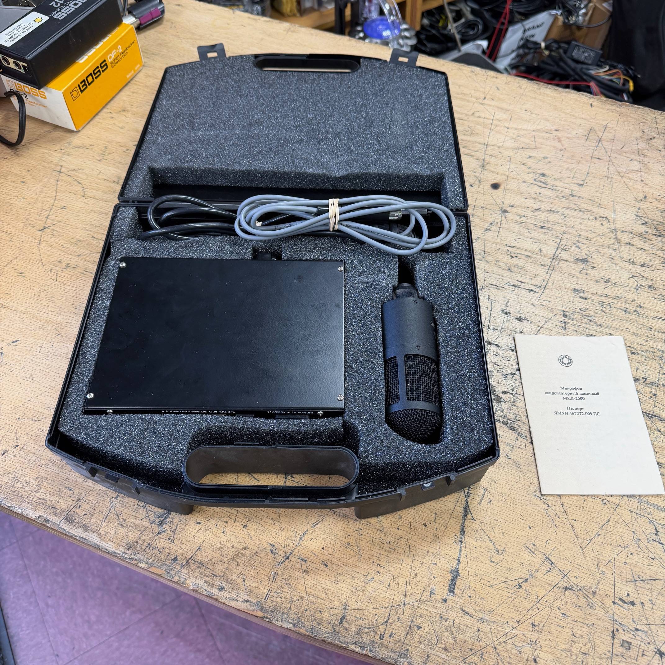 Up for sale is a used Oktava MKL-2500 Large Diaphragm Cardioid Tube Condenser Microphone. This microphone was just tested here in our shop using the included Oktava BP-2 power supply, and it works great (sounds great, too). Everything is in very good cosmetic condition. It comes with its proprietary cable to the power supply, an AC cable, and original carrying case. Check out the pictures.
