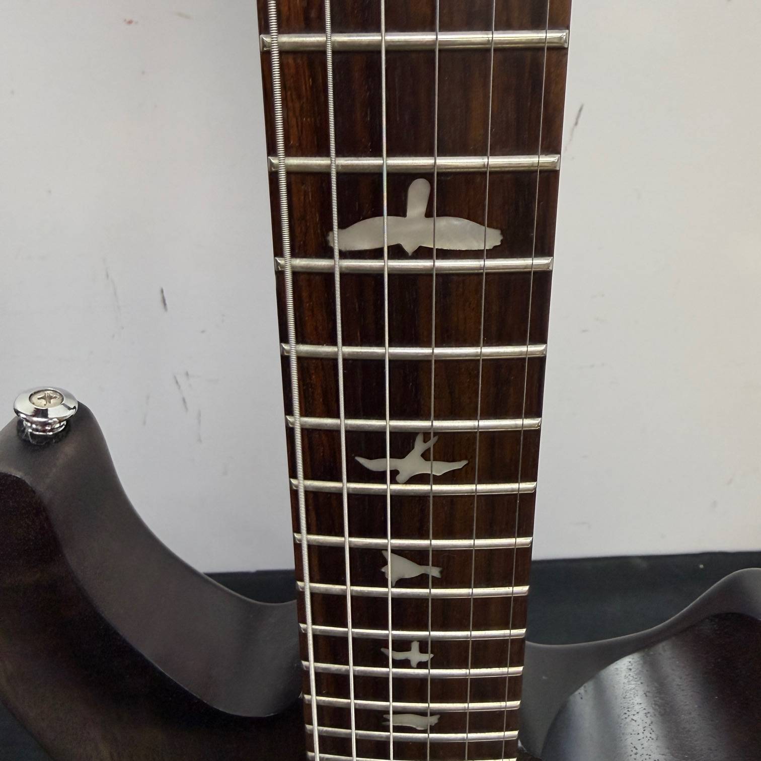 Up for sale is a used Paul Reed Smith PRS SE CE 24 Satin Charcoal electric guitar. This one was just set up and restrung here in our store and plays great. It has some minor scratches and dings, but nothing that affects playability. The guitar comes with its tremolo bar, but no case. The guitar was made in Indonesia, serial number CTIG082110. Check out all the pictures