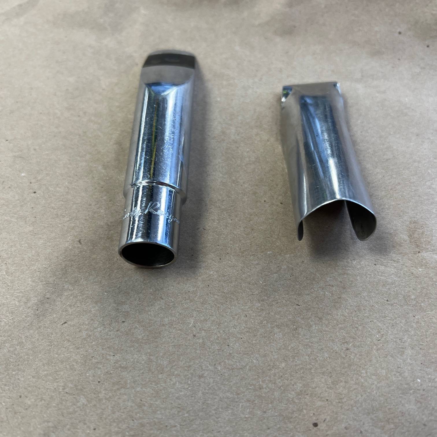 Up for sale is a used Santy Runyon #5 metal tenor sax mouthpiece. This one was just cleaned here in our shop. It shows some bite marks on the tip and some scratches throughout. No ligature included, but a cap comes with it. Pictures say the rest.