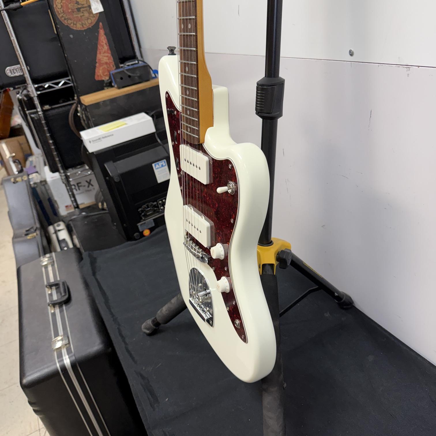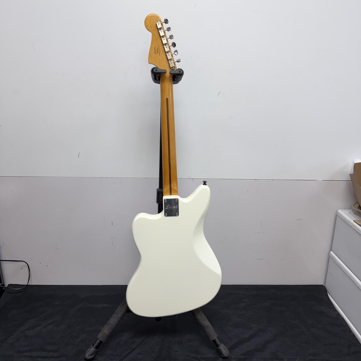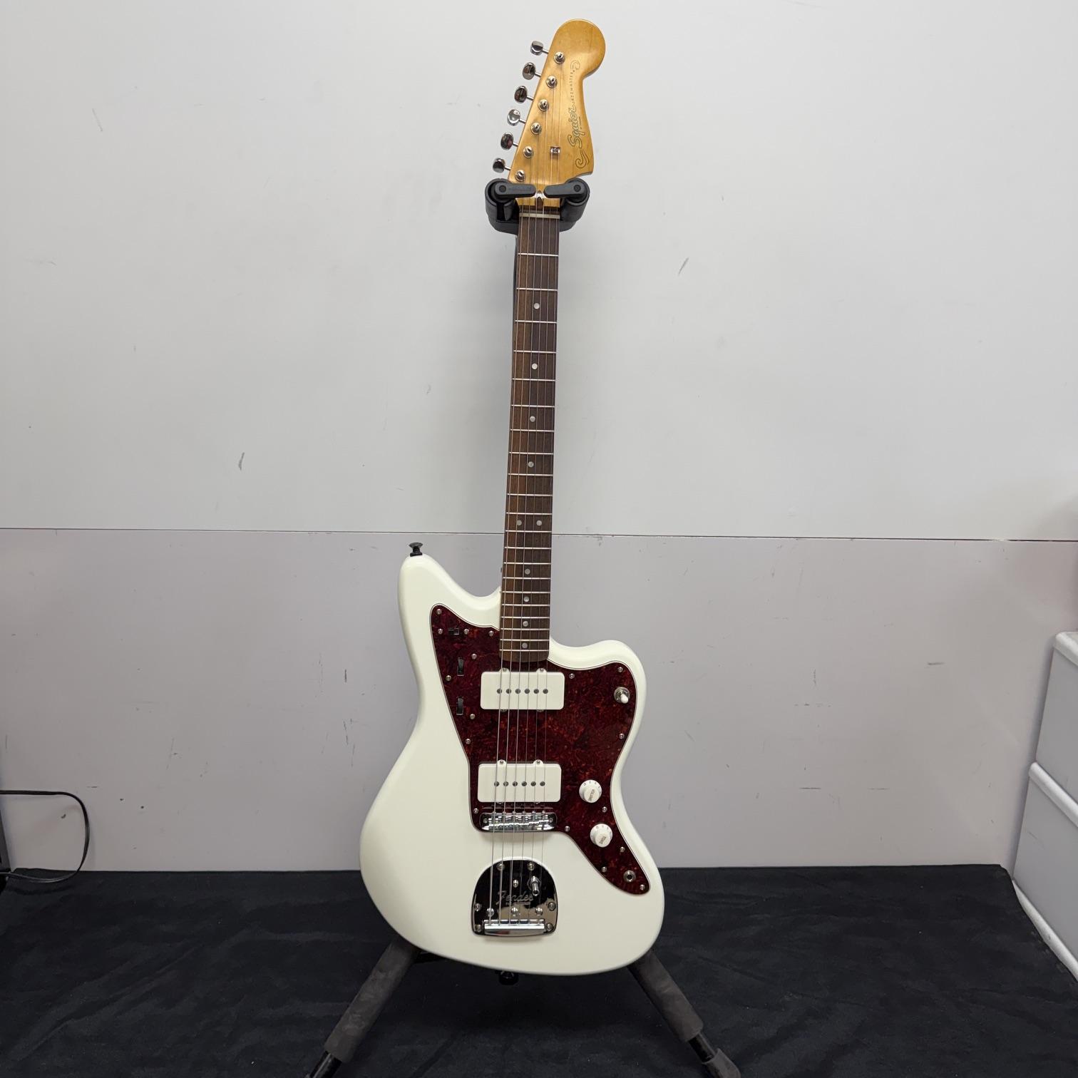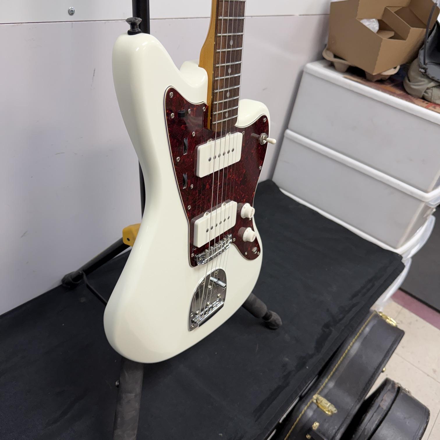 Up for sale is a used Squier Classic Vibe 60’s Jazzmaster Electric Guitar. This one was just set up with 10’s here in our shop and it’s ready to play. It is in very good cosmetic condition. It features an Olympic White finish and a Laurel fingerboard. It was made in Indonesia, in 2022, serial number ICSI21029331. No case, or whammy bar included. Check out the pictures! Available at Metro Gnome Music.
