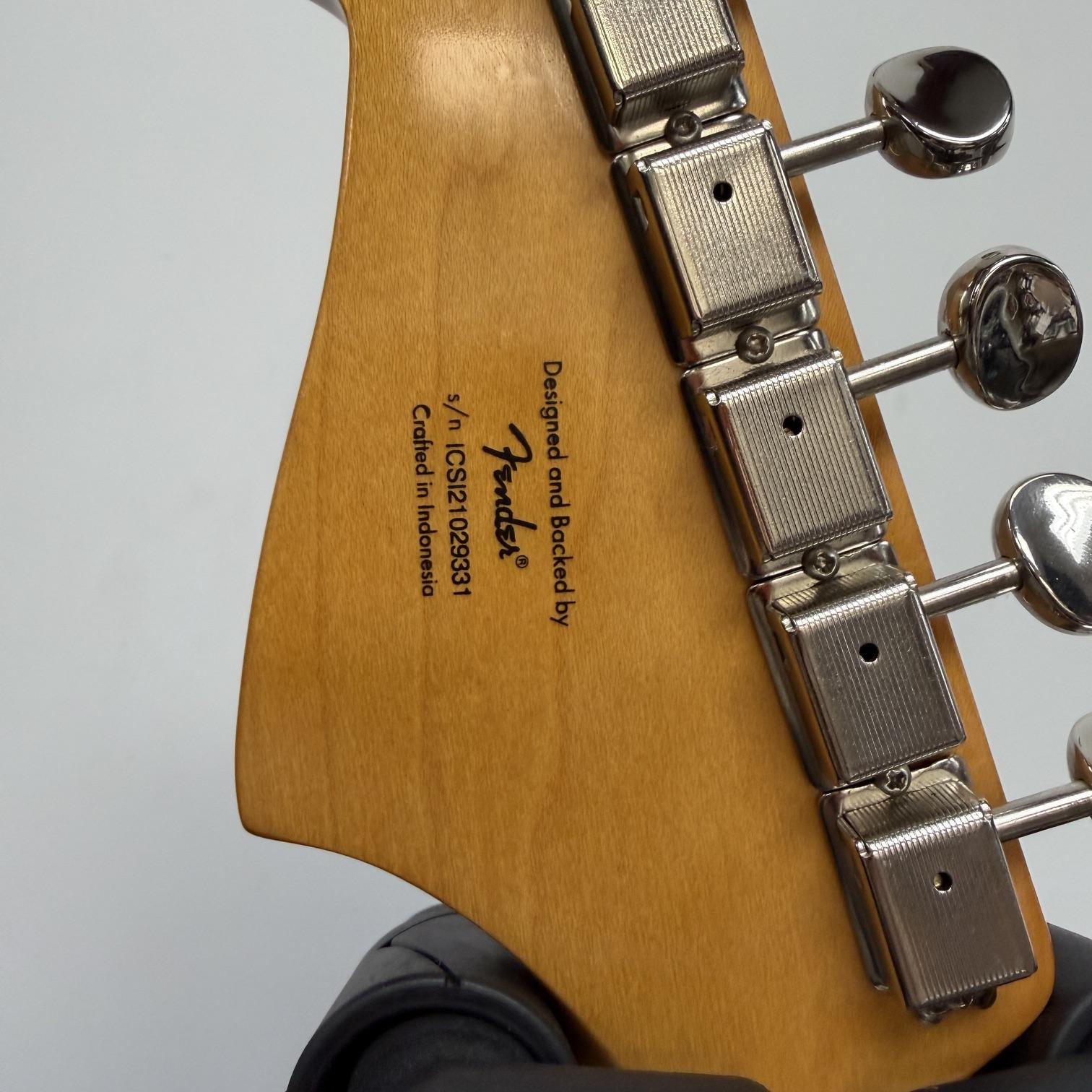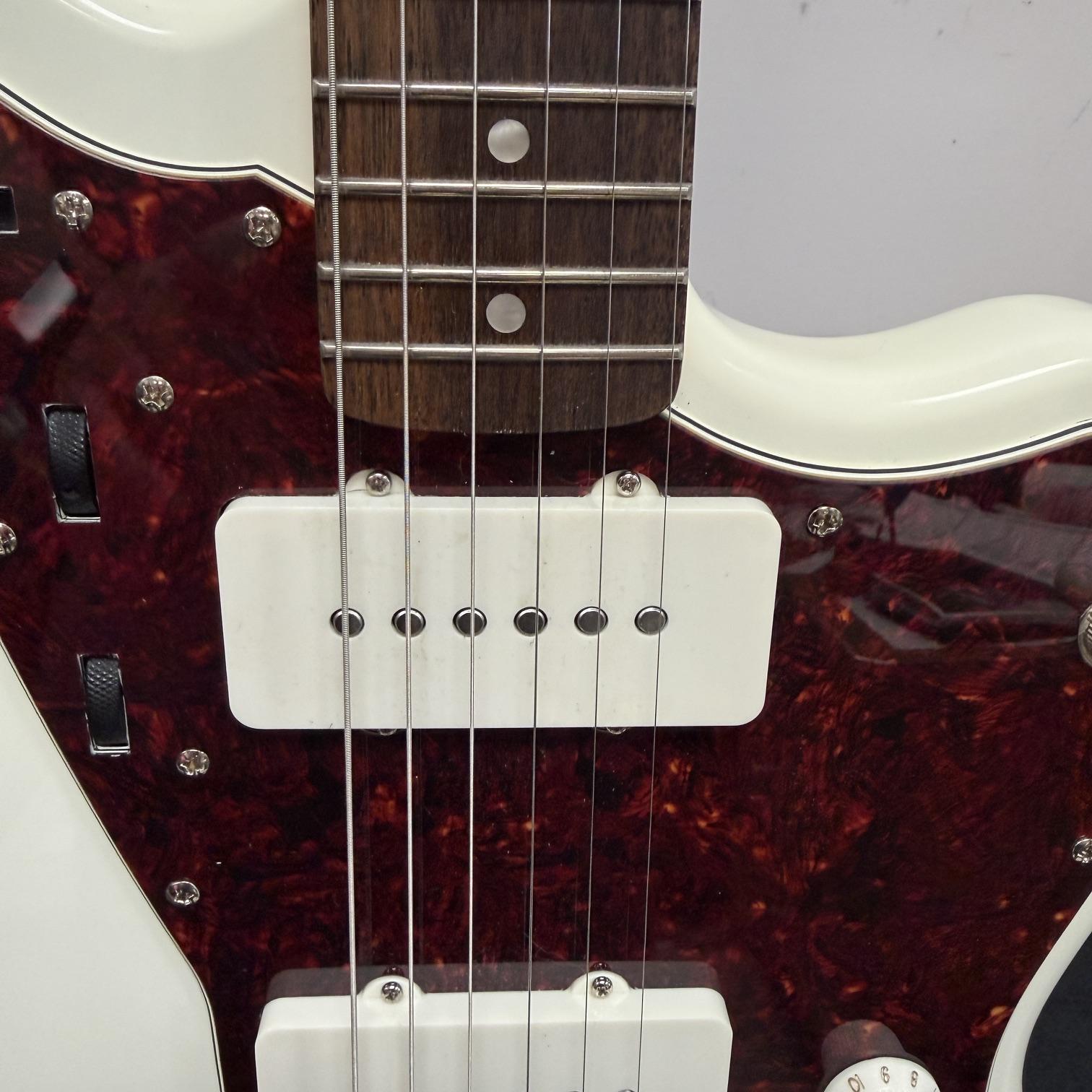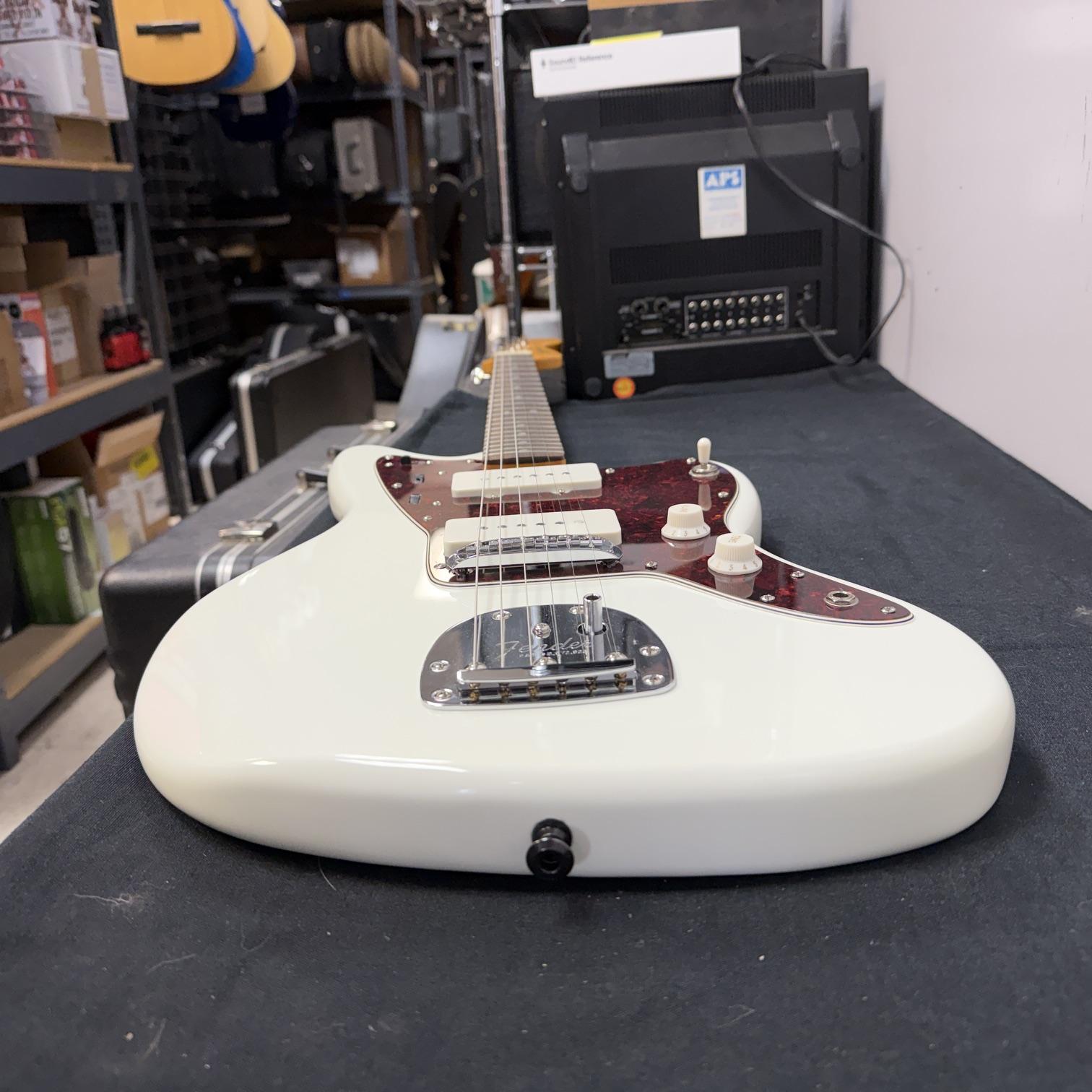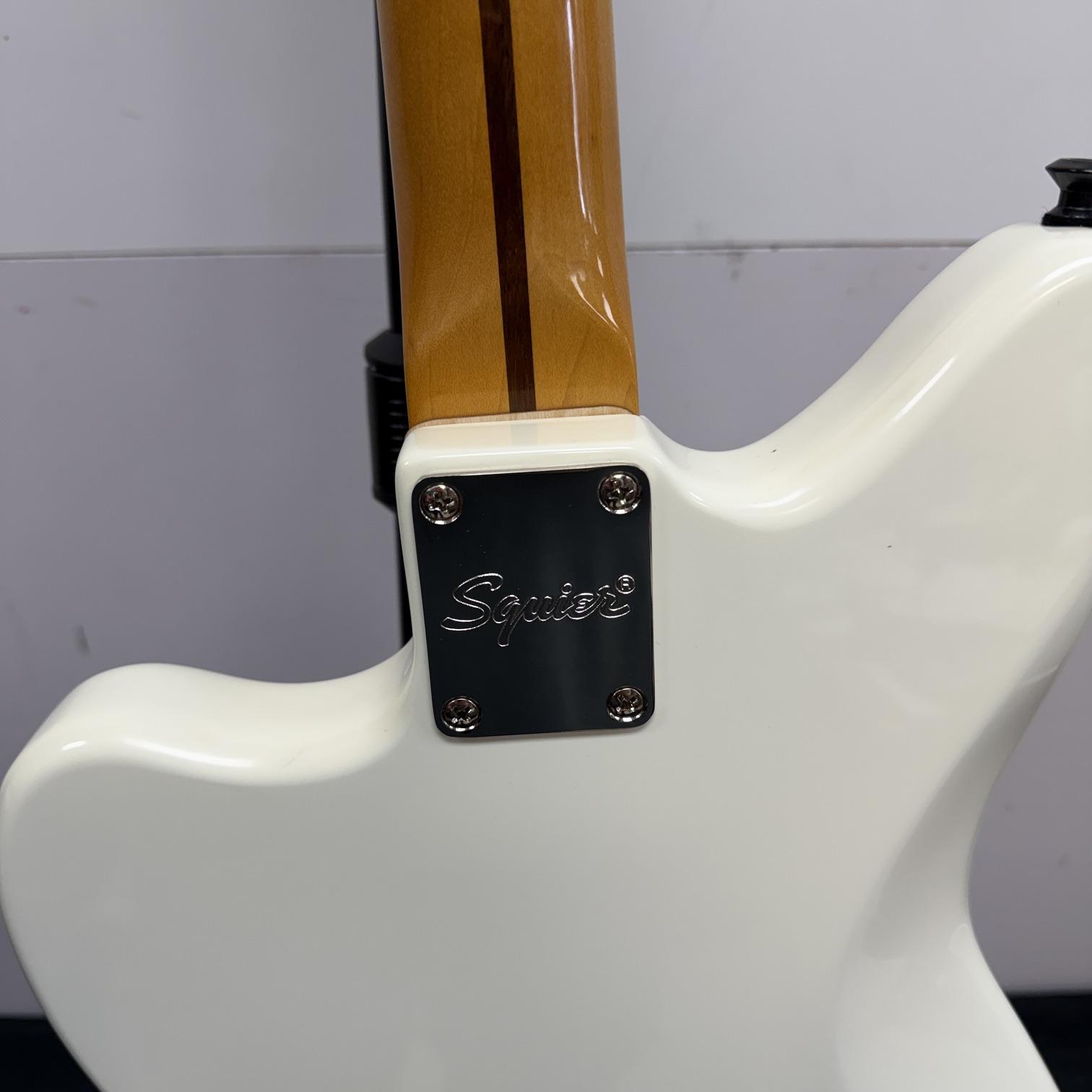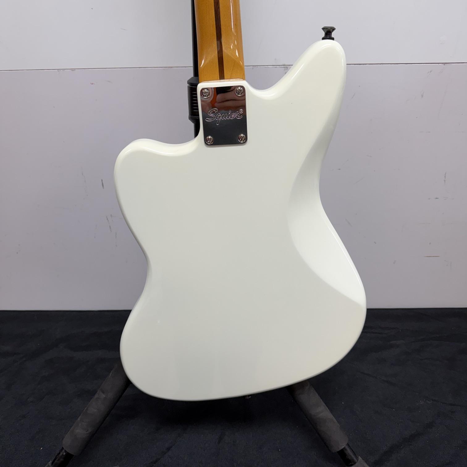 Up for sale is a used Squier Classic Vibe 60’s Jazzmaster Electric Guitar. This one was just set up with 10’s here in our shop and it’s ready to play. It is in very good cosmetic condition. It features an Olympic White finish and a Laurel fingerboard. It was made in Indonesia, in 2022, serial number ICSI21029331. No case, or whammy bar included. Check out the pictures! Available at Metro Gnome Music.