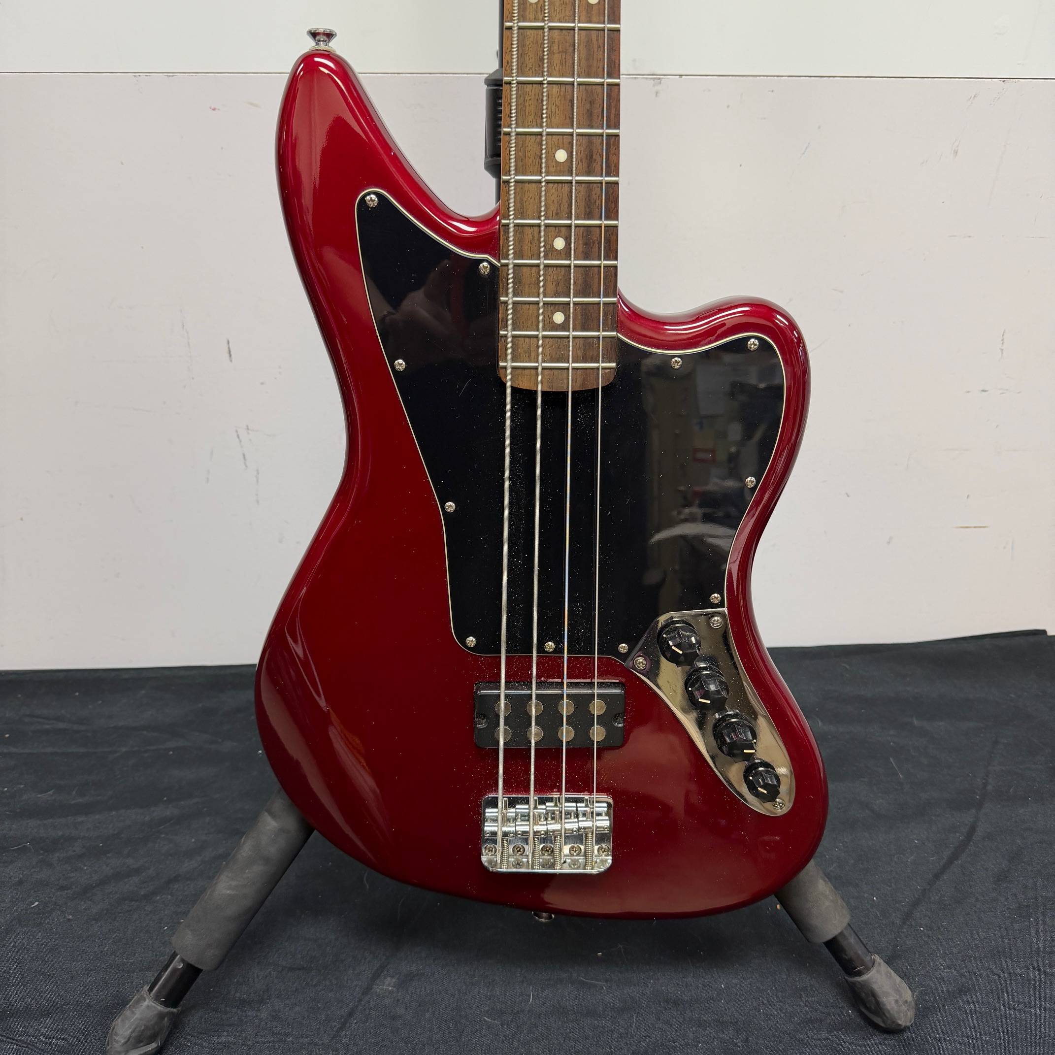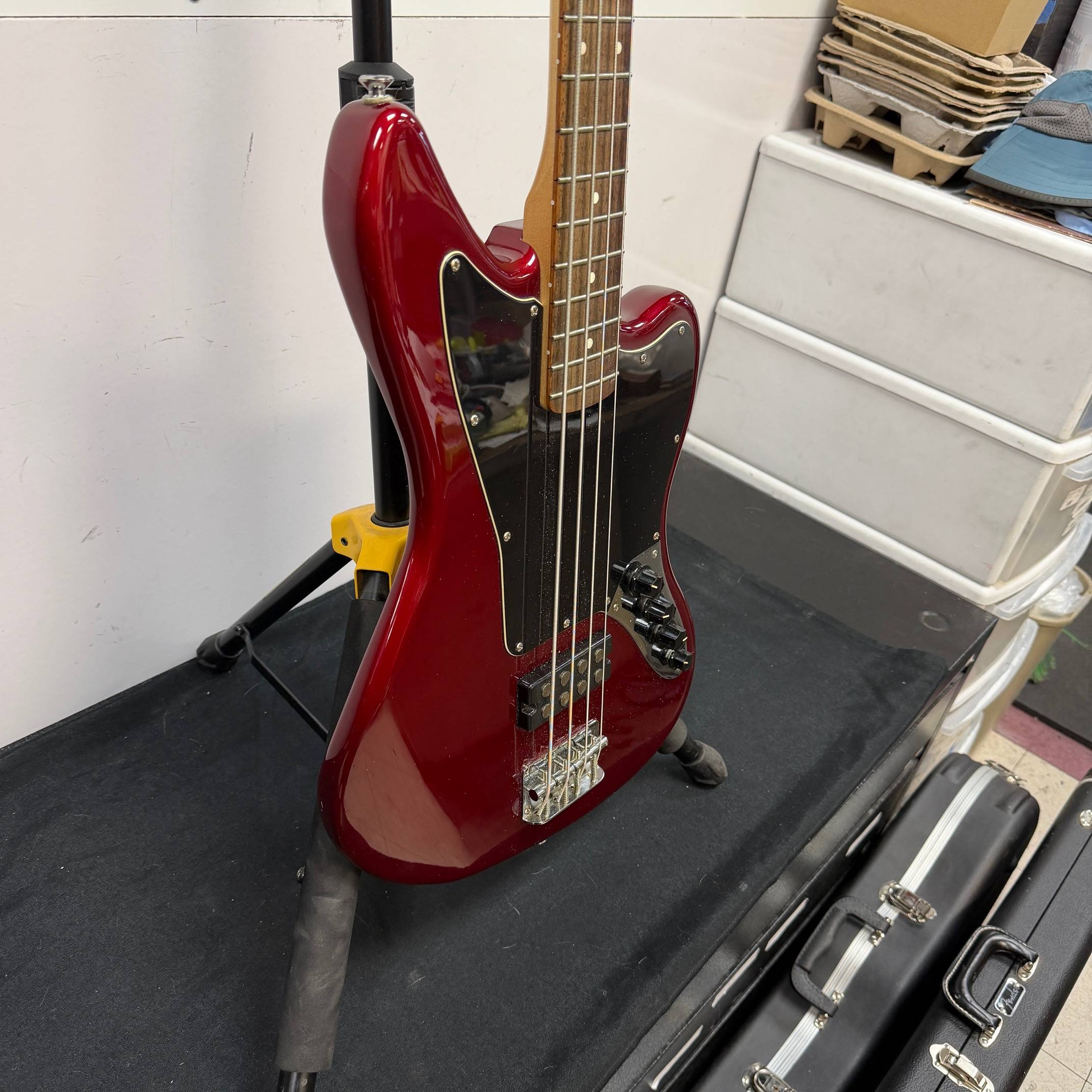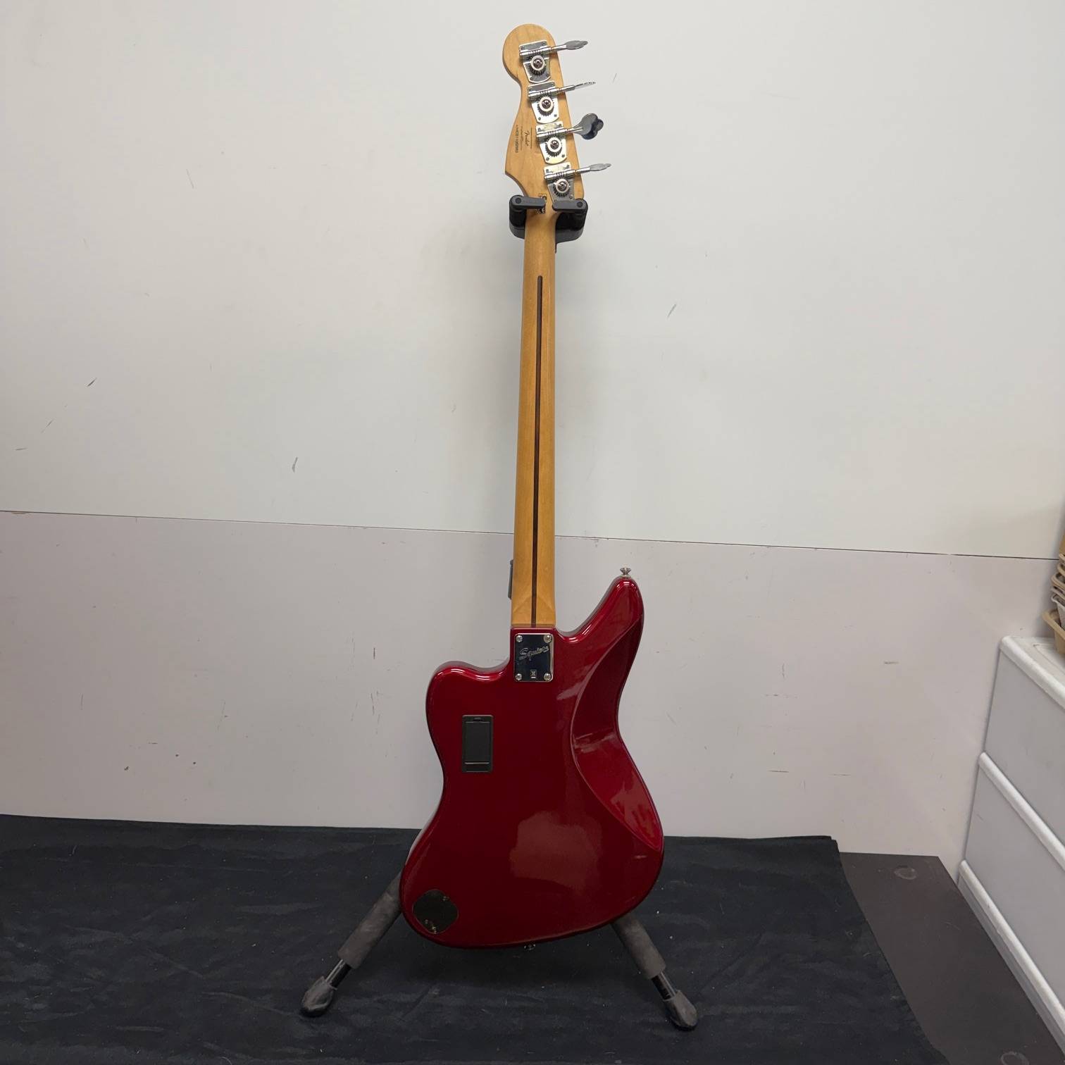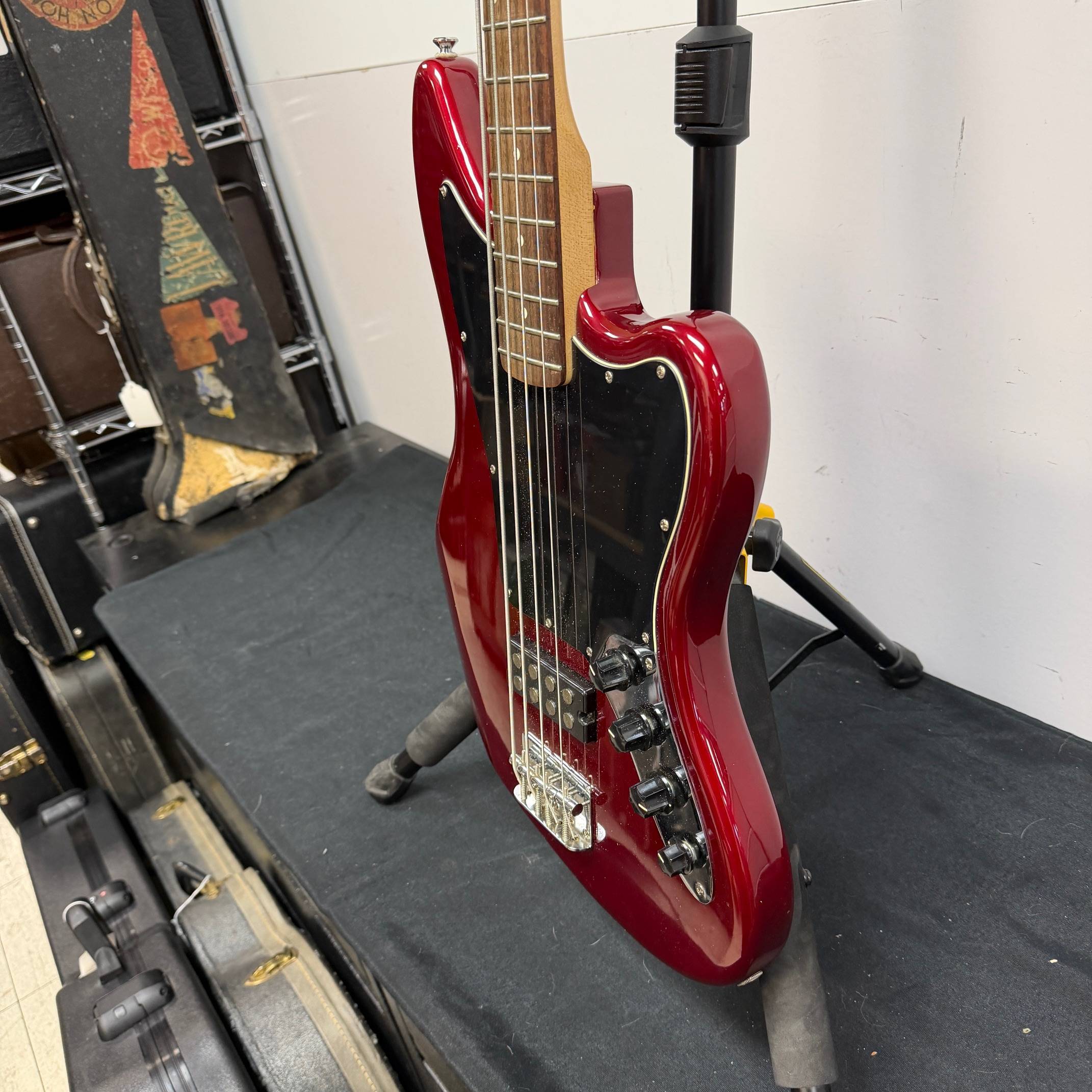 Up for sale is a used Squier Vintage Modified Special Edition Jaguar active 4-string electric bass. This one was just checked out here in our shop and is ready to play. It is in very good cosmetic condition, with no major blemishes in the Candy Apple red finish. The bass features an active humbucker pickup. It was made in Indonesia in 2011, serial number ICS11062963. No case included. Check out the pictures of this beauty, or come see it at Metro Gnome Music.