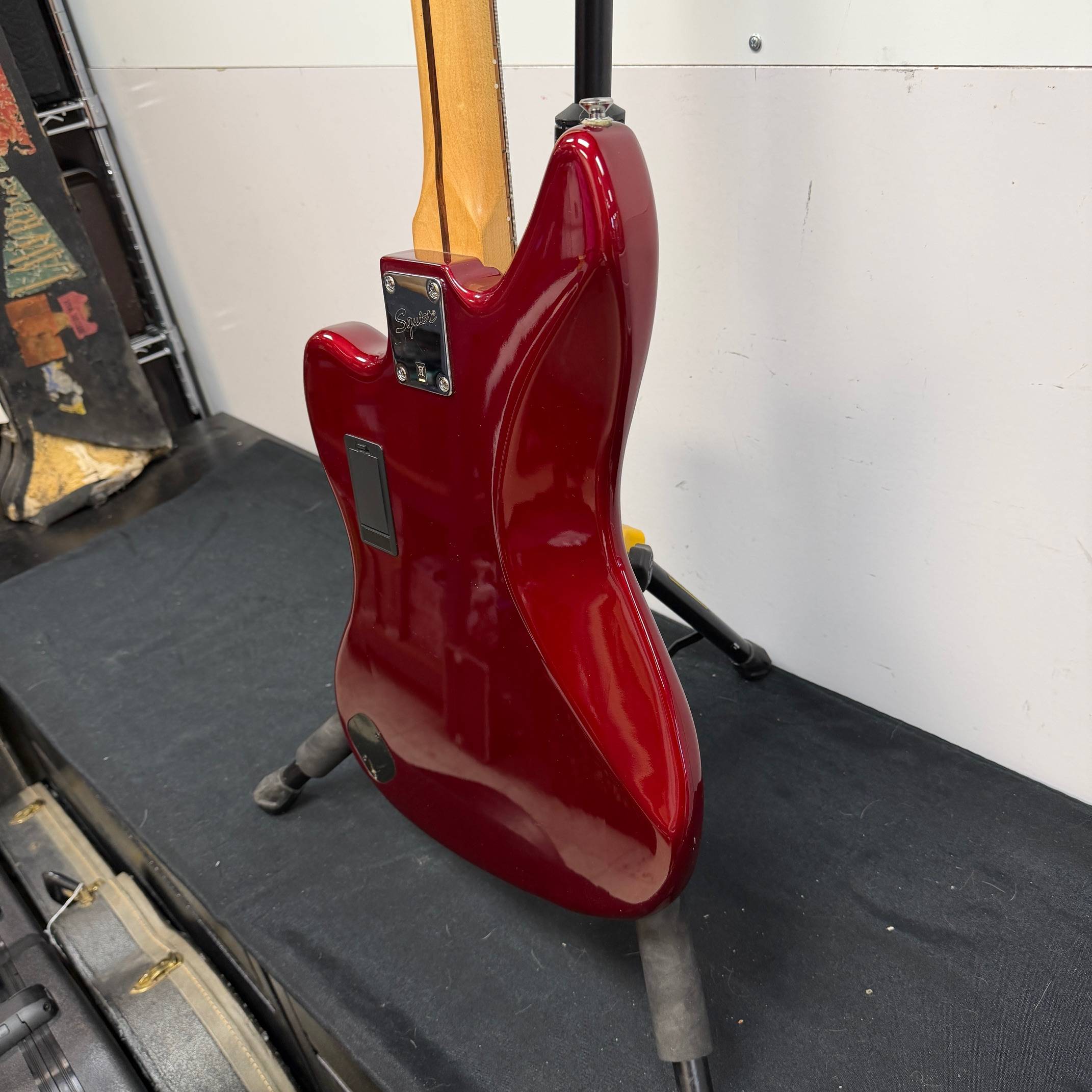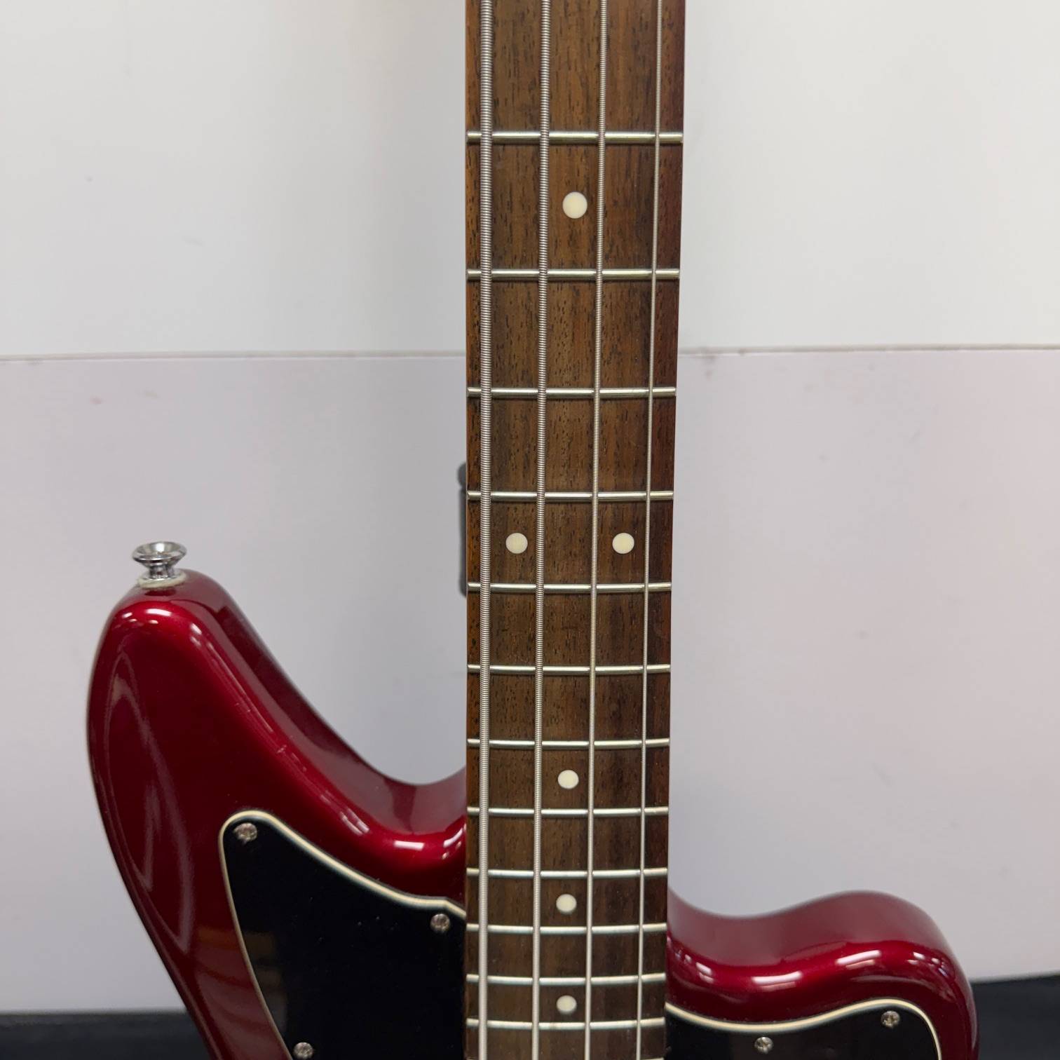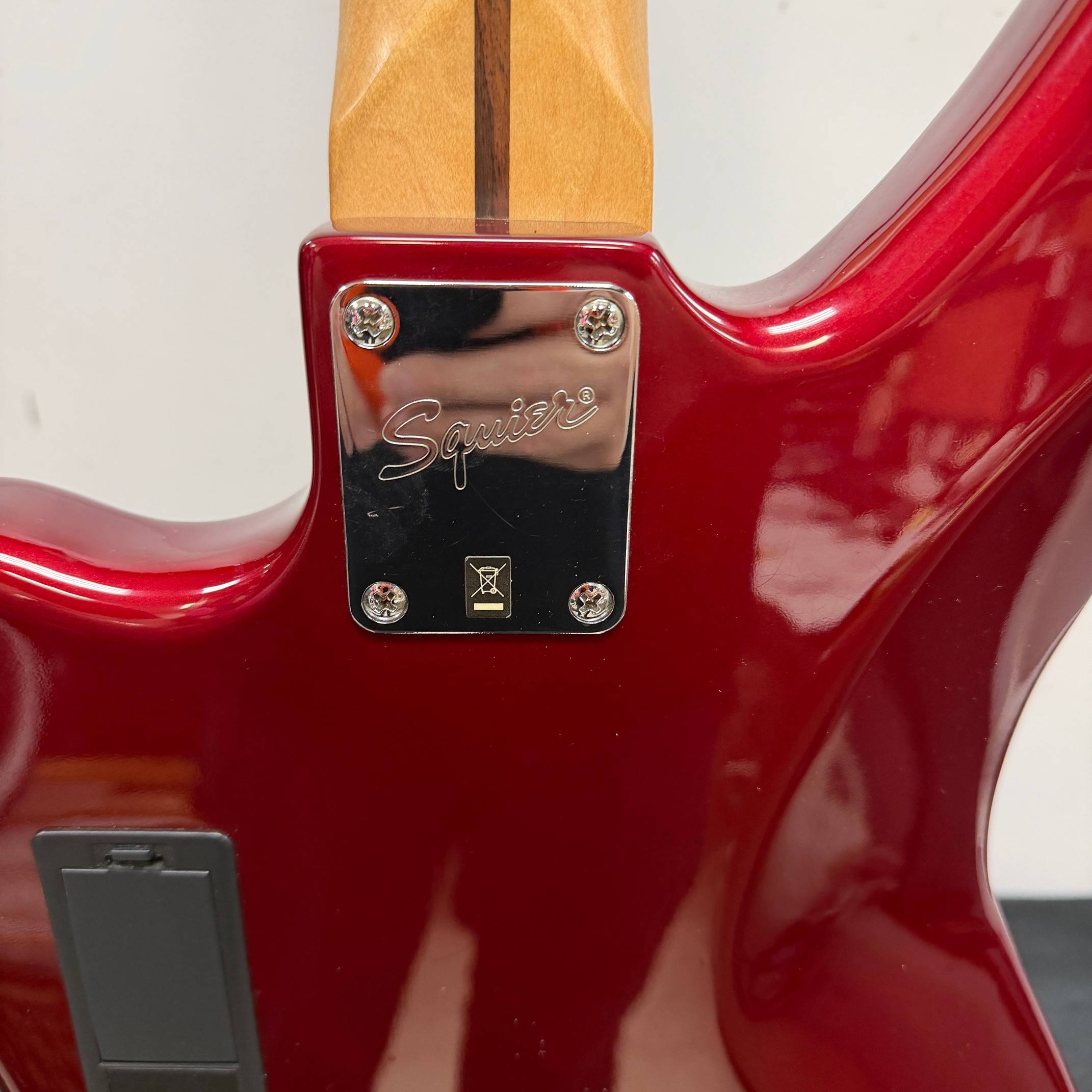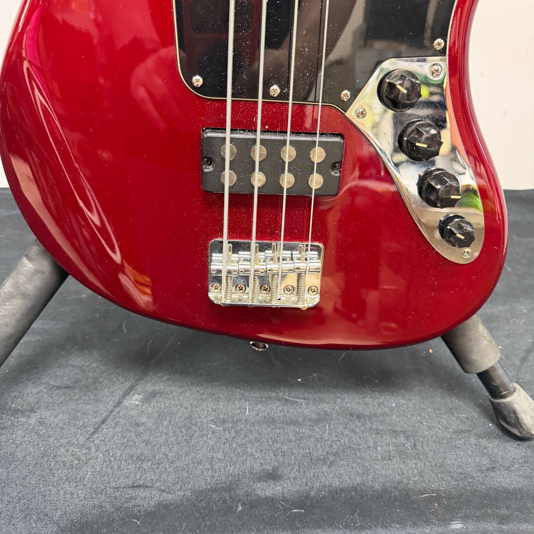 Up for sale is a used Squier Vintage Modified Special Edition Jaguar active 4-string electric bass. This one was just checked out here in our shop and is ready to play. It is in very good cosmetic condition, with no major blemishes in the Candy Apple red finish. The bass features an active humbucker pickup. It was made in Indonesia in 2011, serial number ICS11062963. No case included. Check out the pictures of this beauty, or come see it at Metro Gnome Music.
