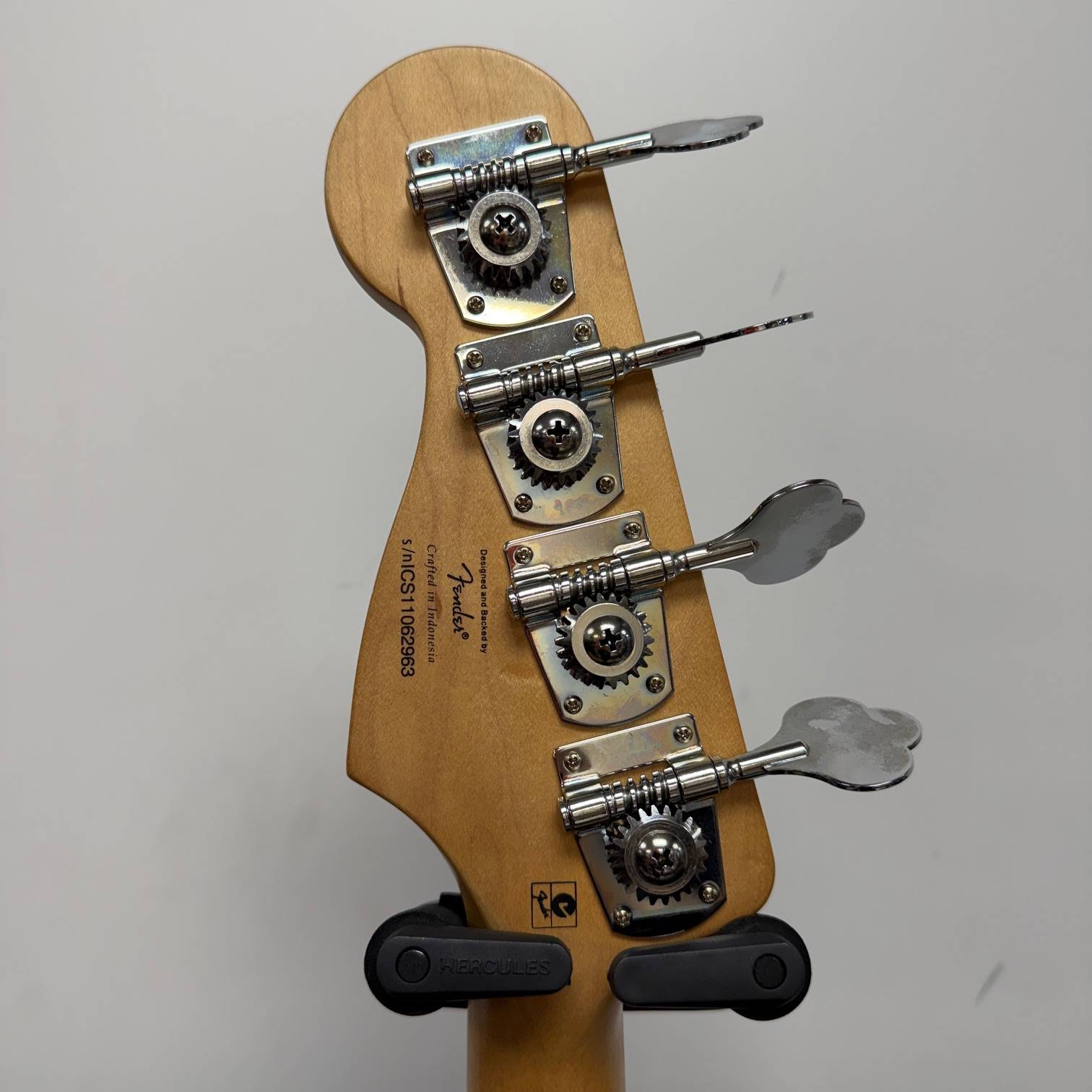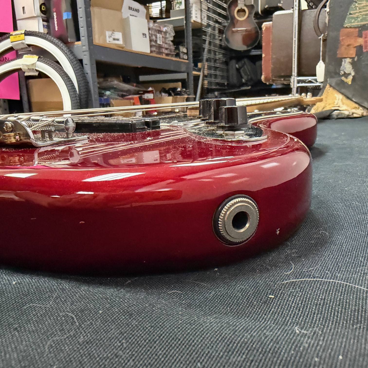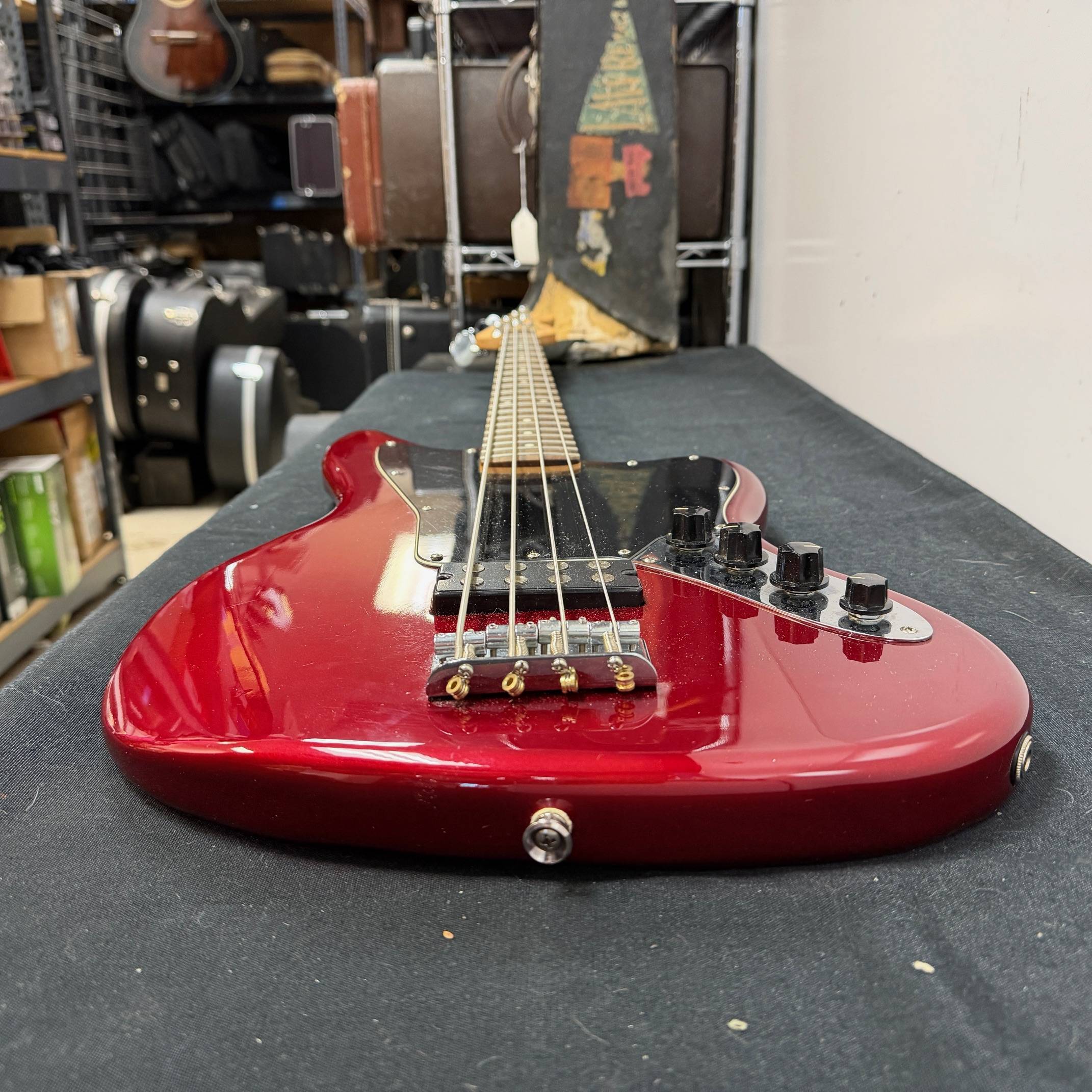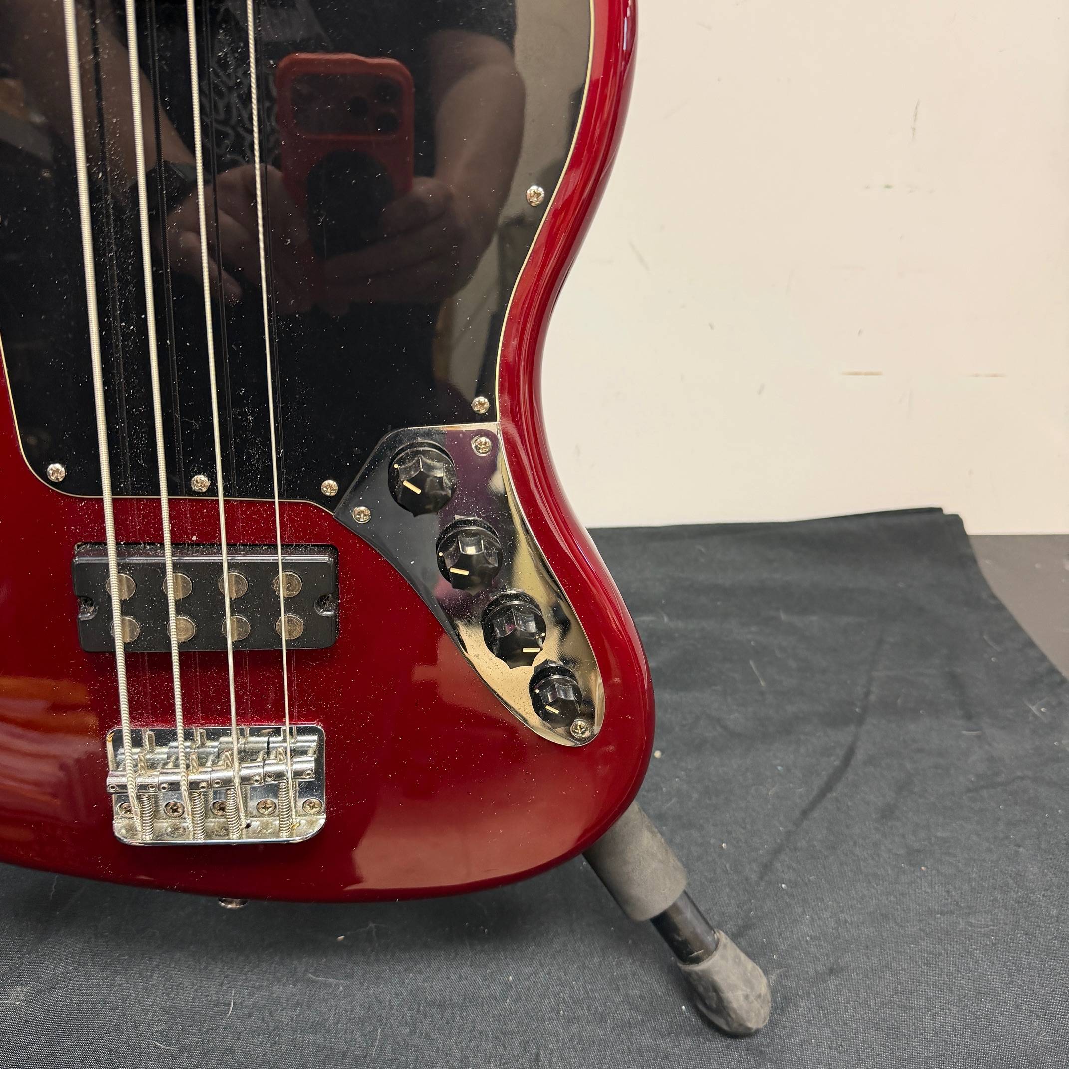 Up for sale is a used Squier Vintage Modified Special Edition Jaguar active 4-string electric bass. This one was just checked out here in our shop and is ready to play. It is in very good cosmetic condition, with no major blemishes in the Candy Apple red finish. The bass features an active humbucker pickup. It was made in Indonesia in 2011, serial number ICS11062963. No case included. Check out the pictures of this beauty, or come see it at Metro Gnome Music.