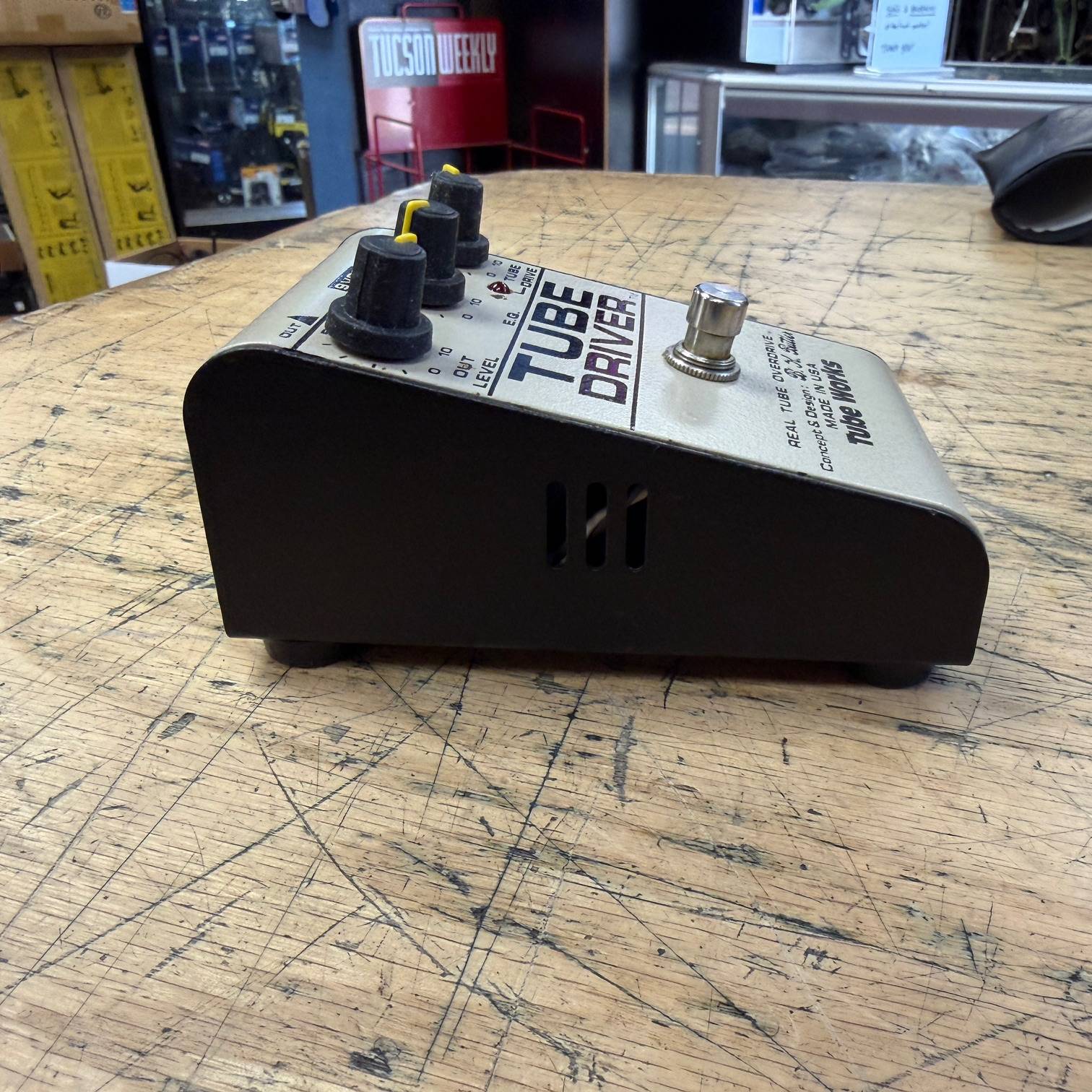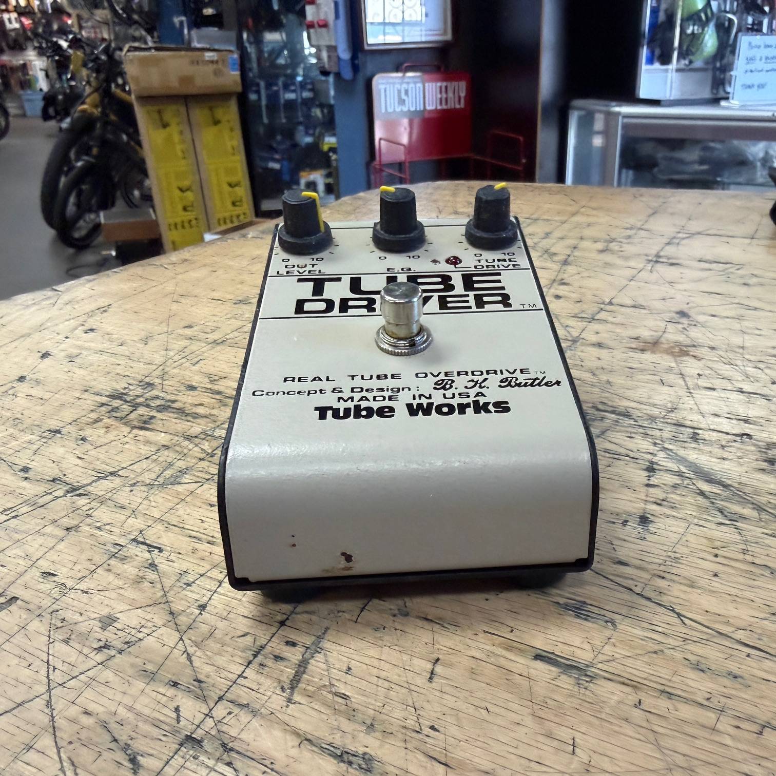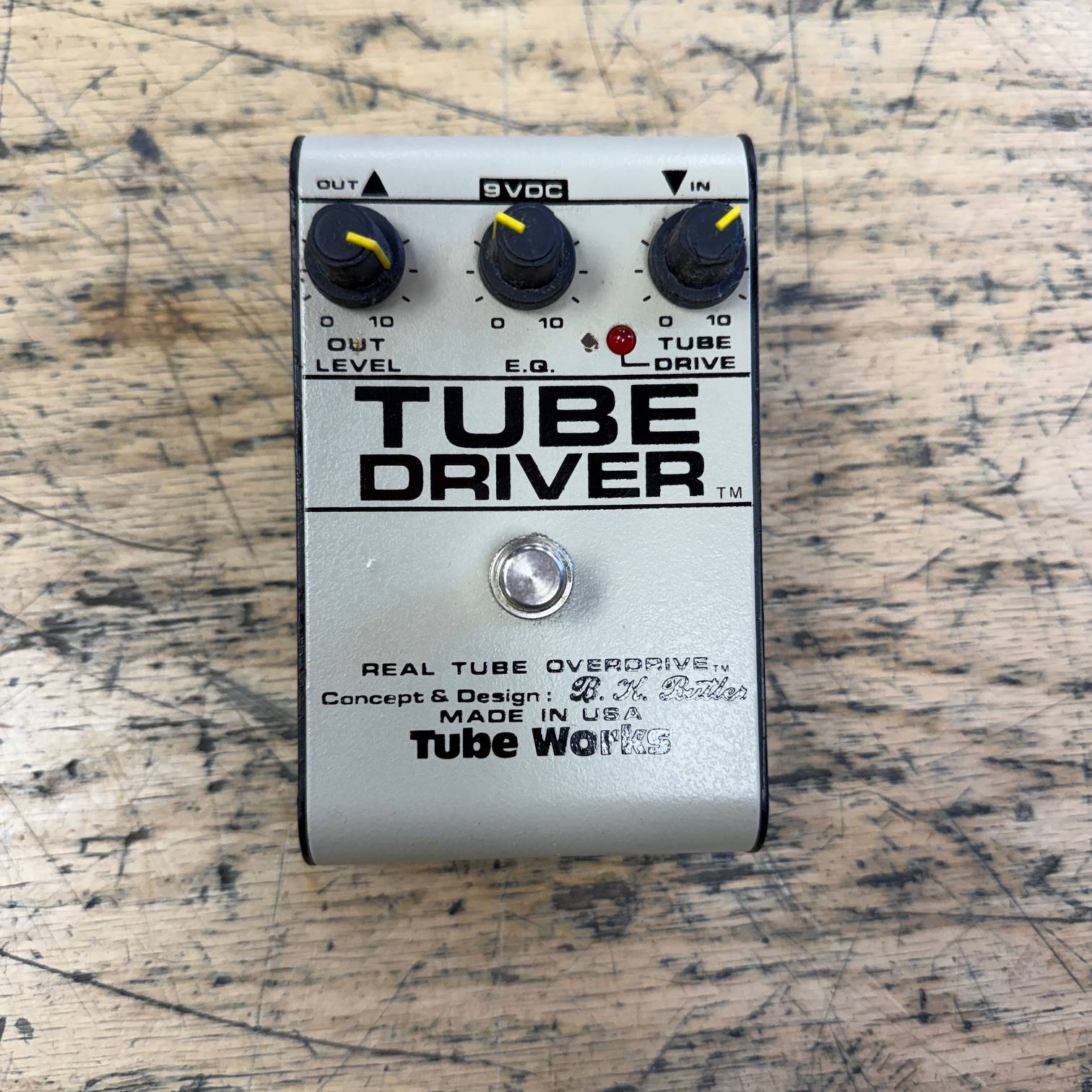 Up for sale is a used Tube Works Tube Driver Real Tube Overdrive guitar pedal. This one was just tested here in our shop and works as it should. It shows some wear, but is structurally sound. It comes with its original AC adapter. The pedal was made in the USA, serial number 023545. Check out the pictures, or come see it in person at Metro Gnome Music.