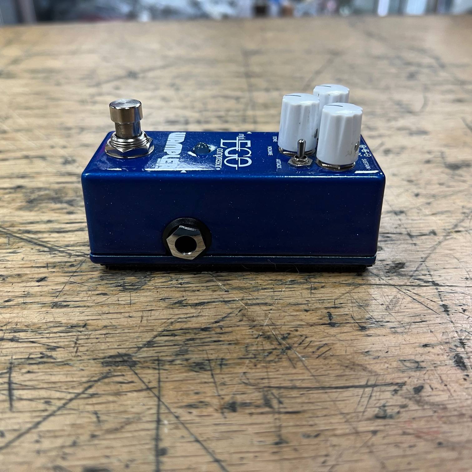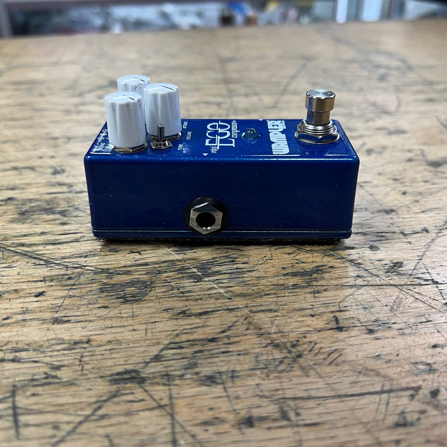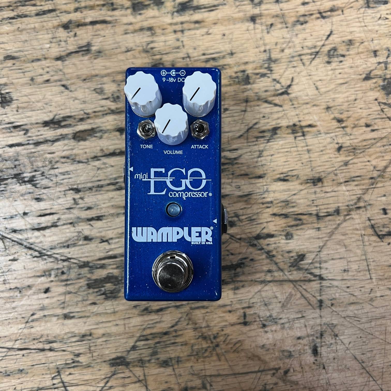 Up for sale is a used Wampler Mini Ego Compressor guitar pedal. This one was just tested here in the shop and works great. It is in good cosmetic condition, but does have some velcro on the bottom from previously being on a pedalboard. The pedal was made in the USA. No AC adapter or battery included.