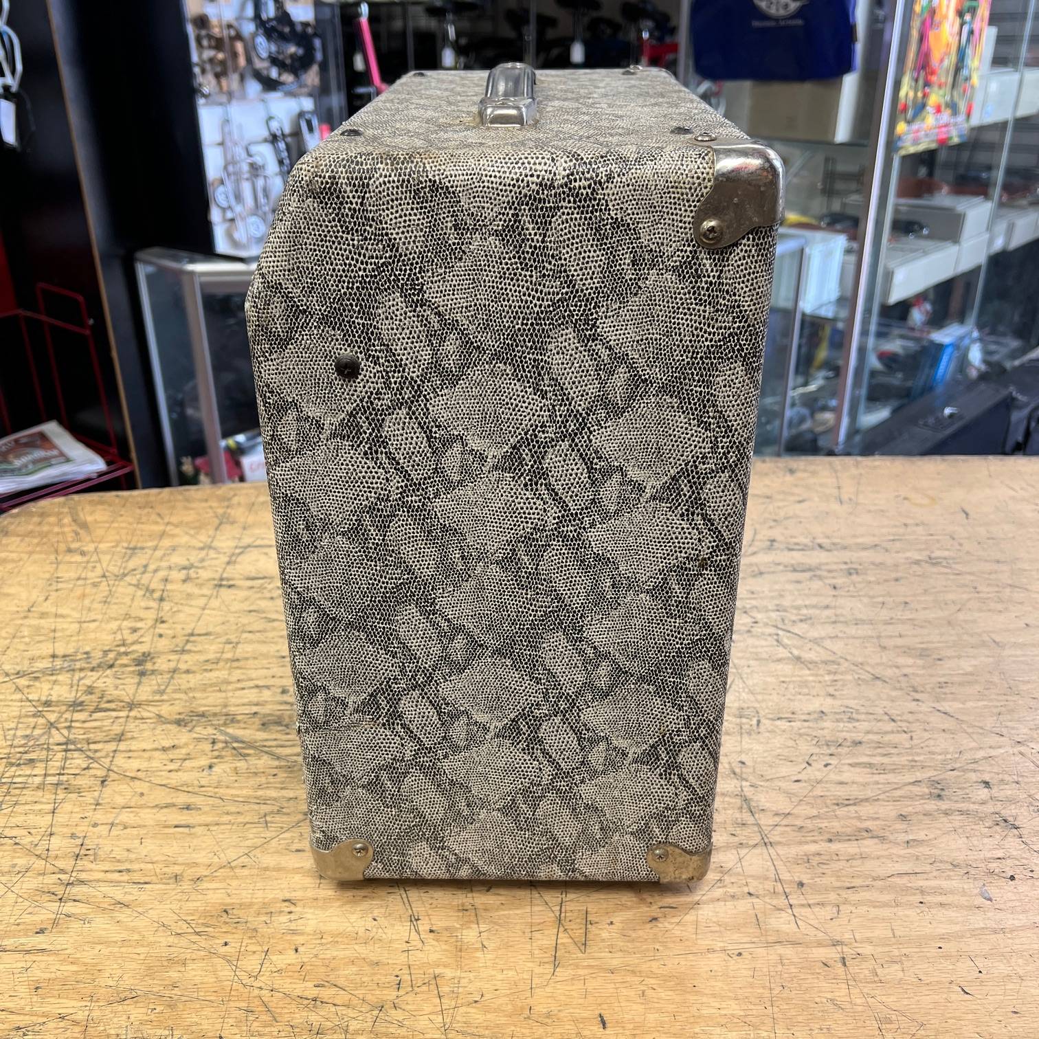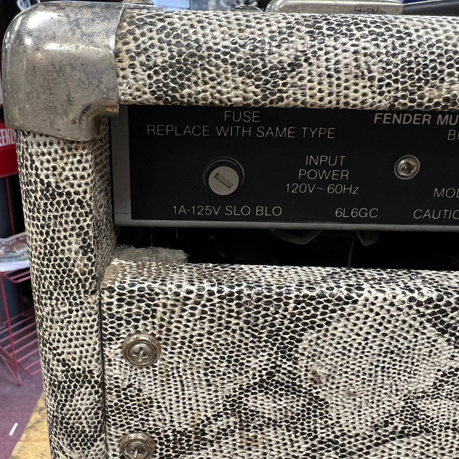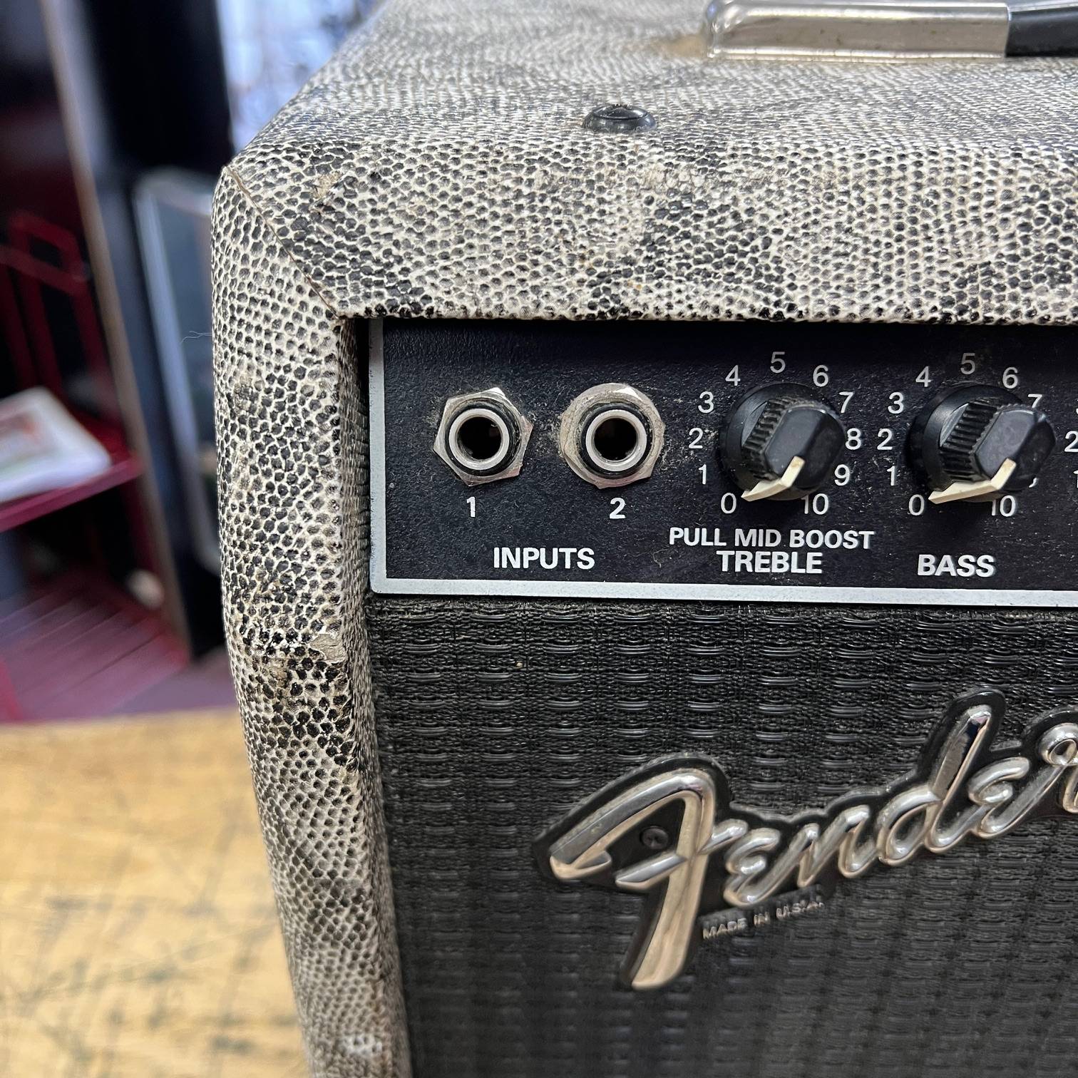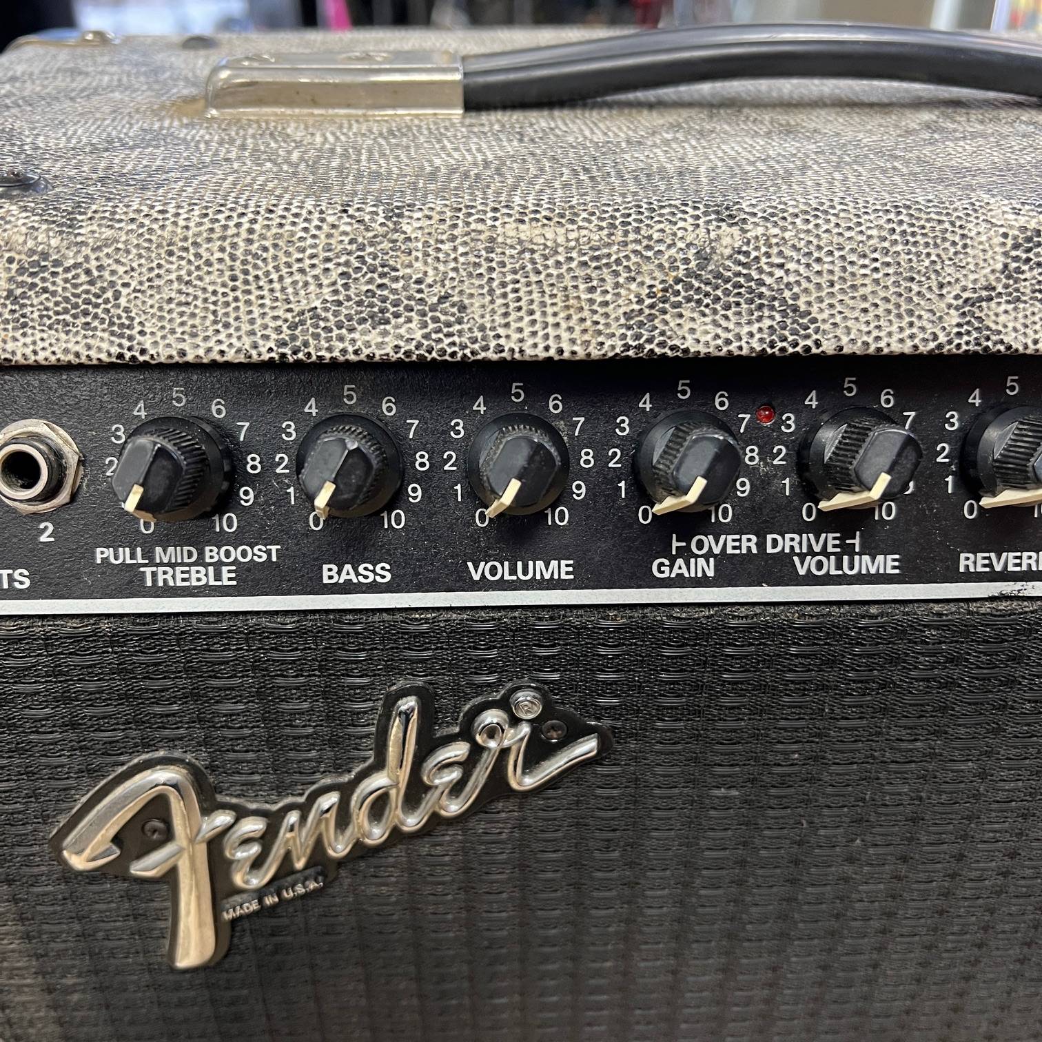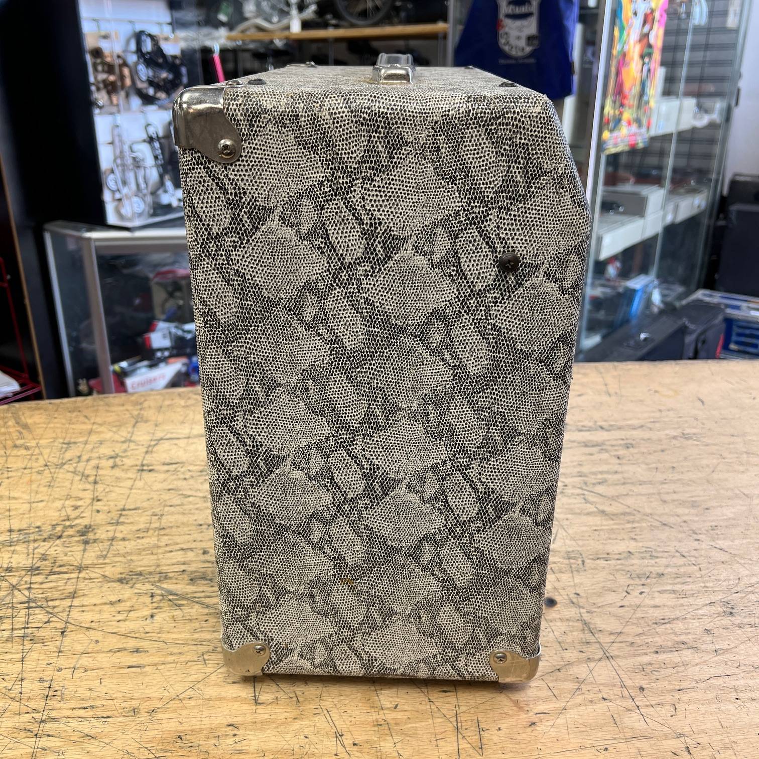 Up for sale is a vintage Fender Champ 12 tube guitar amp. We just had this one serviced by our amp tech and it’s playing great. It shows some wear, but no major rips in the original Snakeskin vinyl tolex. It comes with its original footswitch. The amp was made in the USA, serial number L076392. Check out the pictures for the cosmetic condition, or come see it at Metro Gnome Music