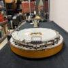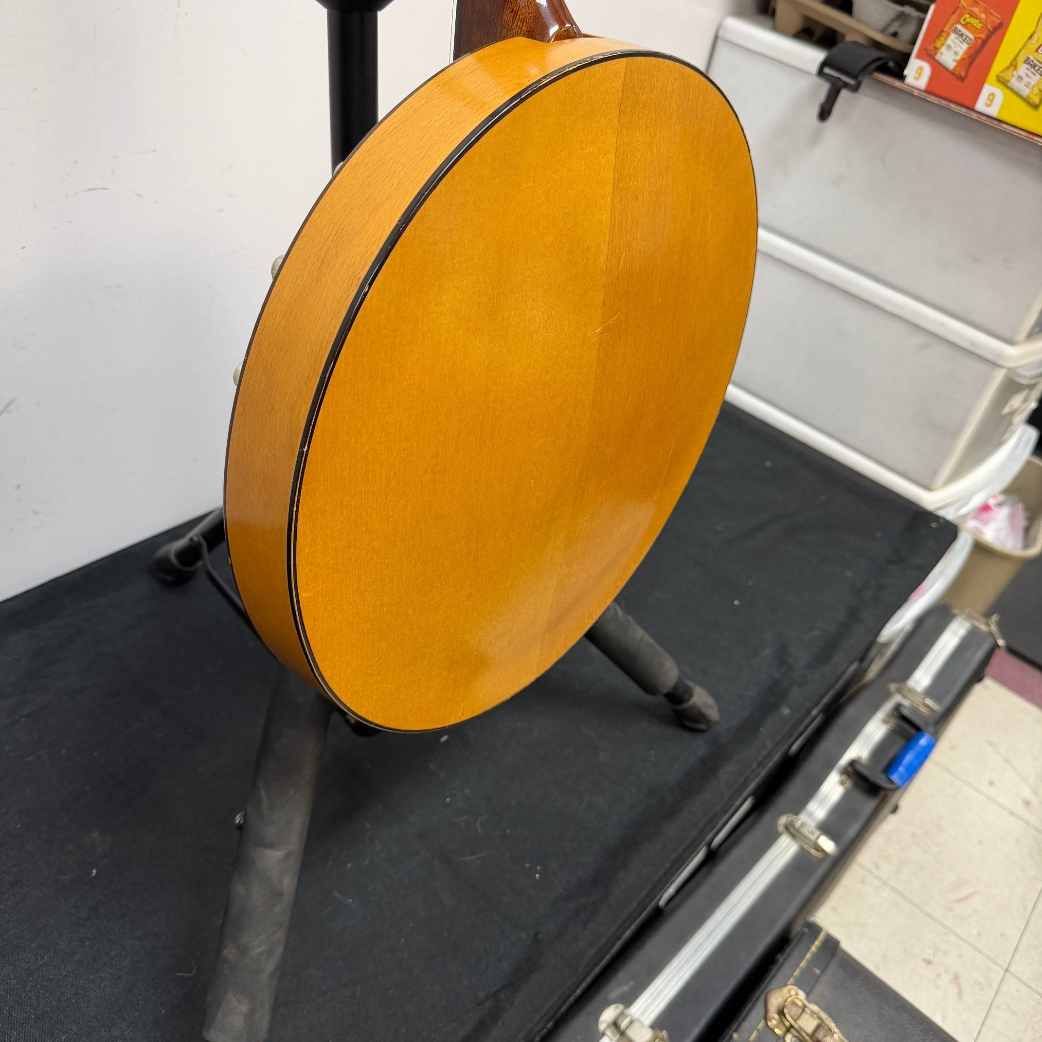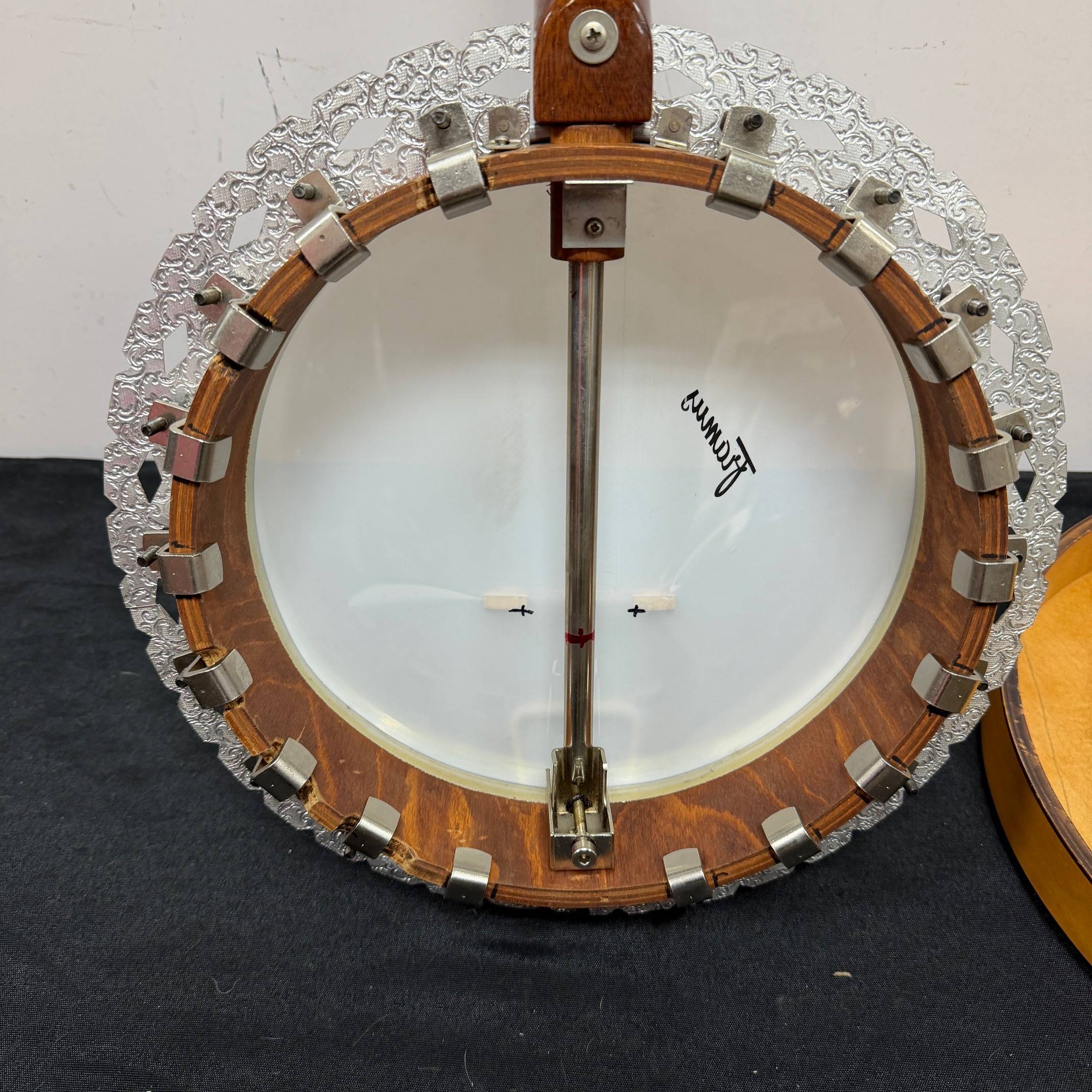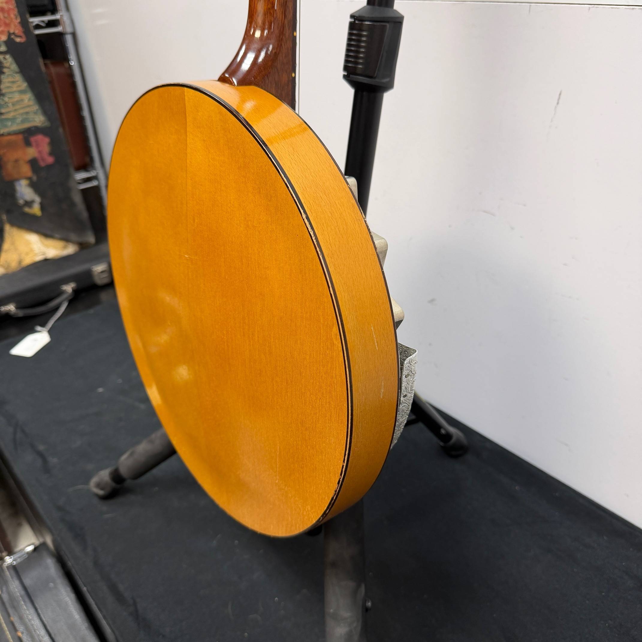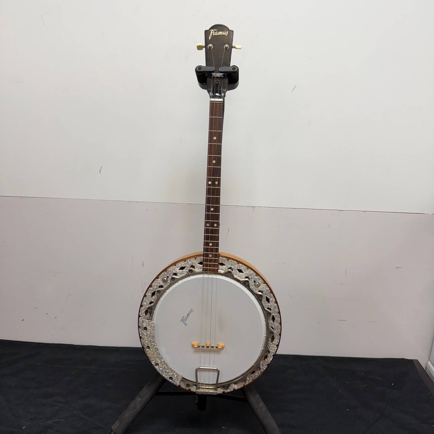 Up for sale is a vintage Framus 4-string tenor banjo with resonator. We checked it out in our shop and it’s ready to play. It shows some wear, but no major dings or scratches. It comes in a chipboard case with a strap. There is one marking on the back of the head stock that reads 49 768-71 1. See pictures for condition or come check it out in person at Metro Gnome Music.