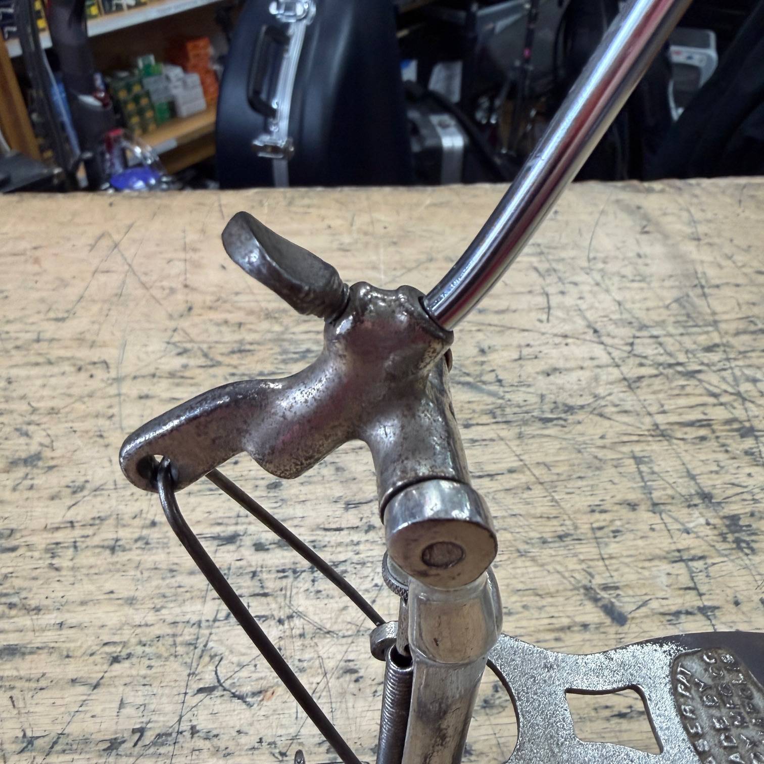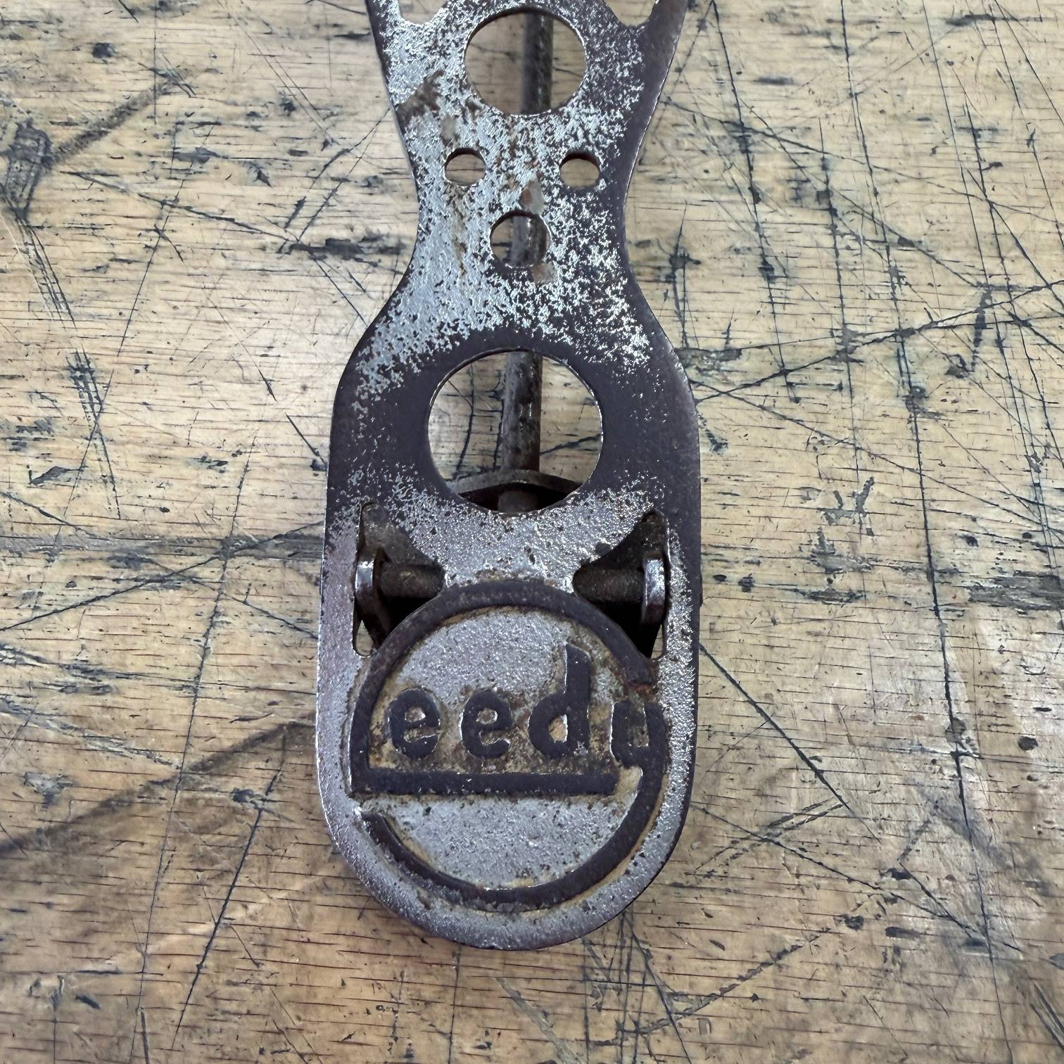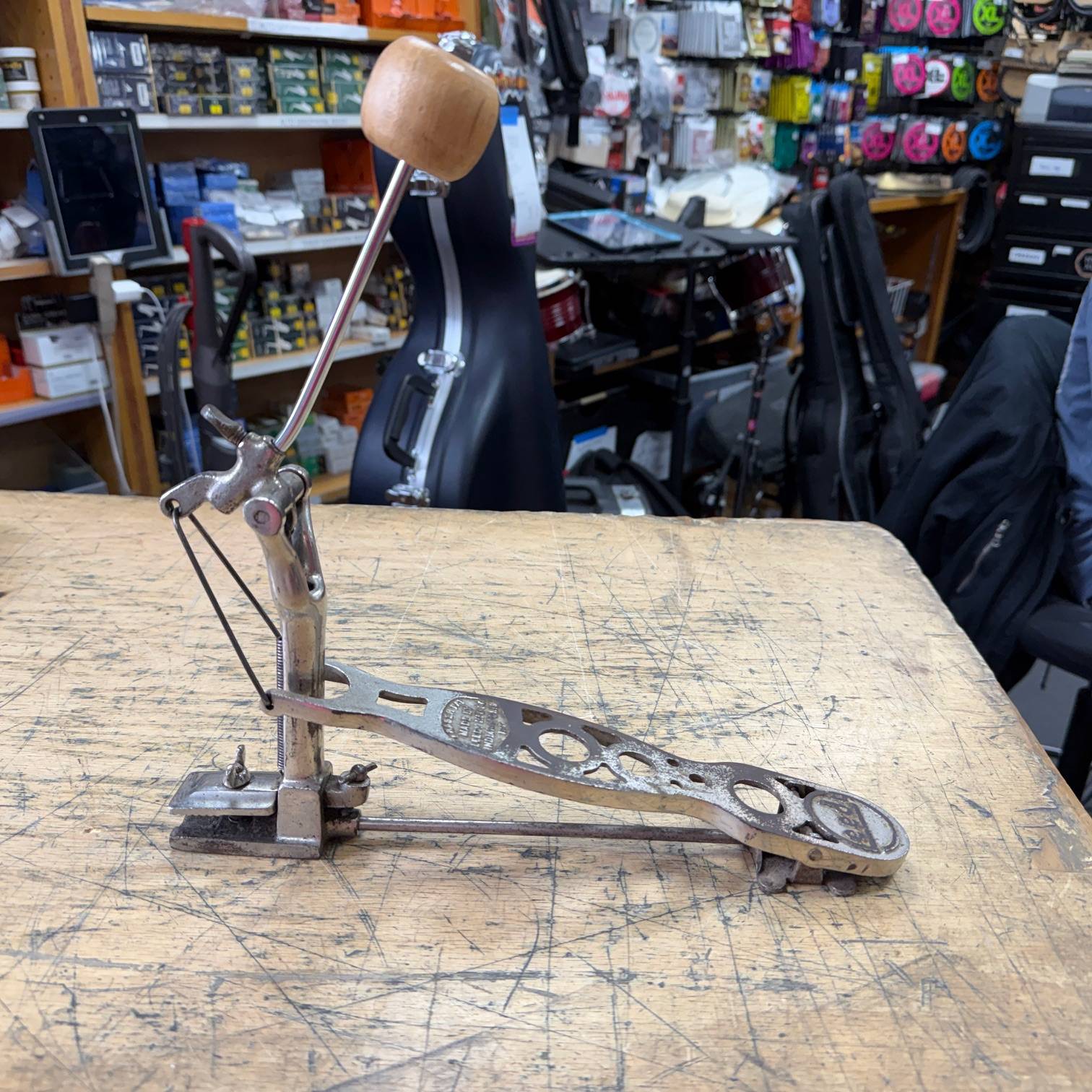 Up for sale is a vintage Leedy bass drum pedal. This one was made in Indianapolis, Indiana. In researching this, these were Traps Era (1920’s-1930’s) and referred to as “The Professional” or Model 7020. Everything appears to function as it should. The beater is not the original one. Check out the pictures or come see it in person at Metro Gnome Music.