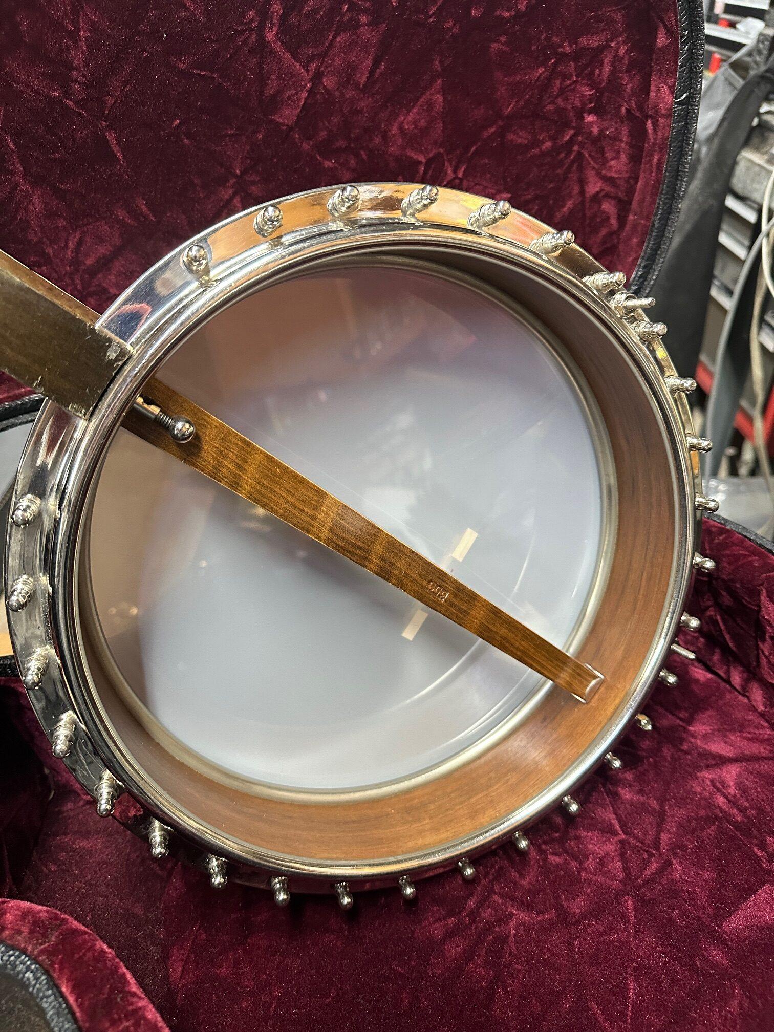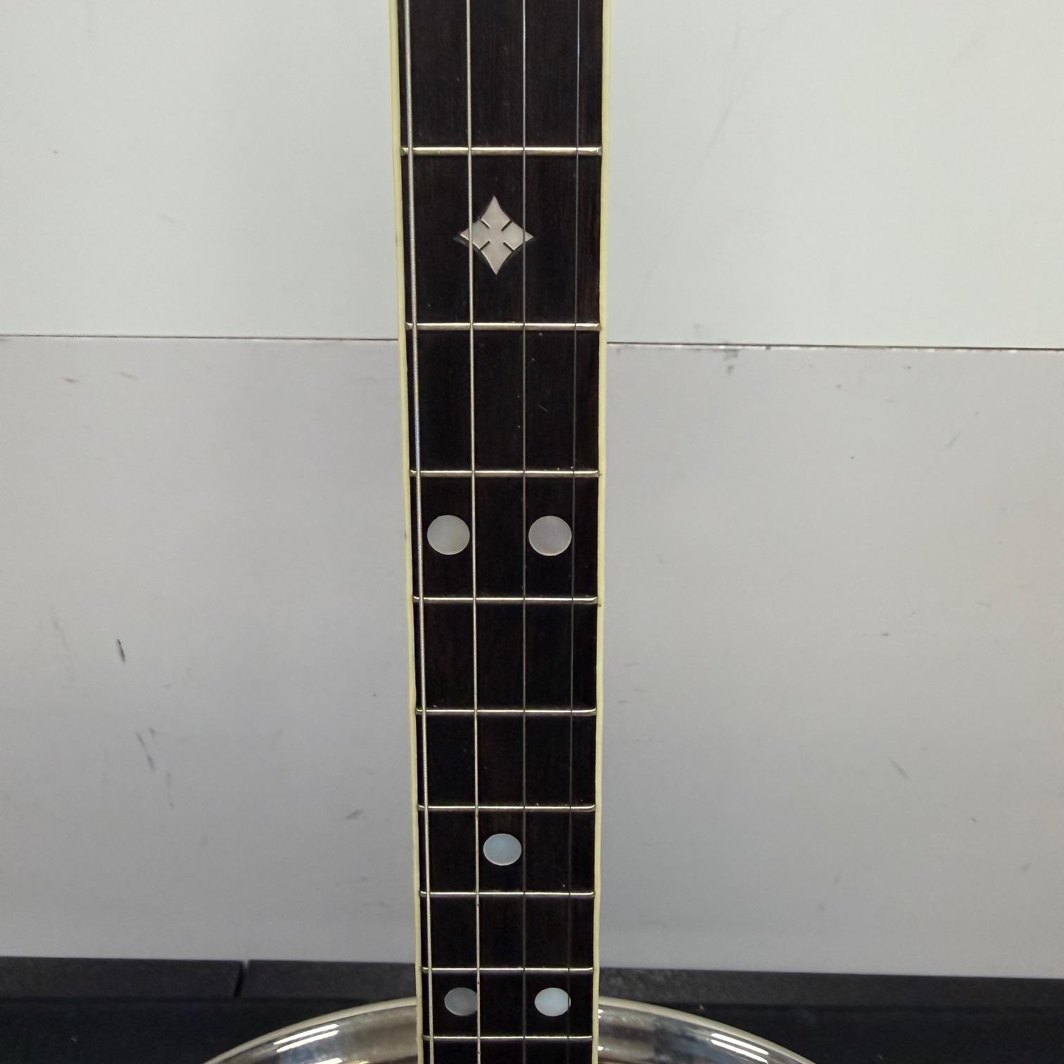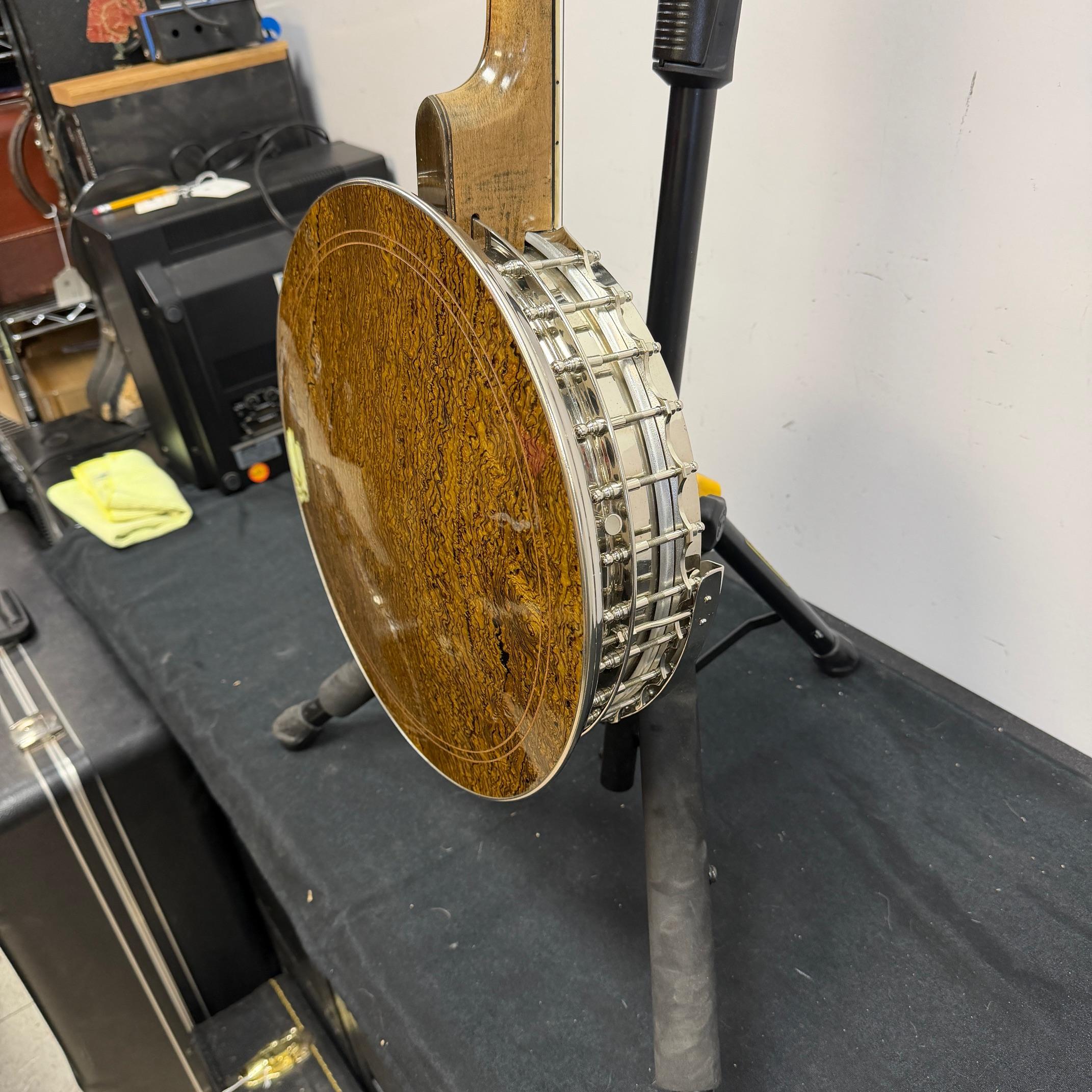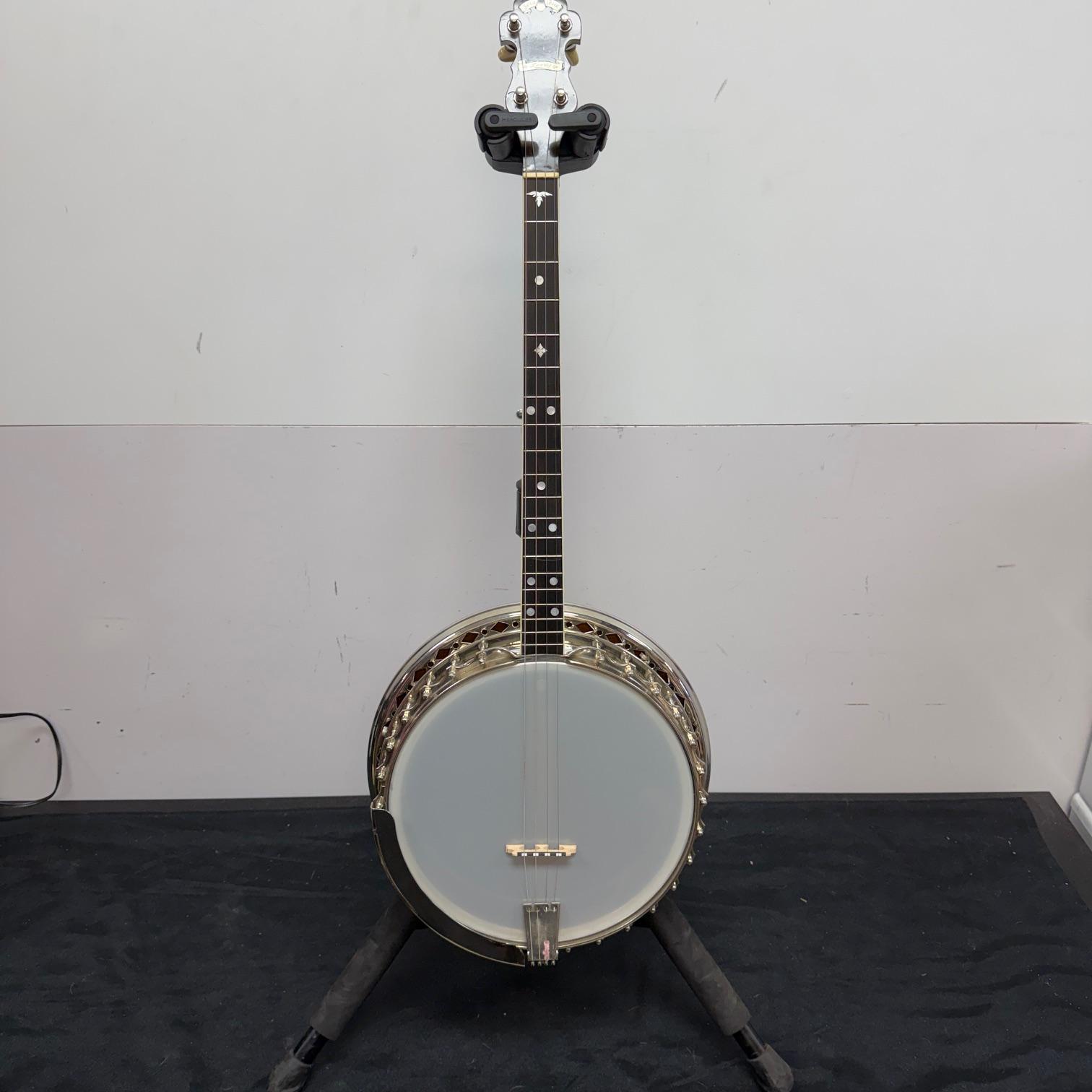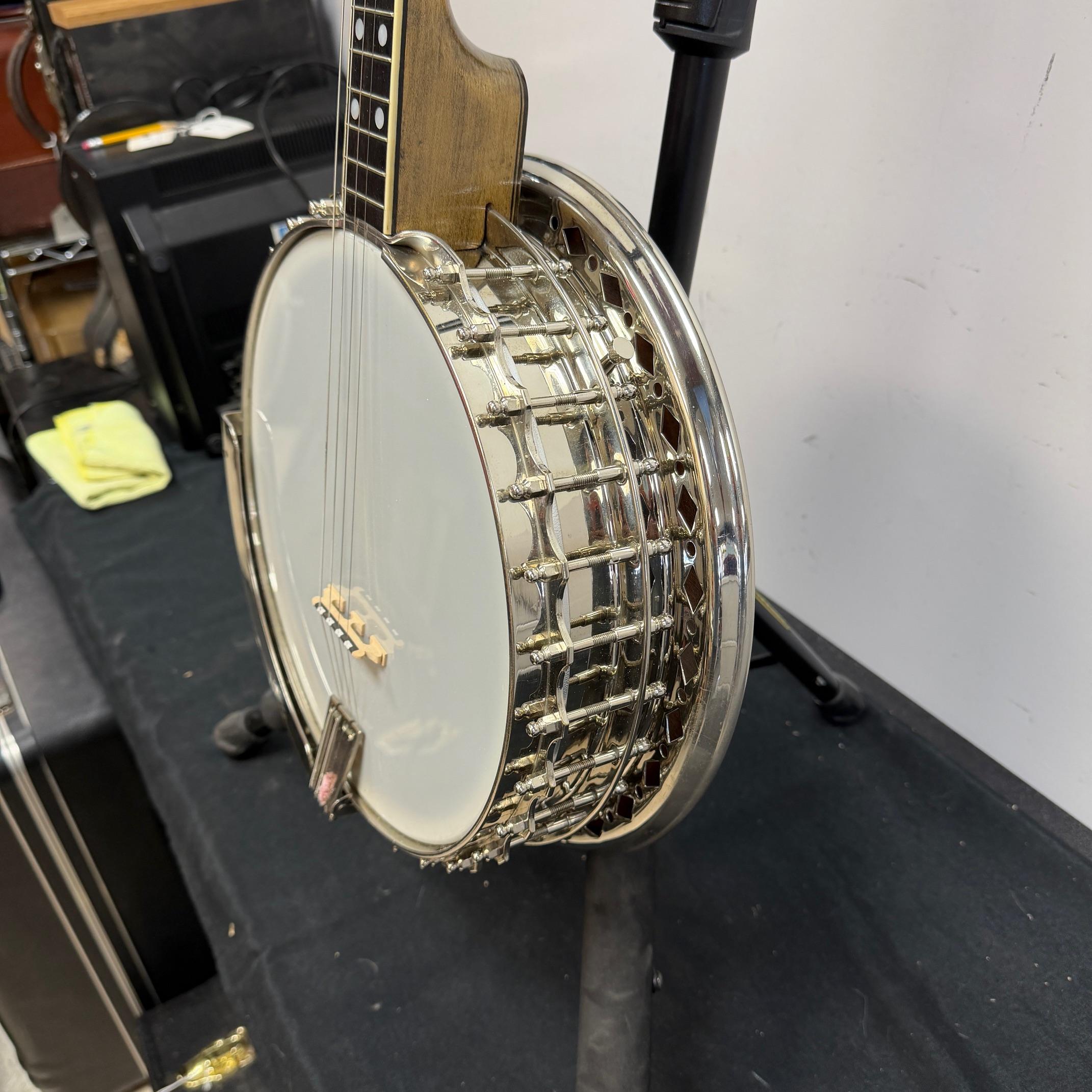 Up for sale is a vintage Leedy Solo Tone 4-string tenor banjo with resonator. We checked it out in our shop and it’s ready to play. It shows some wear, but no major dings or scratches, and is structurally sound. The resonator on this one is a beast and has a beautiful wood back. This one was made in the USA, serial number 356. It comes in a nice SKB wood case. Check out the pictures!