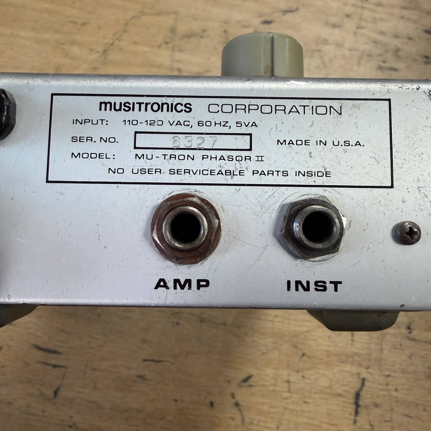 Up for sale is a vintage Musitronics Mu-Tron Phasor II guitar pedal. This one was just tested and cleaned up here in our shop and this one sounds great. It shows some wear, but all its original knobs are intact and working. Check out the pictures, inside and out! The pedal was made in the USA, serial number 6327.