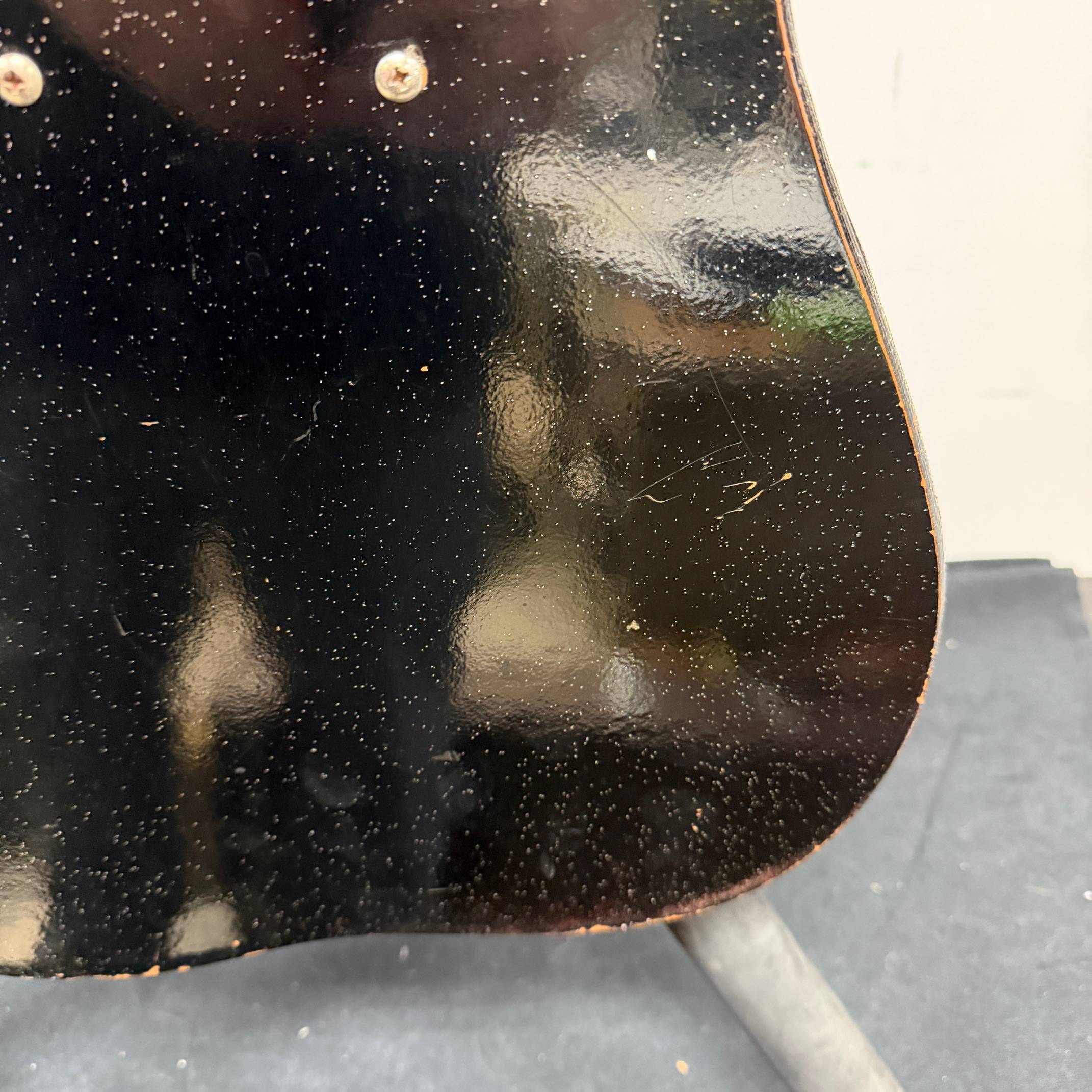Up for sale is a vintage Silvertone Model 1448 electric guitar and tube amp case. The guitar was just cleaned up, restrung and set up here in our shop and plays great. The amp was just serviced and works as it should; the original speaker was re-coned at this time. The guitar shows some wear: various scratches, dings and dents in the finish. The electronics all work as they should. The case also shows some wear, but seems to be structurally sound. The guitar/amp was made by Danelectro, for Sears, here in the United States, serial number 185 10010. The case itself definitely shows some wear, especially around the corners and hinges. See the pictures for the condition.