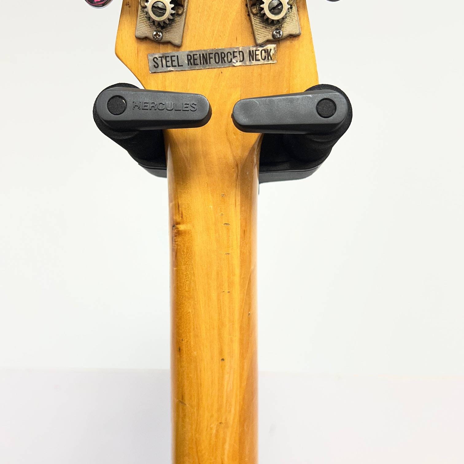 Up for sale is a vintage Silvertone/Teisco 759-143-1 electric guitar. This one was made in the 1960’s, in Japan, serial number 308053. We just went through this one here in the shop, and everything works as it should. The spring tremolo is missing its original arm. The electronics all work. The guitar definitely shows some wear: scratches, dings, etc. in both the body and the neck, but nothing structural and nothing that affects playability. Please see the pictures for the condition. No case included.