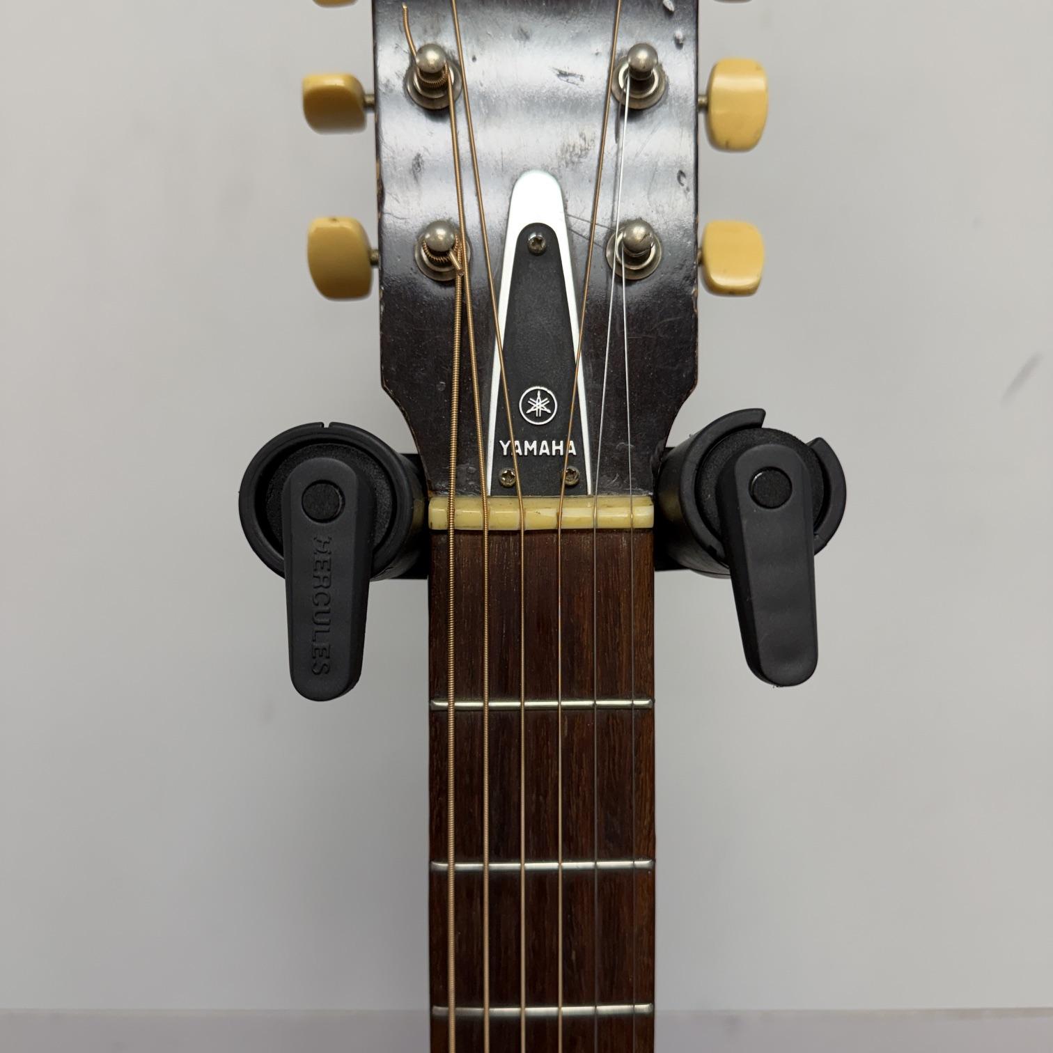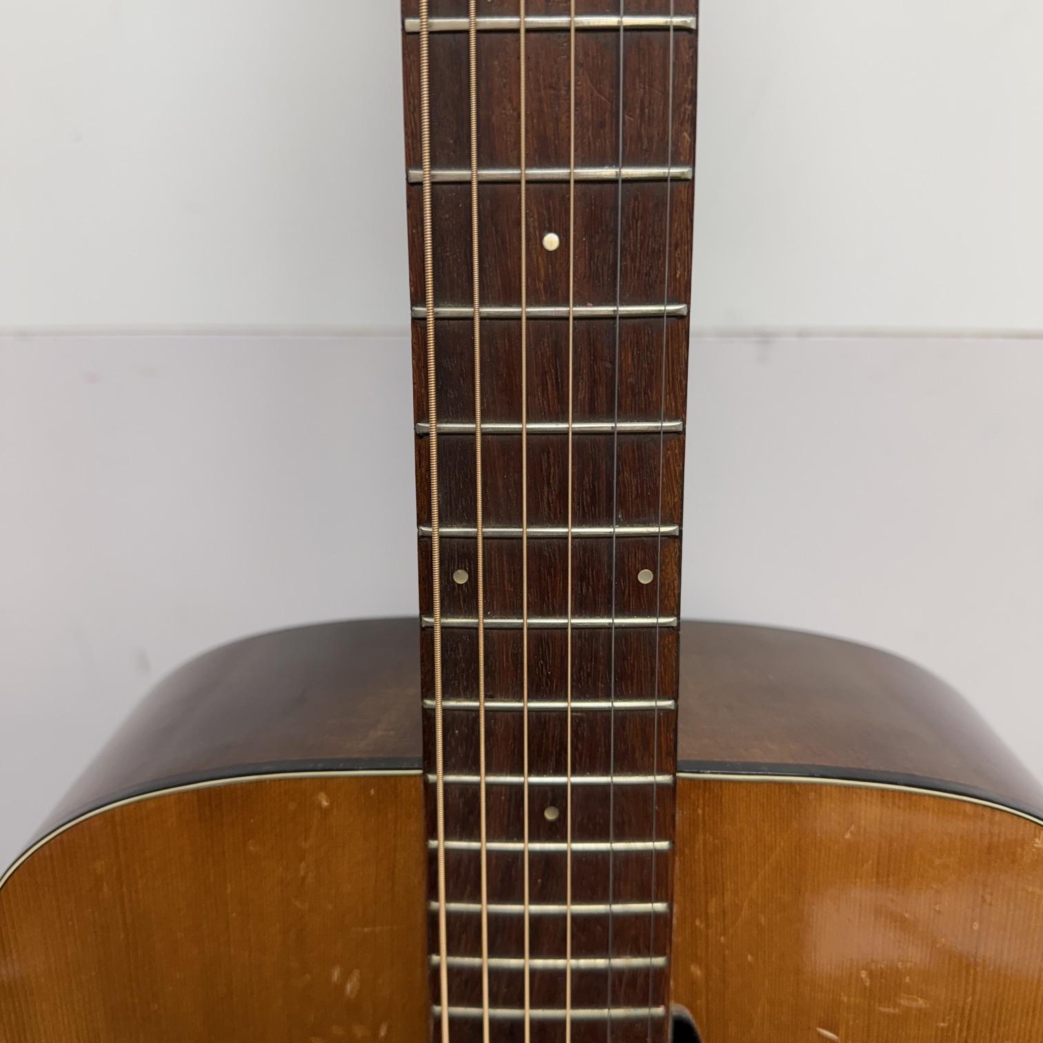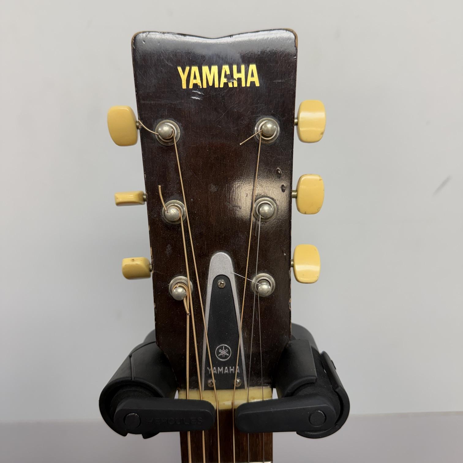 Up for sale is a vintage Yamaha FG-110 6-string acoustic guitar. We just cleaned this one up and put new strings on it and it really plays nicely. It is in fair cosmetic condition, but is structurally sound. There are scratches, dings, and wear throughout this guitar. The guitar was made in Japan, serial number 1596729. No case included. Check out the pictures.
