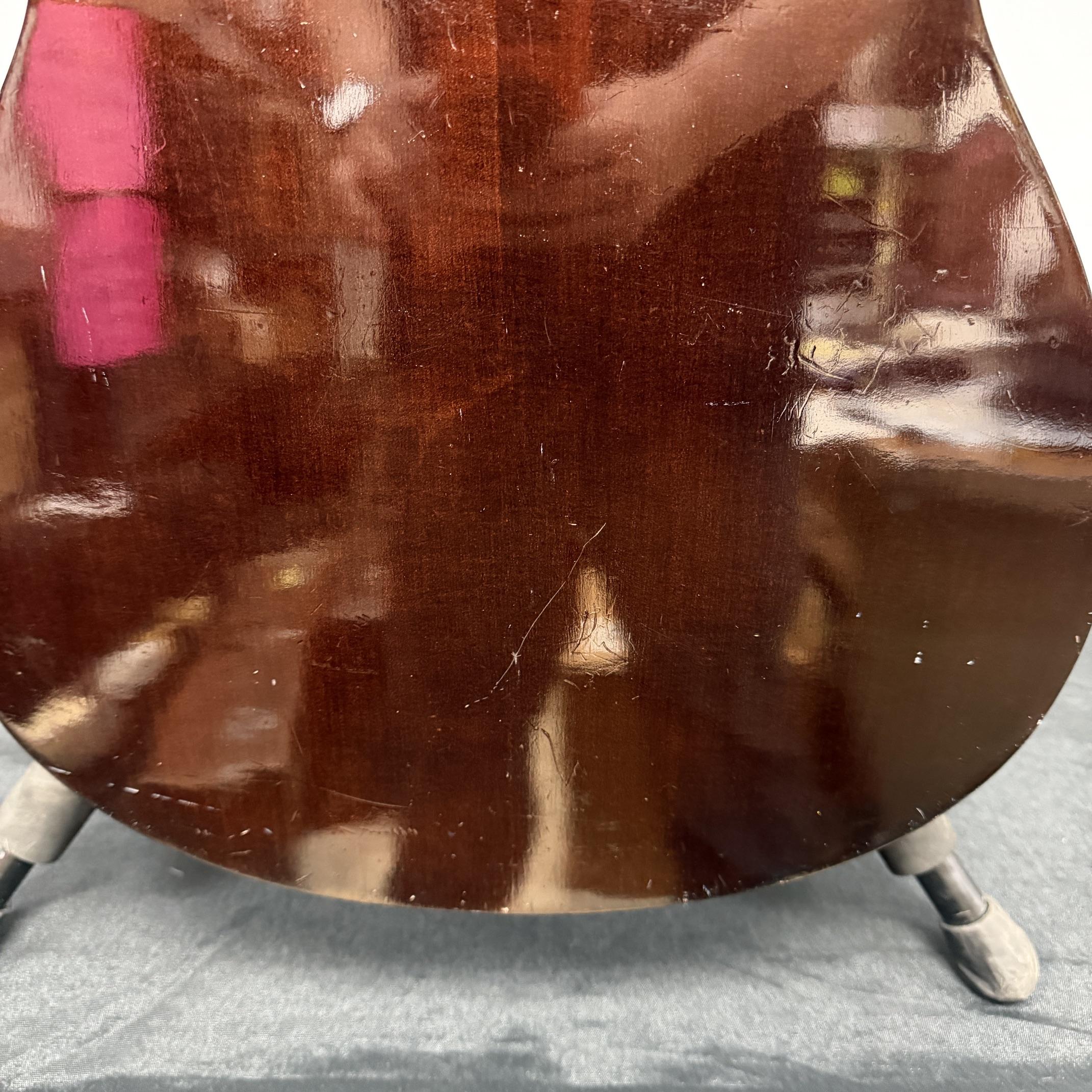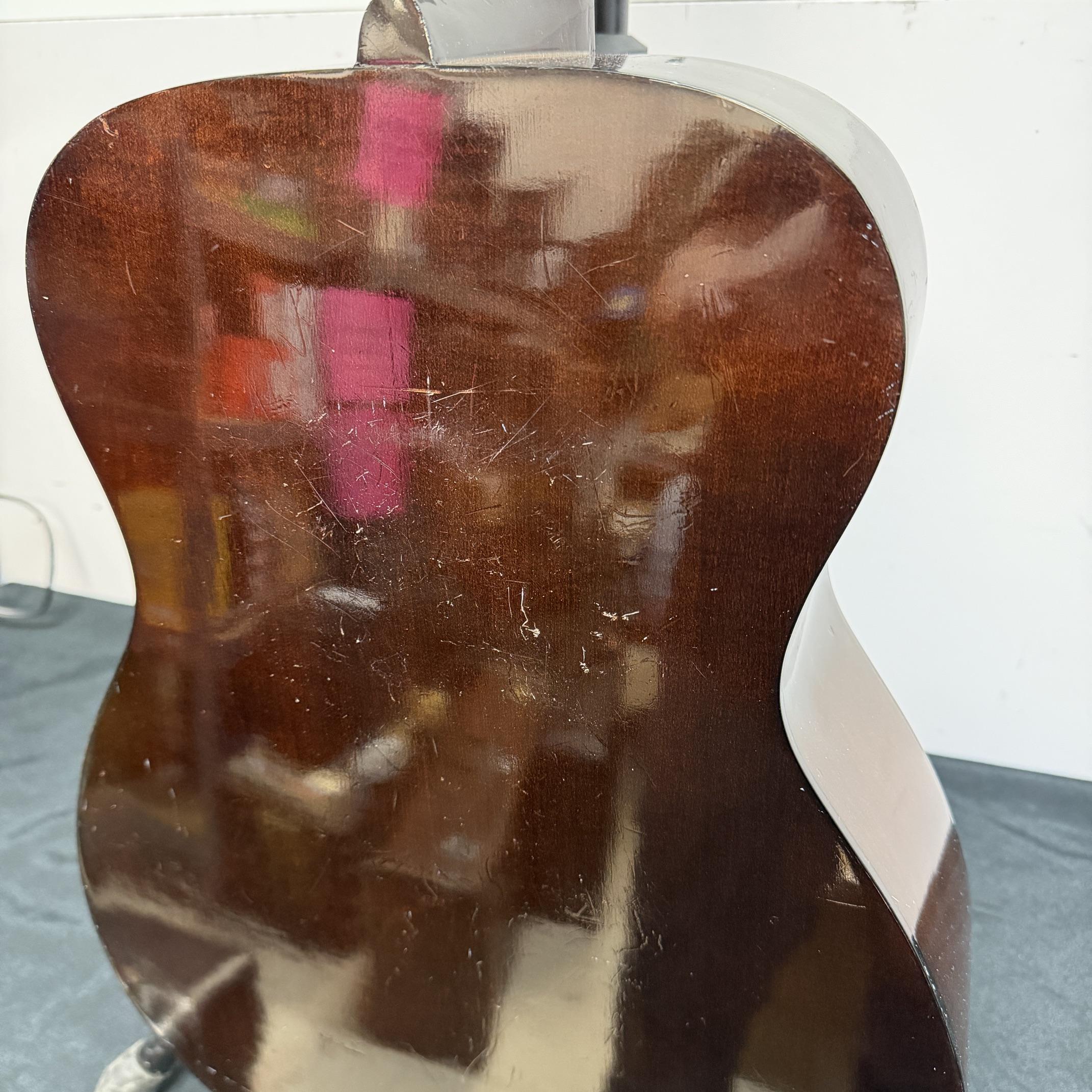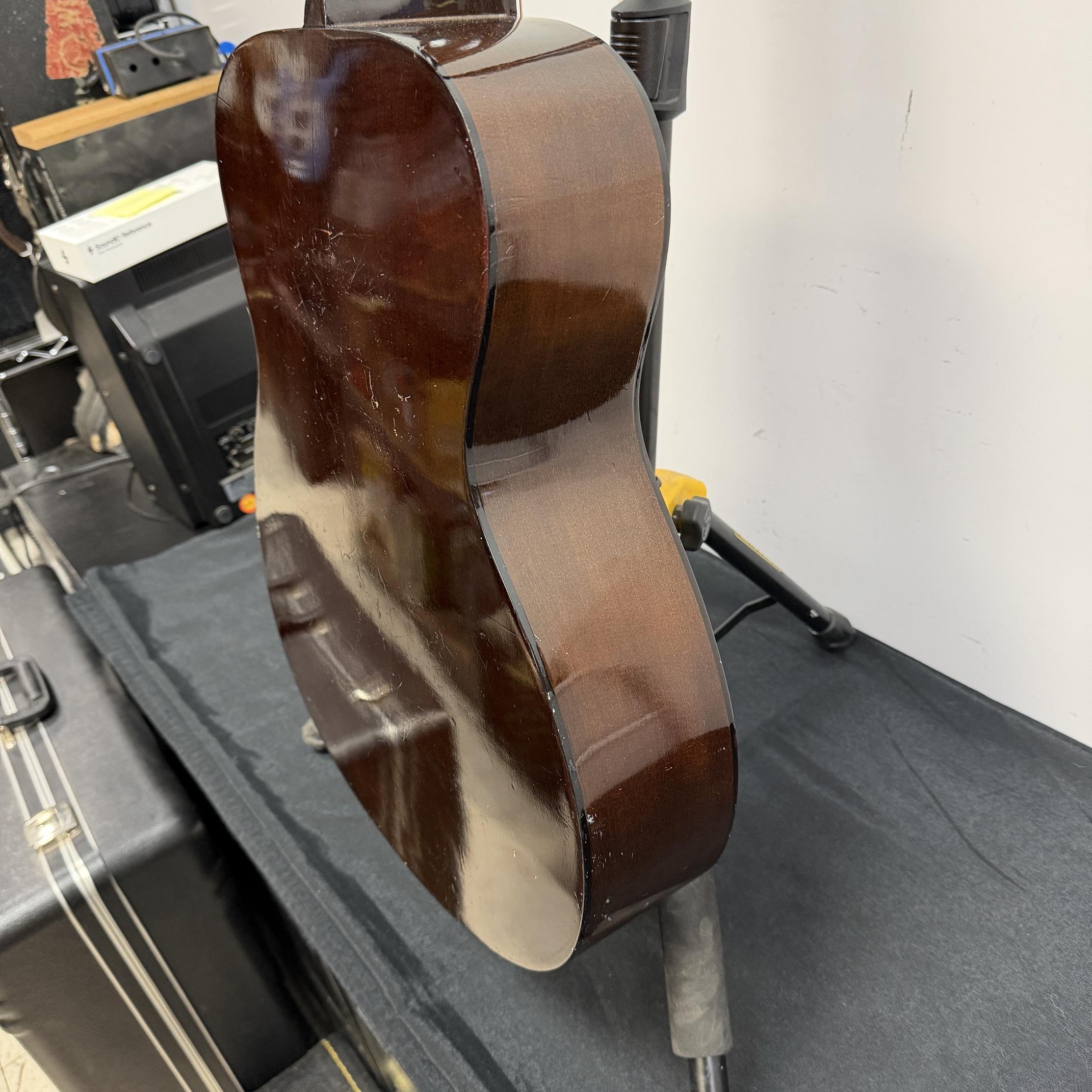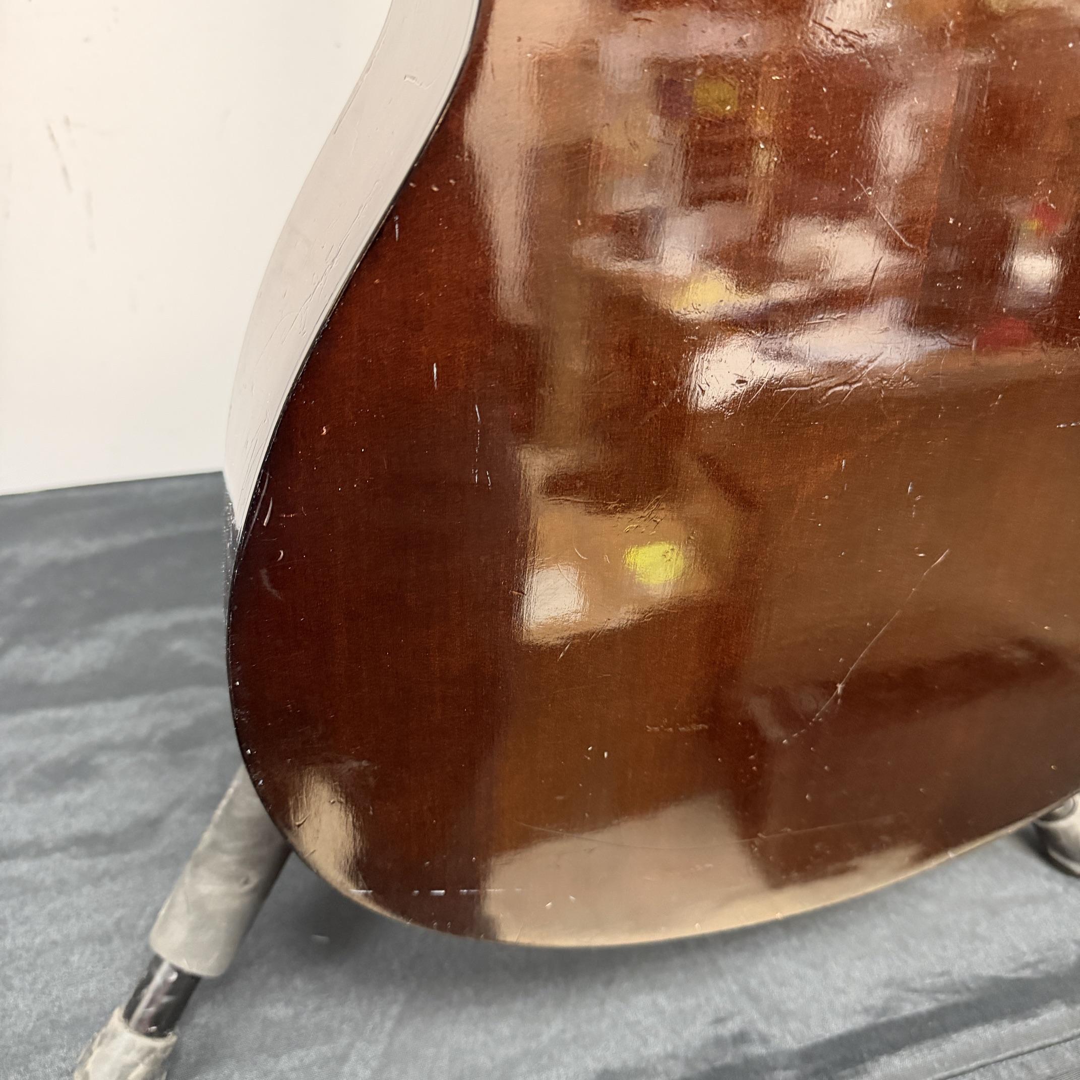 Up for sale is a vintage Yamaha FG-110 6-string acoustic guitar. We just cleaned this one up and put new strings on it and it really plays nicely. It is in fair cosmetic condition, but is structurally sound. There are scratches, dings, and wear throughout this guitar. The guitar was made in Japan, serial number 1596729. No case included. Check out the pictures.